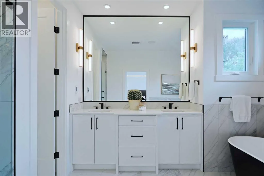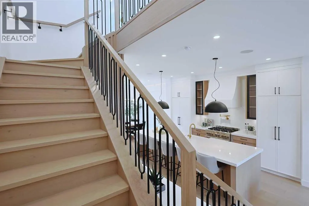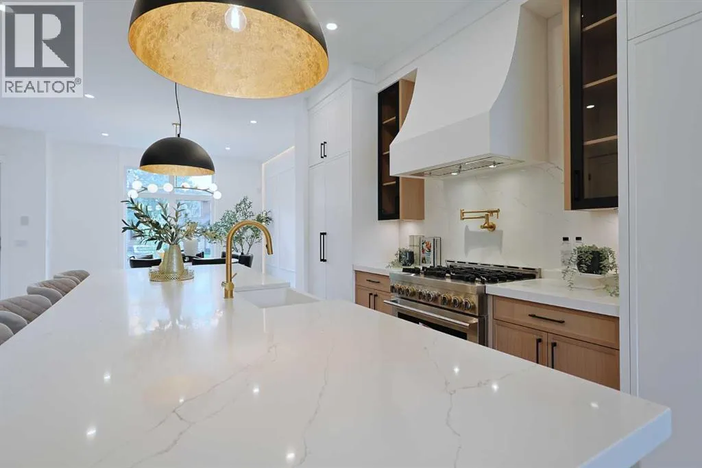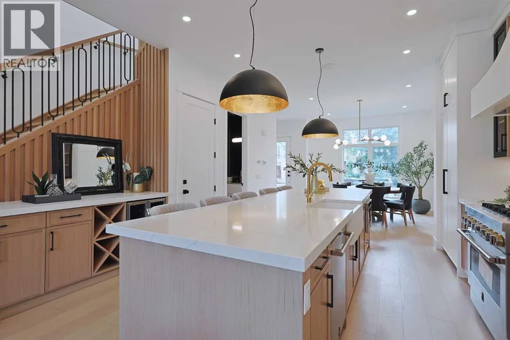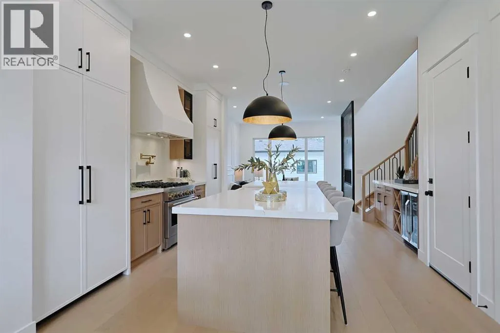 **OPEN HOUSE: Sun Nov 16, 1pm to 3pm** Here in the exclusive inner city community of Parkdale is this incredible custom-crafted home just waiting for you to make it your very own. This stunning brand new semi-detached two storey is fully-loaded & dressed to the nines, & features upgraded engineered hardwood & vinyl plank flooring, designer kitchen with JennAir appliances, exquisite quartz countertops throughout, a total of 5 bedrooms & 3.5 bathrooms plus legal basement suite with separate entrance. Offering over 2600sqft of stylish luxury living, you will love every inch of your new home, which boasts an amazing open concept main floor design with soaring 10ft ceilings & an expanse of windows, sun-lit dining room complemented by feature wall with accent lighting & formal living room with sleek contemporary fireplace & picture windows offering views of your backyard. The showpiece chefâs kitchen is a sensational space with its 2-toned cabinetry with soft-close drawers & doors, oversized centre island with farmhouse sink, built-in desk with bar fridge & full JennAir appliance package including gas stove/convection oven & fridge/freezer. Upstairs is where youâll find 3 wonderful bedrooms & 2 full bathrooms, highlighted by the outstanding ownersâ retreat with vaulted ceilings & large walk-in closet with built-ins, huge picture windows & spa-inspired ensuite with glistening heated tile floors & free-standing tub, quartz-topped double vanities & glass shower with full tile surround. Two additional bedrooms, another full bathroom with quartz counters & dedicated laundry room with built-in cabinets & sink complete the 2nd floor. The fully legal basement suite â with its own separate entrance & vinyl plank floors, is beautifully finished with a rec room & eat-in kitchen with Samsung stainless steel appliances, 2 bright bedrooms, full bathroom & laundry hook-ups. Additional features & extras include the main floor mudroom with built-in cabinets & lockers, built-in ceiling sp eakers on all 3 levels, upgraded lighting, custom âhiddenâ white oak closet in the foyer, fenced backyard with aggregate patio & gas BBQ line, detached 2 car garage with 220V wiring & rough-ins for central air, central vacuum system, security & radon. A truly phenomenal home just steps to the Parkdale Community Centre & Gardens, walking distance to Bow River pathway system, only a few short blocks to the Foothills Medical Centre & schools, & only minutes to the University of Calgary & major retail centers (incl Market Mall, University District, Brentwood & North Hill), popular parks (incl Edworthy, Shouldice & Karl Baker Off-Leash), transit & downtown. (id:27476)