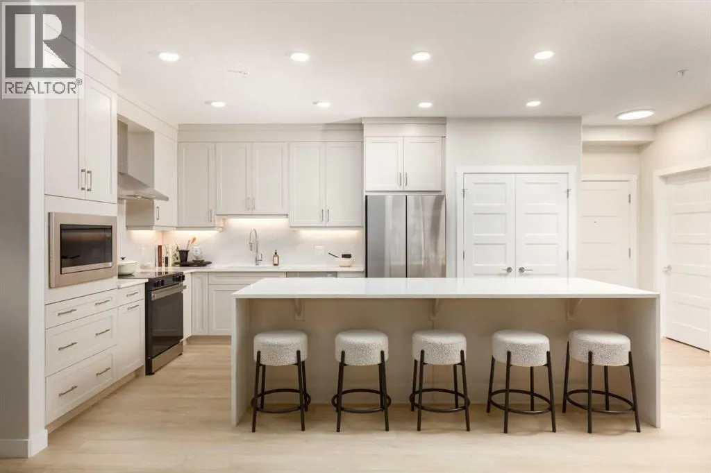 The Whitney is an impeccably designed boutique condo building, situated in the esteemed Aspen Park/Springbank Hill area. Your new home graces one of the finest locations, nestled beside a protected environmental reserve (ravine) that winds through the community, offering extensive recreational walking paths. The Whitney boasts stunning mountain, prairie, and community vistas, with Aspen Landing just a 5-minute stroll away and Downtown a quick 10-minute drive. Your new 2 bed/2 bath BROADWAY unit offers 1161 sq.ft. of architectural measurement (1,091 sq.ft. RMS measurement) of living space, inclusive of en-suite laundry, open concept living, a large patio, air-conditioning, titled underground parking, luxury vinyl plank flooring, quartz counters, custom cabinetry, designer tile, stainless appliances, and additional walk-in storage. .Developed by Cove Properties, one of Calgaryâs most respected multifamily builders known for their dedication to quality craftsmanship, The Whitney is now 93% sold out. Only three units remain, ranging from 600+ square foot one-bedroom homes to 1,200 square foot two-bedroom plus den layouts. Final legal plan and property taxes yet to be confirmed. An annual HOA fee is anticipated, though not yet finalized. Building is still under construction. Building is near completion with possession available in November & December 2025. Please note that all photos shown are from Cove Properties' previous show suites and are intended to illustrate the level of interior finishes that can be expected at The Whitney. Current available units have already had their interior finish selections chosen. This is a limited opportunity to own in one of Calgaryâs most desirable southwest communities. Contact your agent today to arrange a visit to our sales centre. (id:27476)