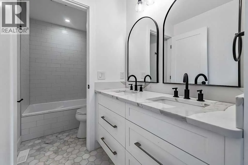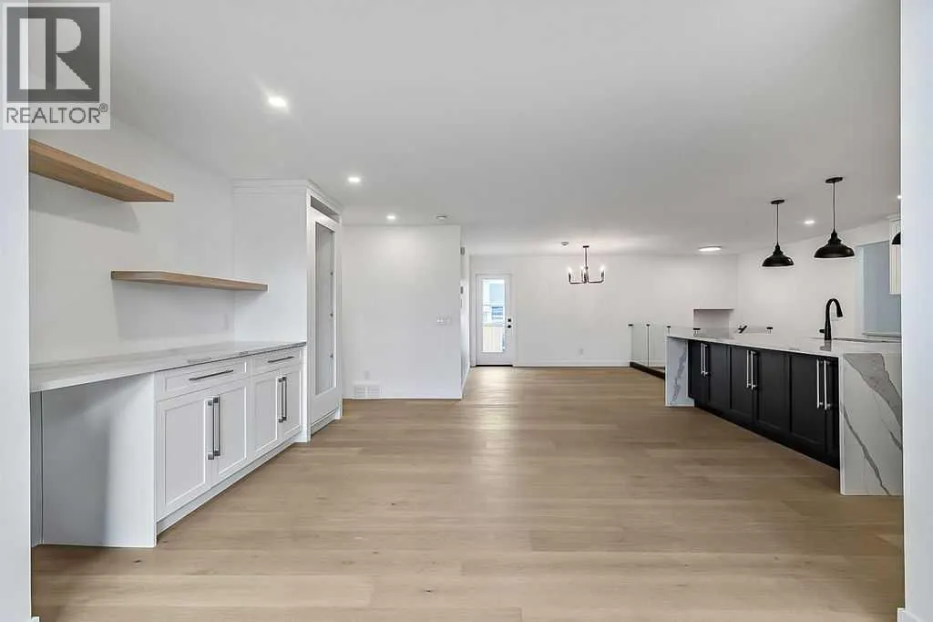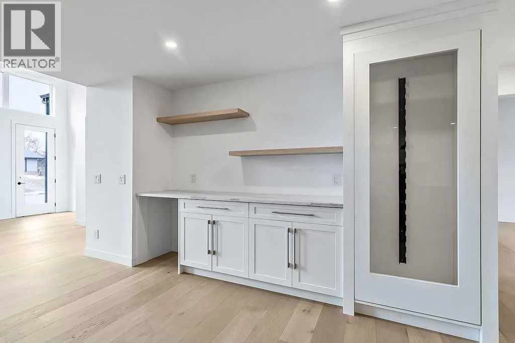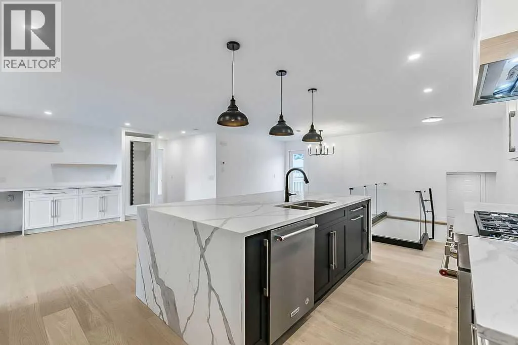 Welcome to an exclusive bungalow nestled in the prestigious community of Lake Bonavista. Boasting over 3400 SQ FT of living space and a front AND back double garage, this luxurious residence is within walking distance to the lake, local schools, shopping and Fish Creek Park nearby. As you enter, soaring vaulted ceilings greet you and run through the living room with gorgeous fireplace to the contemporary loft space. The custom kitchen boasts real wood cabinetry, dovetail drawers, premium quartz counters, a massive island and is flanked by a flex space and a butler pantry. A glass-enclosed wine feature and dinette cabinetry sit just off the dining room which opens out to a bbq area and backyard. The main bathroom exudes elegance, with a custom dual vanity, in-floor heated marble tile, and sits perfectly beside two bedrooms that boast a unique loft space that could be developed to multiple future uses. The primary suite offers a spacious layout, a large walk-in closet, and a luxurious ensuite with a freestanding soaker tub, marble tile, custom double vanity, and a dual shower framed by an exotic backlit illuminated quartz. The basement is an entertainerâs dream with a living room, wet bar, bathroom with walk-in shower, flex room, and two additional bedrooms. Meticulously renovated down to the studs, this home features upgraded insulation, new electrical and plumbing, smart switches, engineered hardwood, and all new doors, trim, and paint. No expense has been spared in creating this luxurious masterpiece, don't miss your chance to make it yours! (id:27476)