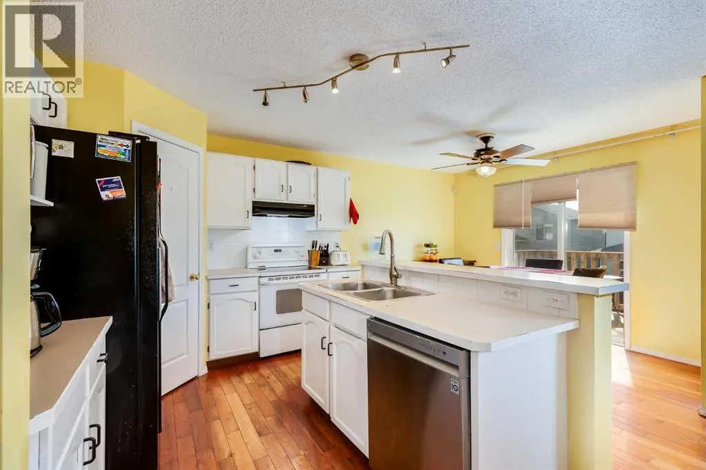 Welcome Home! This 2 storey walk-out featuring a BRAND NEW ROOF sits on a large south facing lot and is tucked away on a quiet street providing a peaceful setting with plenty of space inside and out.The main floor showcases a bright kitchen with white cabinetry, a central island, and spacious dining nook that opens directly onto the deck (Mountain View!) â perfect for everyday meals, entertaining and soaking in the sun. A cozy living room with fireplace and a large south-facing window brings in an abundance of natural light into your main living area all day long. A 2 piece powder room and laundry complete the main.Upstairs, youâll find the wonderful primary bedroom with a vaulted ceiling, a very large walk-in closet, and a cheater door to the 4-piece family bathroom (space and potential to add a private ensuite should you prefer). The upper level also offers 2 more generously sized bedrooms, each with custom closets, providing plenty of storage and functionality. This home was created with function in mind for a growing family.The fully developed walk-out basement expands your living space with a generous recreation room, a full 4-piece bathroom, storage room, and access to the large south-facing yard - notably larger than most in the area and wonderful for families to grow and entertain. The double attached garage provides excellent parking and storage, with plenty of driveway space as well.This home also presents huge potential for a live-up/rent-down setup, making it attractive for both families and investors. Ideally located close to bus routes, the C-Train, schools, and all amenities, itâs the perfect blend of comfort and convenience. Set up a private showing of this terrific home in Tuscany today! (id:27476)