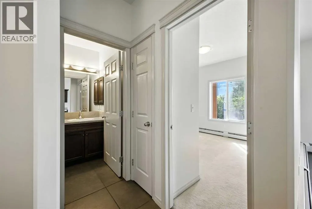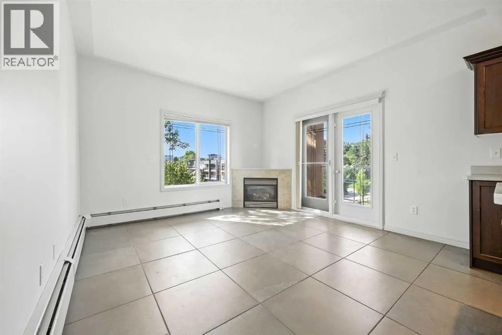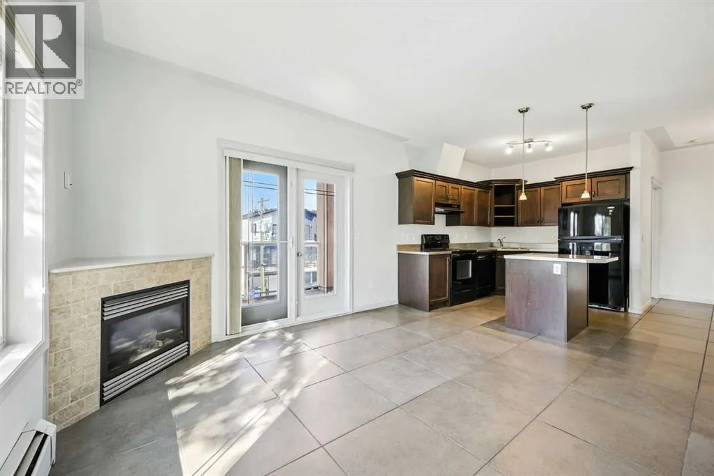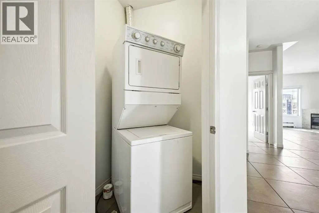 Wonderful Bridgeland location. A short walk to C-Train, river paths and downtown or hop on the bike path that runs right in front of the building. 2 bedroom, 2 bathroom 3rd floor penthouse corner unit with almost 900 sq ft of living space and a titled underground parking stall with room for storage. This apartment is a bright and cheery space that is freshly painted in light tones throughout, helping the large windows provide lots of natural light. Kitchen is highlighted by dark stained maple cabinets and stainless-steel countertops. An island with pendant lights and a black appliance package gives the entire apartment a luxurious feel. The Livingroom has a corner gas fireplace with a mantle, a big west facing window and French doors that open to the balcony where you will find space to entertain and a gas line for your BBQ. The main living space has 2x2 ceramic tile throughout. The primary is equipped with a walk-in closet and 4-piece ensuite bath. There is an additional 4-piece bath off the Livingroom. The second bedroom has a large west window. There is an in-suite laundry with stacking washer and dryer. This 3rd floor walkup is an idea starter home and will make a great investment. Some photos are virtually staged to highlight decorating options. (id:27476)