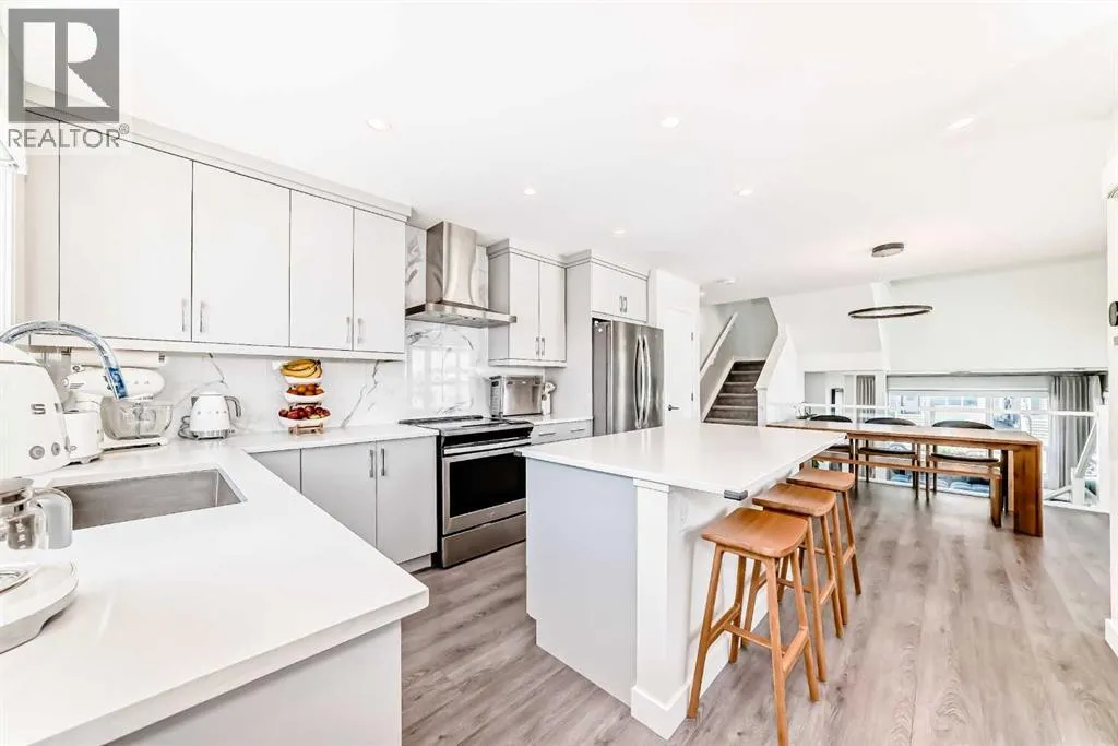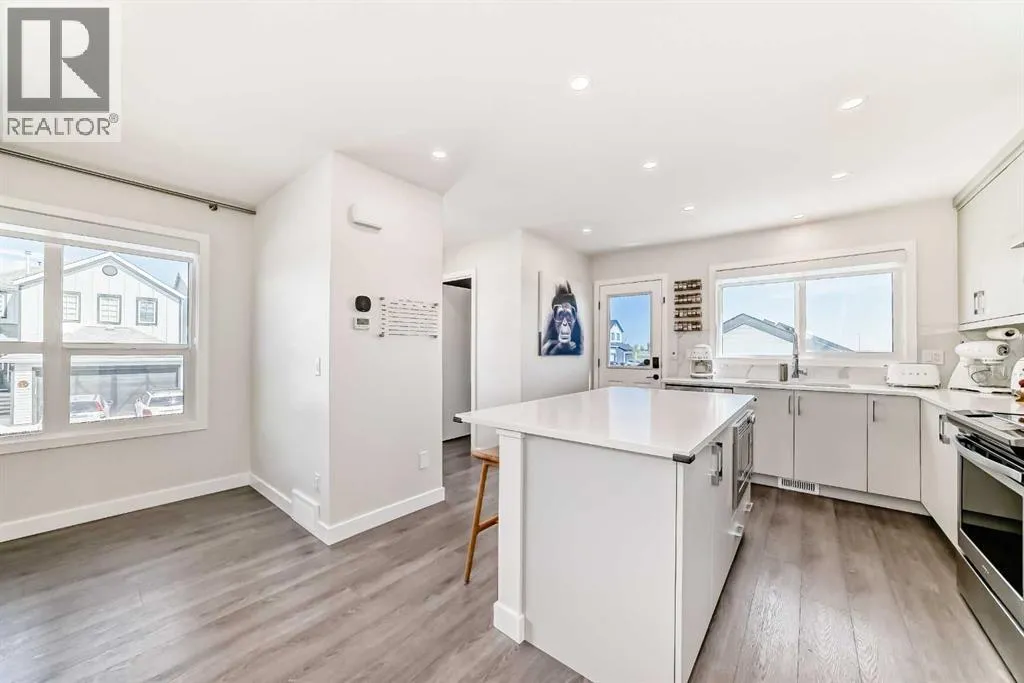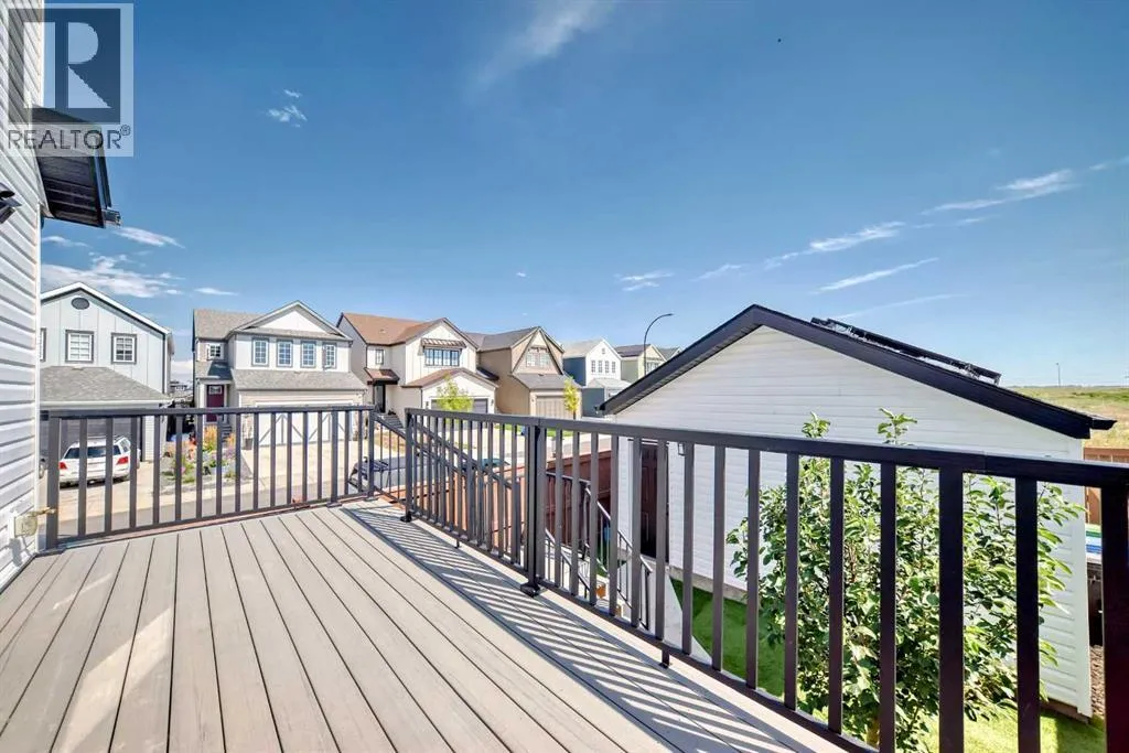 Welcome to this stunning former showhome, with 3 bedrooms, and fully finished basement, with 2021 sq ft of developed living space thoughtfully designed and spread across three beautifully finished levels, situated on a desirable corner lot. This home features large windows that fill the space with natural light, and a wonderfully modern layout. On the main level, you'll find a immaculate kitchen with granite countertops, a central island, and a spacious dining area, perfect for family meals and entertaining. From here, a door leads directly to the back deck and the meticulously landscaped backyard, complete with an 8'x18' deck and a full lawn sprinkler system, and double detached garage. The lower level offers a cozy yet spacious living room anchored by an electric fireplace, along with a versatile den or office. Upstairs, youâll find two generously sized bedrooms, including a primary suite featuring a walk-in closet with a custom PAX wardrobe system. The fully finished basement adds even more living space with bedroom, 4 piece bathroom and large family room ideal for a media room, home gym, or play area. With its combination of thoughtful design, energy efficiency, and premium finishes, this is a move-in-ready home that truly stands out. This home is packed with upgrades, including 19 solar panels, smart switches throughout, Hunter Douglas blinds, glass railings, and gemstone exterior lighting for year-round curb appeal. Stay comfortable year-round with central air conditioning and enjoy the convenience of a heated double detached garage with an EV plug-in. This home is located in Rangeview. It is a vibrant community built around garden-to-table living. With gardens, orchards, and greenhouses alongside parks, pathways, and gathering places, it fosters a connected and healthy lifestyle. Conveniently located near a movie theatre and the worldâs largest YMCA, Rangeview blends modern amenities with nature-inspired living. Don't miss this one, book your showing today! (id:27476)