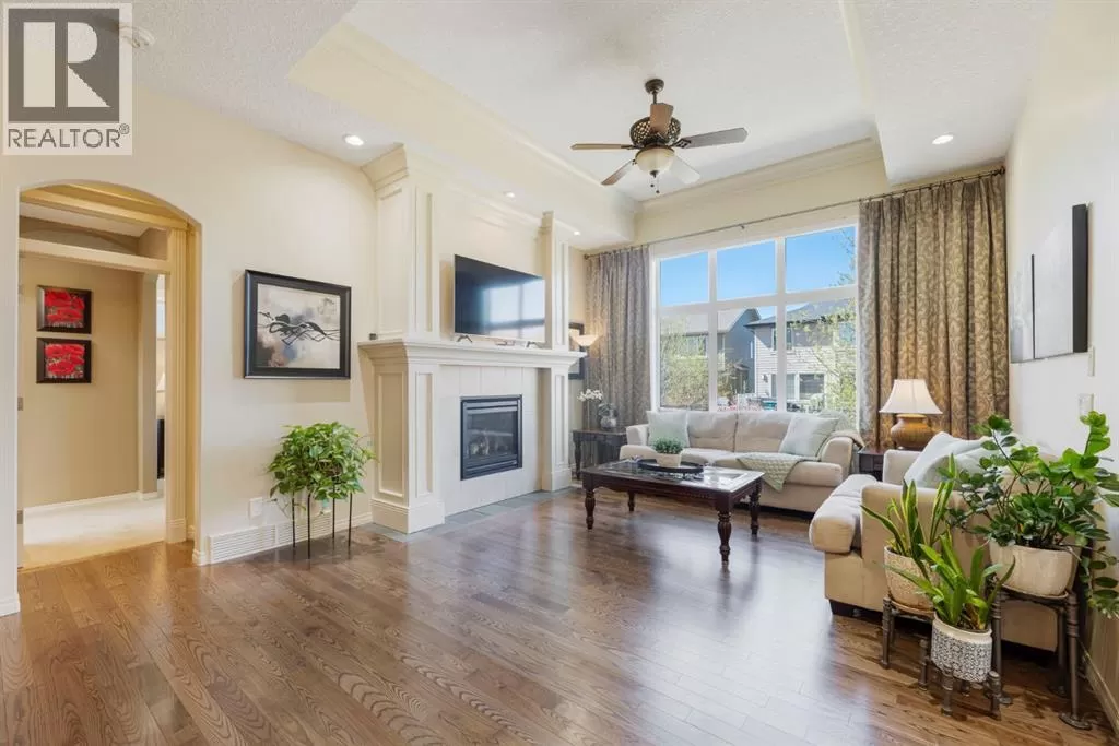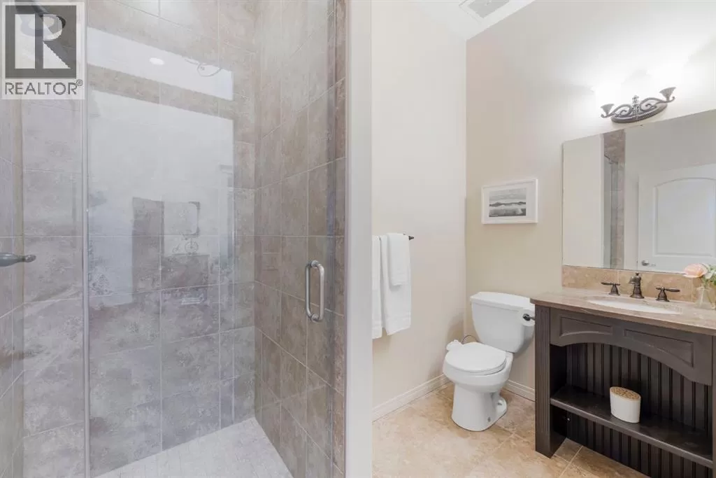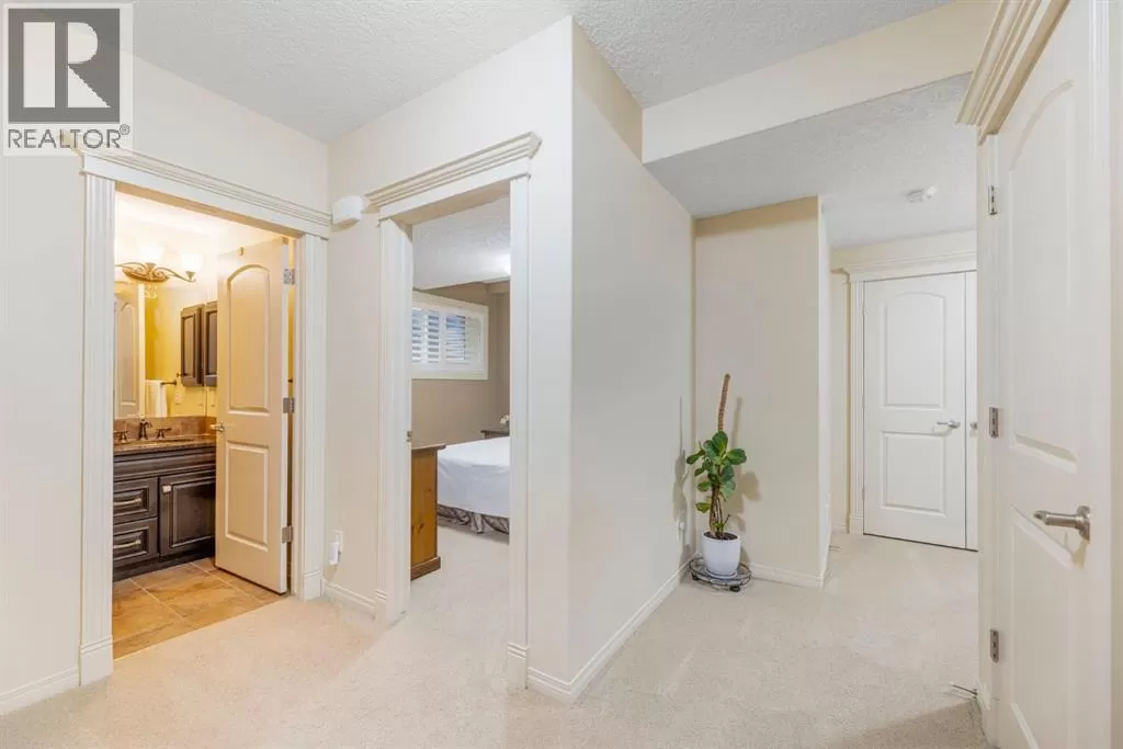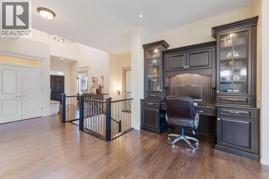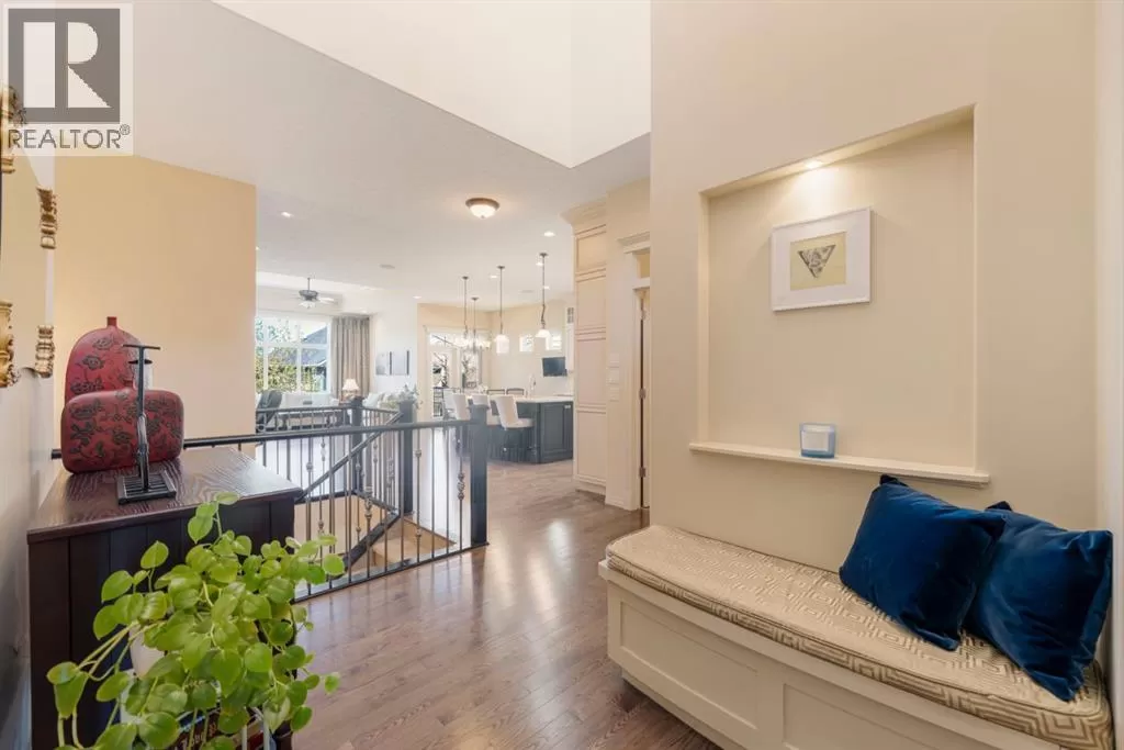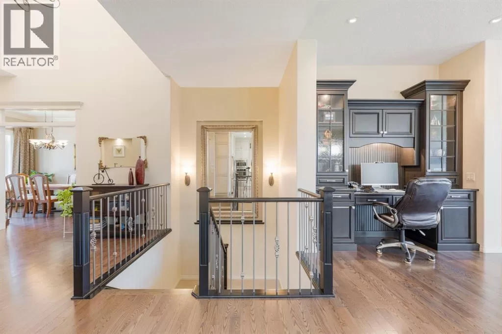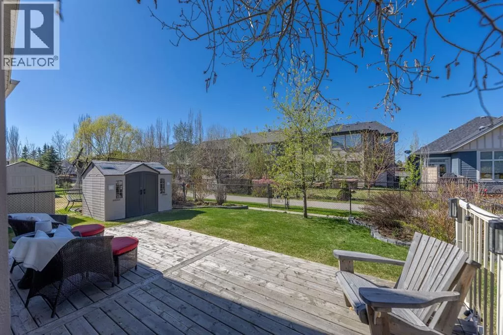 Welcome to this Albi-built, custom-crafted bungalow in the heart of one of Calgaryâs most desirable lake communities. Just nine homes from the shared dock, this residence offers a perfect blend of luxury, comfort, and rare lake access. From the moment you arrive, the curb appeal makes a statementâstained solid wood garage doors, full-height brick columns, and pristine landscaping set the tone for whatâs inside. Step into a warm foyer that opens to a bright, open-concept layout featuring soaring 10-foot ceilings, transom windows, and rich hardwood floors throughout the main level. The gourmet kitchen is designed to impress, with ceiling-height cabinetry, granite countertops, a central island with spice cabinets at both ends, built-in wall oven and microwave with warming drawer, and a walk-through pantry for everyday convenience. The adjacent living room offers a cozy gas fireplace framed with custom millwork and expansive windows that fill the home with natural light while showcasing views of the backyard. A formal dining room provides an elegant space for entertaining, while the built-in home office is both stylish and functional. The spacious primary suite is a true retreat, complete with a spa-inspired ensuite featuring heated tile floors, a jetted tub, walk-in shower, dual vanities, and skylight. The walk-in closet even has its own window for natural light. The fully finished basement expands your living space with 9-foot ceilings, a large recreation room, two additional bedrooms, office space, and a full bathroomâideal for family or guests. Outdoors, your sunny backyard oasis awaits with a spacious deck overlooking the greenbelt and walking path. Whether hosting or relaxing, itâs the perfect extension of your living space. And with the lake just steps away, every day feels like a vacation.Additional highlights include central air conditioning, toe-kick vacuums in the kitchen and ensuite, oversized windows, and the welcoming sense of community this neighbourhood is known for. This isnât just a home itâs a lifestyle. (id:27476)