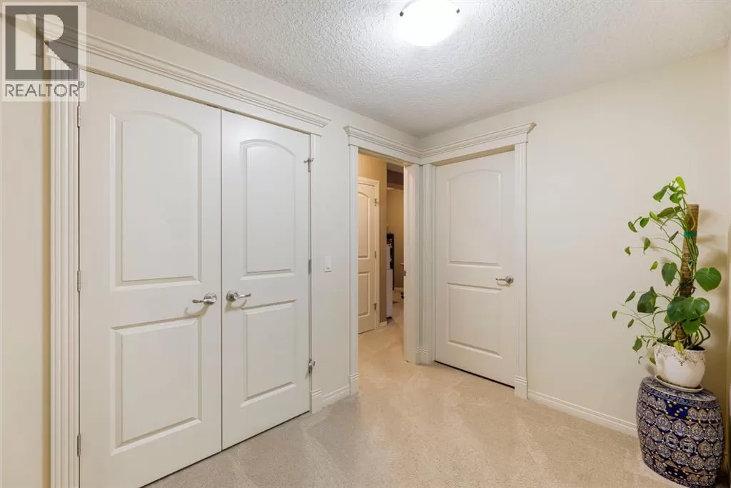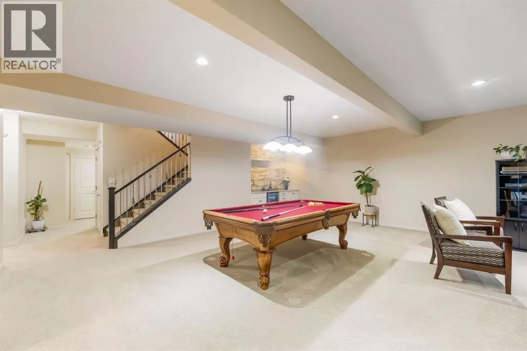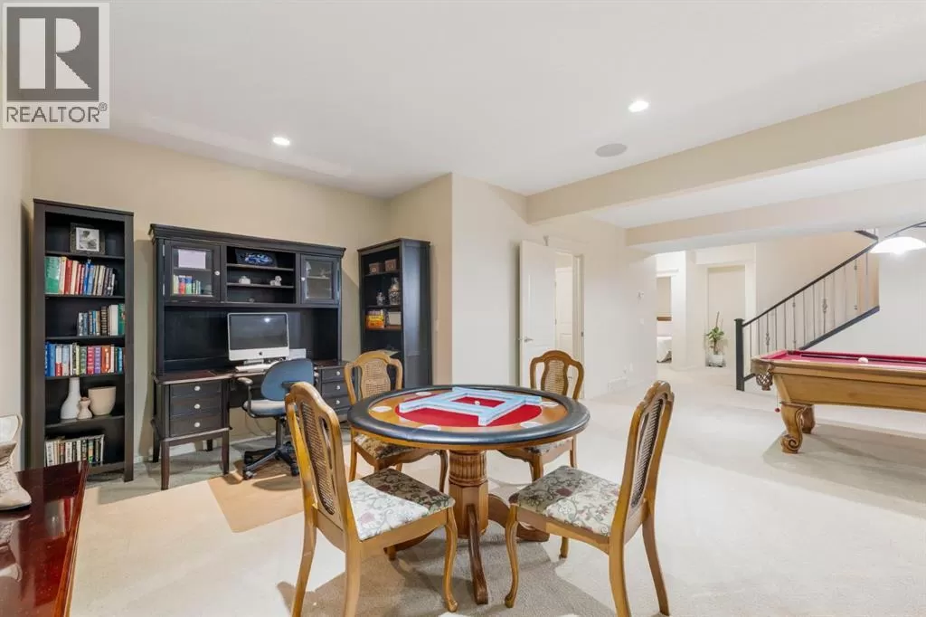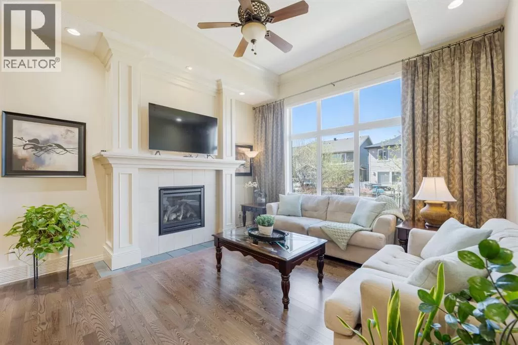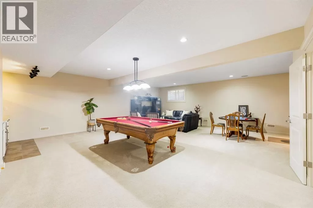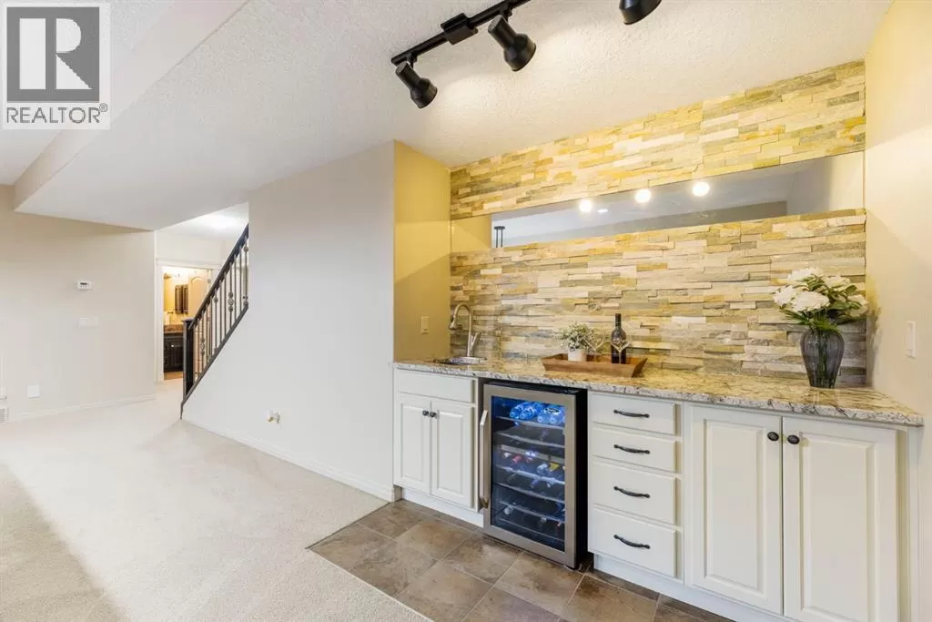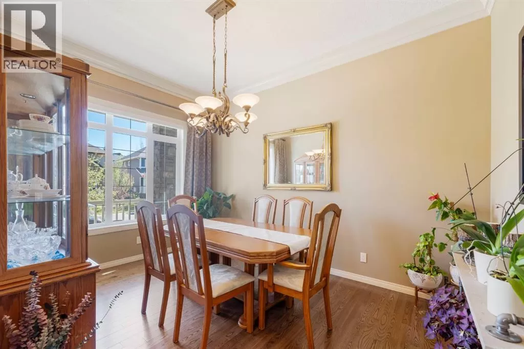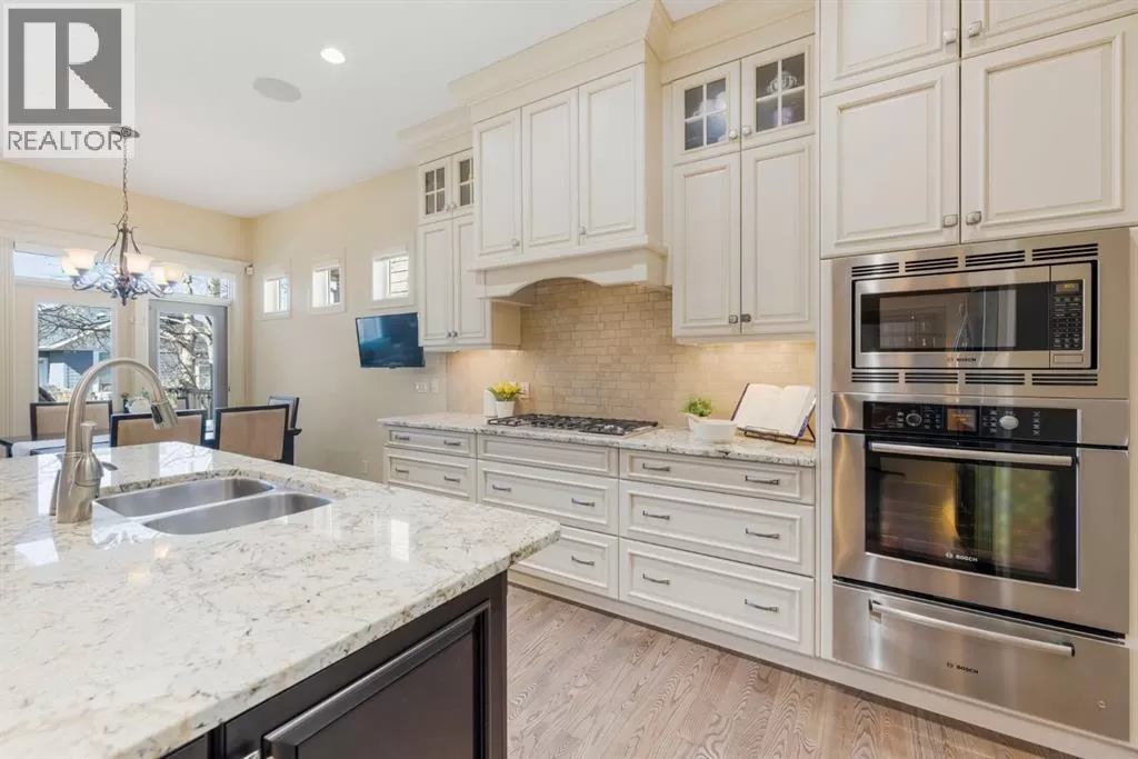 Welcome to this Albi-built, custom-crafted bungalow in the heart of one of Calgaryâs most desirable lake communities. Just nine homes from the shared dock, this residence offers a perfect blend of luxury, comfort, and rare lake access. From the moment you arrive, the curb appeal makes a statementâstained solid wood garage doors, full-height brick columns, and pristine landscaping set the tone for whatâs inside. Step into a warm foyer that opens to a bright, open-concept layout featuring soaring 10-foot ceilings, transom windows, and rich hardwood floors throughout the main level. The gourmet kitchen is designed to impress, with ceiling-height cabinetry, granite countertops, a central island with spice cabinets at both ends, built-in wall oven and microwave with warming drawer, and a walk-through pantry for everyday convenience. The adjacent living room offers a cozy gas fireplace framed with custom millwork and expansive windows that fill the home with natural light while showcasing views of the backyard. A formal dining room provides an elegant space for entertaining, while the built-in home office is both stylish and functional. The spacious primary suite is a true retreat, complete with a spa-inspired ensuite featuring heated tile floors, a jetted tub, walk-in shower, dual vanities, and skylight. The walk-in closet even has its own window for natural light. The fully finished basement expands your living space with 9-foot ceilings, a large recreation room, two additional bedrooms, office space, and a full bathroomâideal for family or guests. Outdoors, your sunny backyard oasis awaits with a spacious deck overlooking the greenbelt and walking path. Whether hosting or relaxing, itâs the perfect extension of your living space. And with the lake just steps away, every day feels like a vacation.Additional highlights include central air conditioning, toe-kick vacuums in the kitchen and ensuite, oversized windows, and the welcoming sense of community this neighbourhood is known for. This isnât just a home itâs a lifestyle. (id:27476)