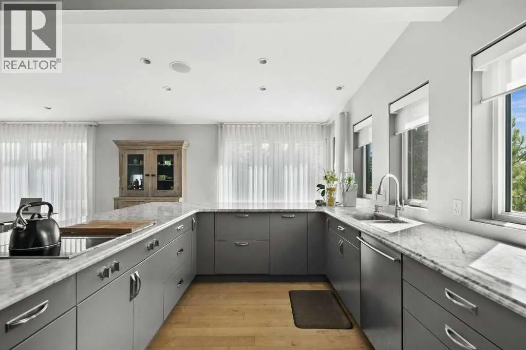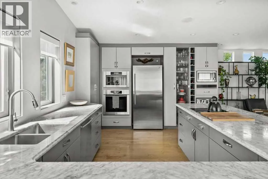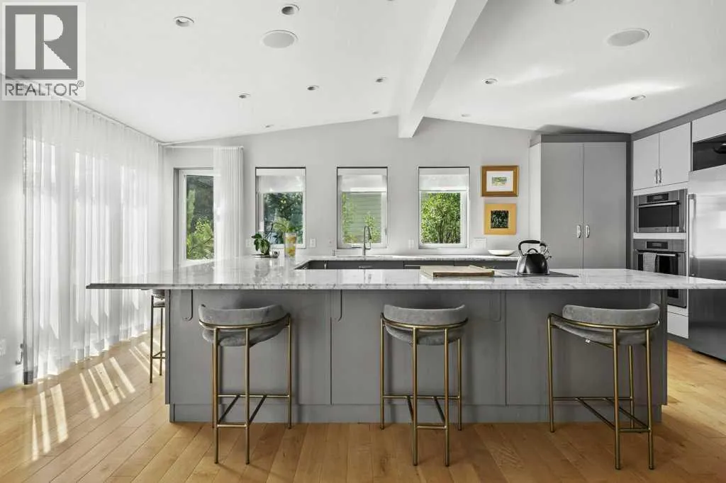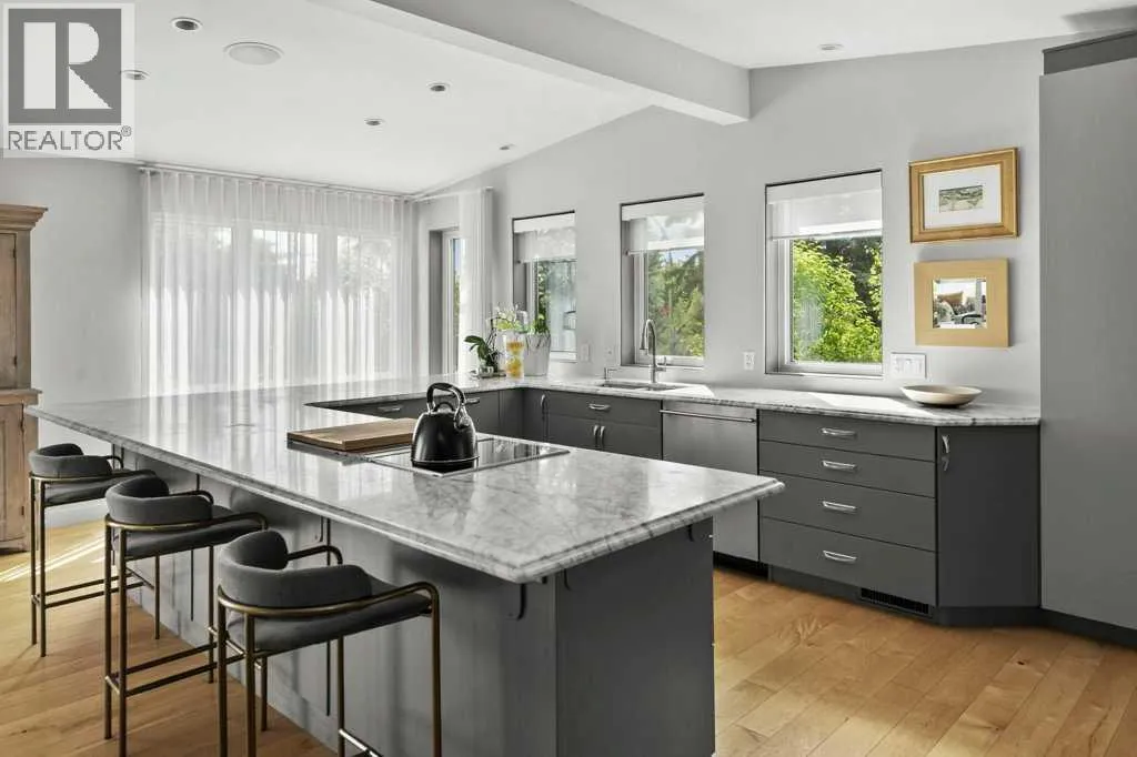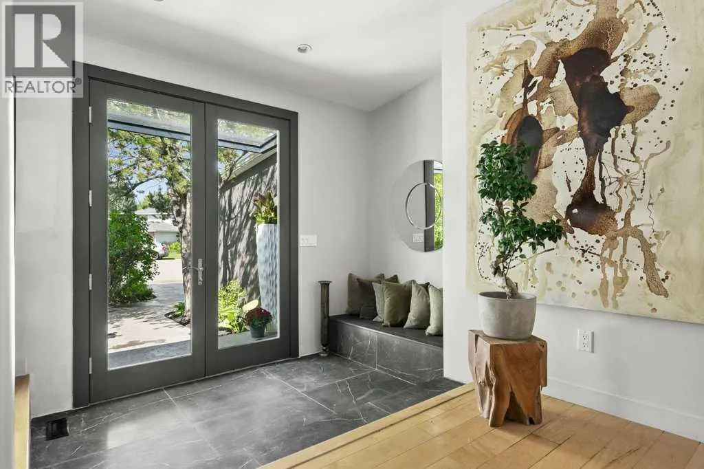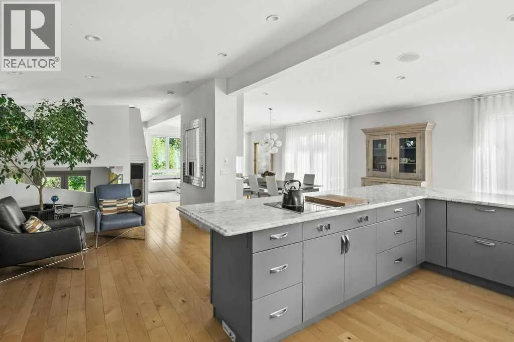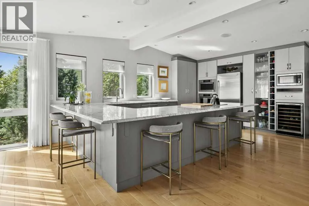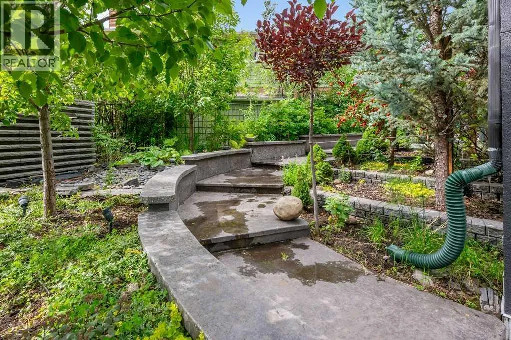 Nestled on a quiet cul-de-sac in sought-after and prestigious Varsity Estates, this exceptional 4-bedroom, 4.5-bathroom estate home with over 2555 square feet of developed living area, sits perfectly on an expansive, irrigated, and private park-like lot. Surrounded by mature fruit-bearing trees, professionally landscaped and irrigated gardens and offering ultimate privacy, this four-level split home delivers sophisticated living in one of the area's most desirable locations. Four separate patios extend your living space outdoors and invite you to relax or host in style while taking in lush garden views.From the moment you step inside, you'll be captivated by vaulted ceilings, designer finishes, and a sense of refined comfort throughout. The heart of the home is a bright and spacious gourmet kitchen featuring top-of-the-line appliances, custom cabinetry, marble countertops and an elegant design thatâs perfect for entertaining or everyday living.The living room offers warmth and character with a unique twist â a secret loft playroom that adds charm and a touch of whimsy. Each level of this thoughtfully designed home brings privacy, functionality, and style.On the lower level the primary bedroom suite is a true retreat, featuring a spa-like ensuite with a soaking tub, walk-in shower, and direct access to a private patio oasis- perfect for morning coffee or a peaceful evening wind-down. There are two additional bedrooms on this level- each with itâs own ensuite washroom.Additional highlights include a oversized garage with epoxy floor, pressure washer and a convenient EV charging outlet. Recent upgrades include tankless hot water system, new furnace, EcoBee security and smart home system, new washer and dryer.Close to great shopping, services, schools and parks. Easy access to LRT and major roadways. Donât miss the opportunity to own this rare gem in a highly sought-after location â a perfect blend of luxury, innovation, and modern design. (id:27476)