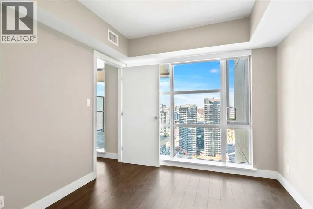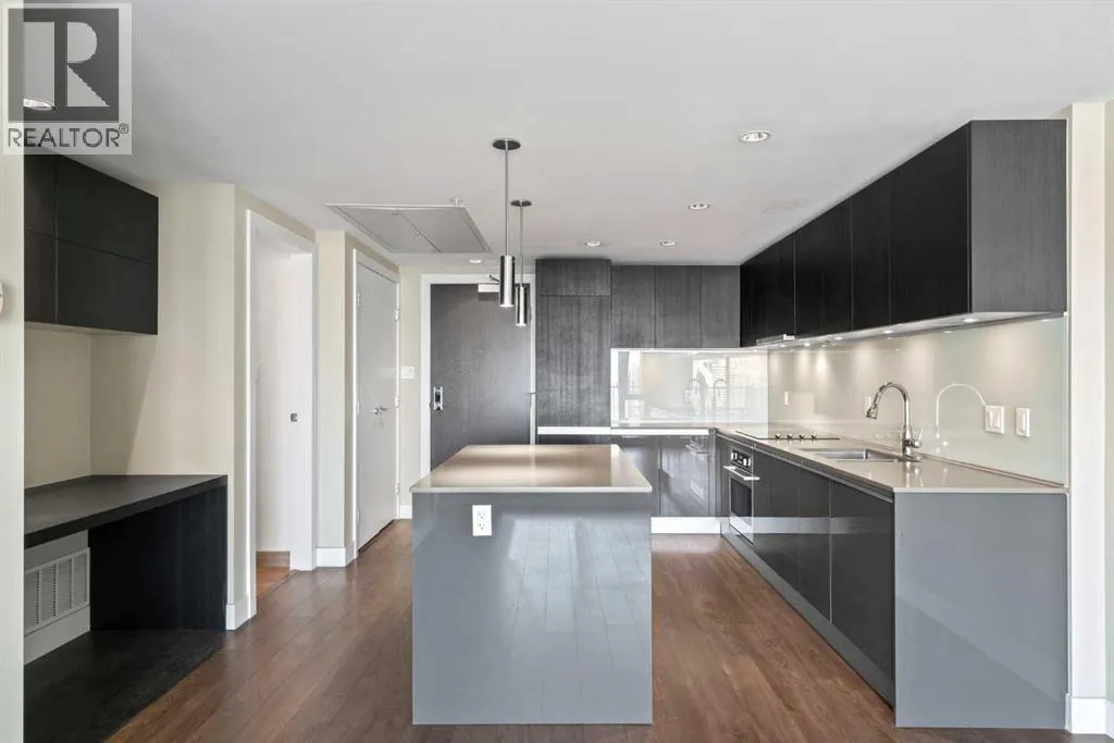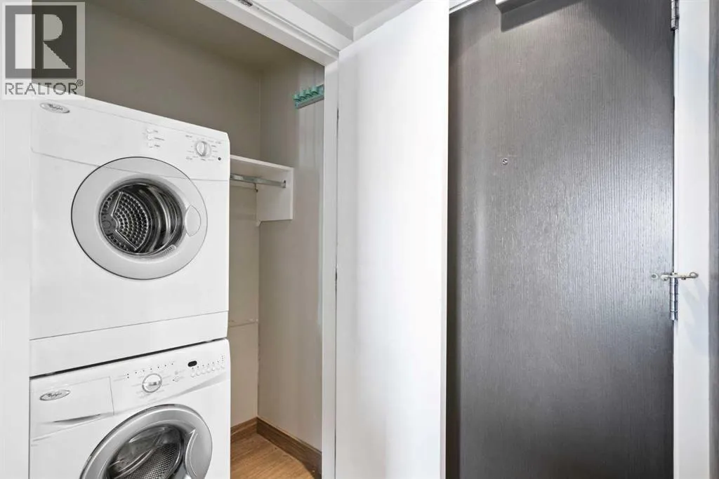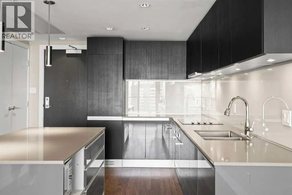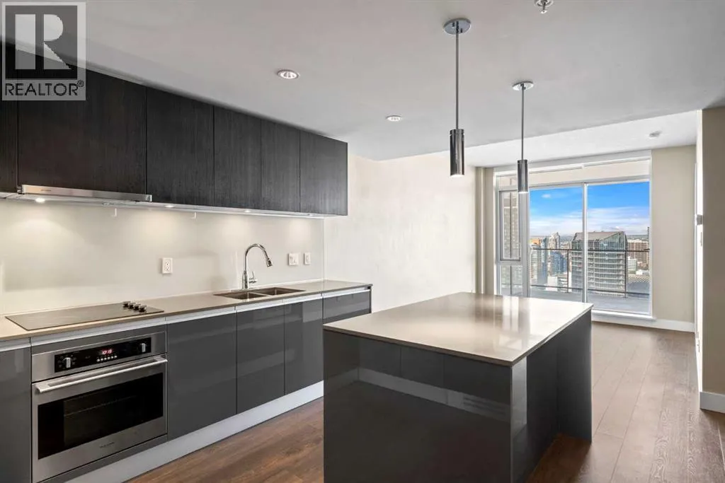 Welcome to this stunning one-bedroom condo located on the 28th floor of a modern high-rise in one of downtown Calgaryâs most desirable areas. Enjoy breathtaking panoramic views of the city skyline from your spacious living room or large private balconyâperfect for morning coffee or evening sunsets. The popular '08' floor plan features a smart, open layout ideal for modern urban living. The sleek kitchen boasts European-style cabinetry, quartz countertops, built-in appliances, a dishwasher, and garburator. The interior adds a clean, contemporary feel throughout. The generous bedroom includes a large walk through closet with upgraded built in cabinetry, and the in-suite laundry room offers extra storage for added convenience. A titled underground parking stall is included for secured parking. This pet-friendly building offers top-tier amenities, including a garden terrace with BBQs, residents' lounge, premium fitness center, workshop room and concierge services. Situated steps from cafes, restaurants, shops, and public transit, this condo offers unbeatable value for first-time buyers, investors, or anyone seeking a vibrant downtown lifestyle. Donât miss your chance to own one of Calgaryâs finest condos in the heart of the city! (id:27476)