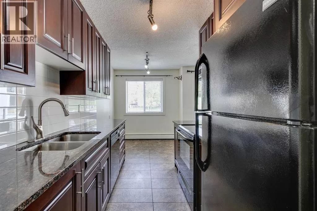 Welcome home to this beautiful & inviting 2-bedroom, 1-bathroom unit offering quick possession and true move-in readiness. Thoughtfully designed with an open-concept layout, this condo features plenty of natural sunlight flowing through the large windows and living space. The stylish kitchen is complete with stone countertops, full-height cabinetry, and a spacious dining areaâperfect for entertaining or everyday living.Enjoy the convenience of in-suite laundry, a private 4-piece bathroom, and a generously sized primary bedroom with ample closet space. The unit also includes an assigned parking stall and ample in-suite storage. Located just steps from parks, pathways, and an off-leash dog park, and with easy access to major roads and transitâthis pet-friendly complex checks all the boxes. 2 pets allowed with Board approval.Donât miss your chance to own this bright and welcoming homeâbook your private showing today! (id:27476)