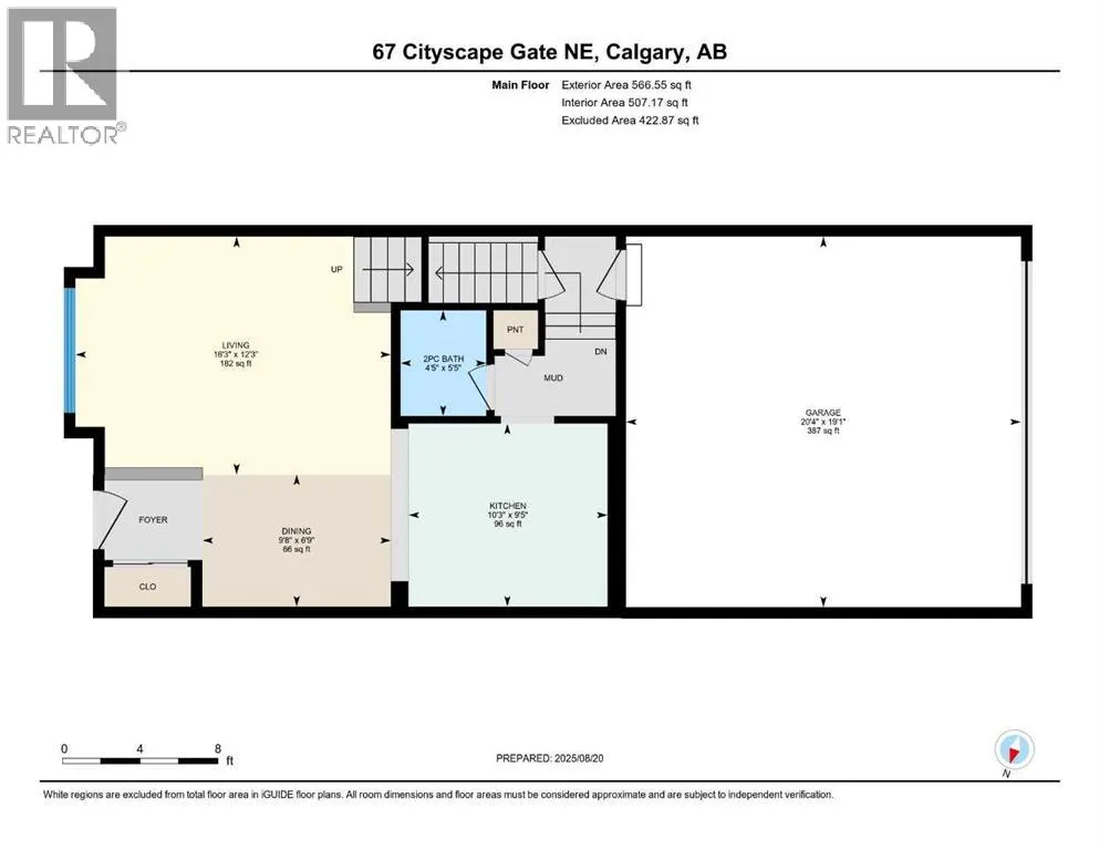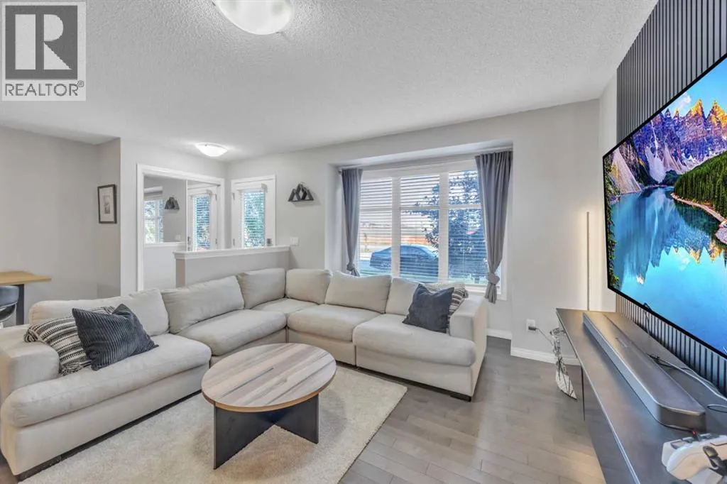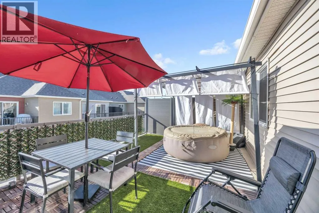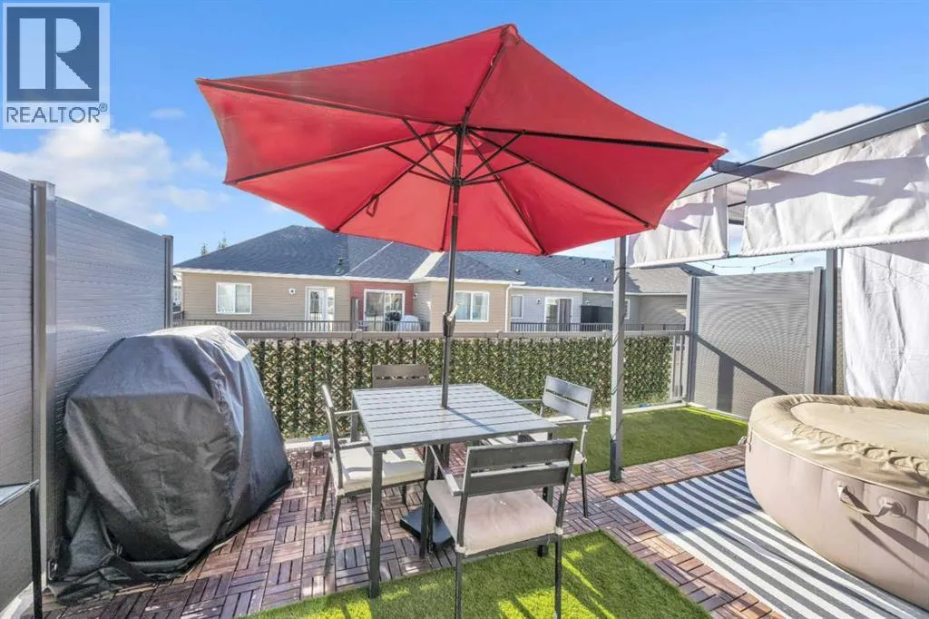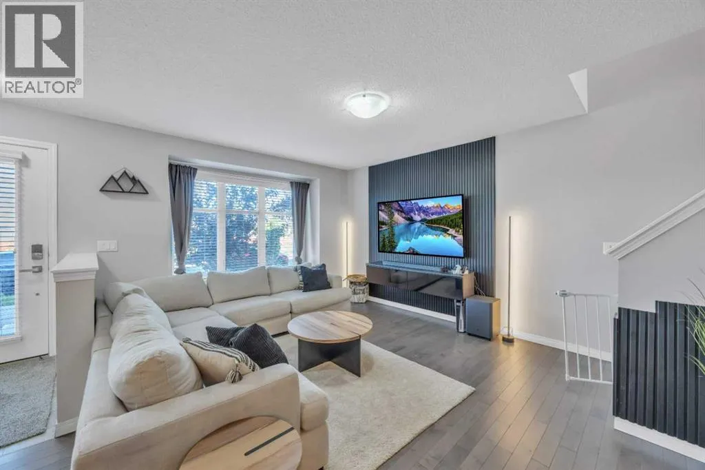 Welcome to this immaculate, move-in ready townhome in the desirable community of Cityscape â with NO CONDO FEES! Pride of ownership is evident throughout this beautifully maintained 3-bedroom, 2.5-bathroom home, lovingly cared for by its original owner. The open-concept layout is both functional and stylish, featuring hardwood flooring, large windows that flood the space with natural light, upgraded appliances, and a modern neutral colour palette. The bright and airy main floor is perfect for everyday living and entertaining, with morning sun lighting up the spacious living and dining areas. The kitchen is smartly tucked away to create a seamless flow while still offering generous storage, an oversized fridge with an ice maker, and plenty of prep spaceâperfect for family dinners or hosting guests. A convenient powder room and direct access to your oversized double detached garage complete the main level. Upstairs, you'll be greeted by an abundance of natural light and a thoughtfully designed layout. The peaceful primary suite includes a walk-in closet and a 3-piece ensuite with a fully tiled stand-up shower extending to the ceiling. Two additional spacious bedrooms and a 4-piece bathroom complete this level. Step outside to your large upper-level patioâan ideal retreat for warm summer evenings. Whether you're relaxing with a glass of wine, soaking in a hot tub, or hosting a BBQ, this space offers endless potential for your private outdoor oasis. The fully finished basement adds even more living space, featuring a generous rec room and a full bathroomâperfect for a home office, gym, or guest area. You'll also find an upgraded washer and dryer set located in the basement, keeping your main living areas quiet and tidy. You're just a short walk to scenic walking paths, green spaces, and tranquil ponds. Enjoy easy access to Metis Trail, Stoney Trail, Country Hills Blvd, CrossIron Mills, and the airport. VIRTUAL TOUR AVAILABLE! (id:27476)