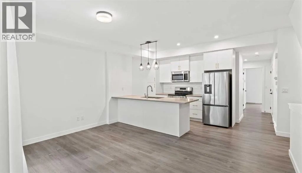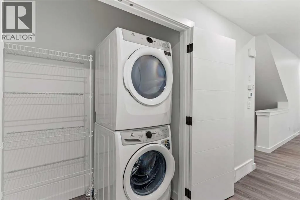 This modern designed 2 beds, 2 baths, and attached tandem garage, stacked townhouse unit on the MAIN FLOOR with spacious PATIO! The open-concept bungalow-style main floor features 9' ceilings, double pane glazing windows, and luxury vinyl plankflooring throughout the kitchen, living, dining area, bathroom, & entire bedroom. You will see a huge storage space, a utility room with ahigh-efficiency furnace, & a water tank on the lower level. The European-inspired kitchen features Quartz countertops, a Microwave Hood fan,High-quality cabinets, Soft-close doors, Drawers, Backsplashes, Stainless-steel appliances, and the front load washer & dryer. The newlycompleted Elkwood Townhouse offers affordable luxury & convenient living, close to Aspen Landing Shopping. Bordered by anatural environmental reserve & walking trails that connect throughout the community, it is a perfect location for active living & relaxation.Built by Slokker Homes, a quality builder since 1935, these homes offer the best value in Aspen and Springbank Hill. (id:27476)