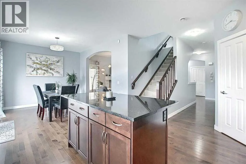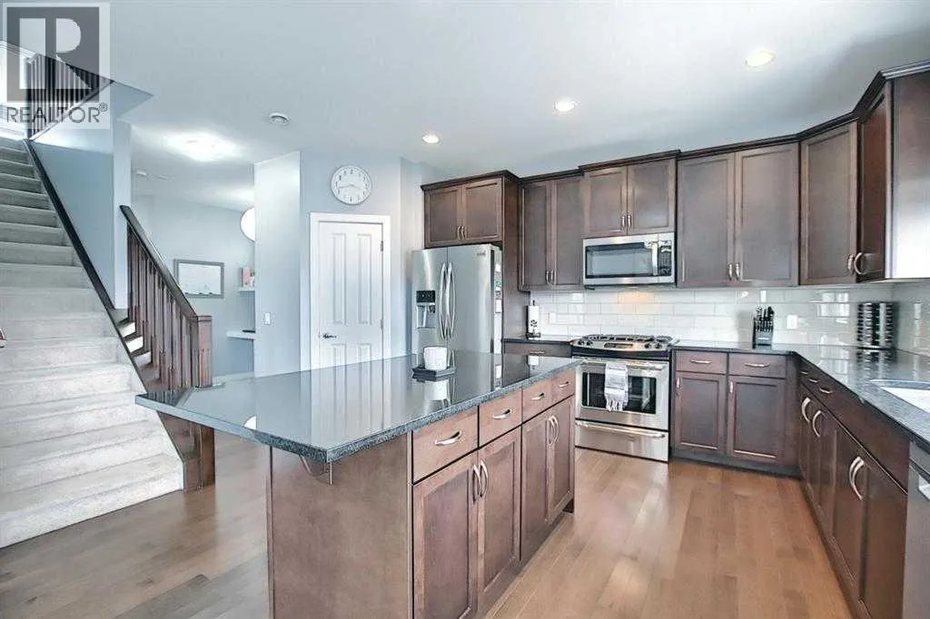 Nestled in the Heart of Walden is this absolutely lovely detached home located on a very quiet street, within close proximity to playgrounds, schools, shopping, restaurants, and multiple pathways leading to ponds and creeks. This home features high ceilings and beautiful hardwood floors throughout the main level, along with a convenient front office ideal for working from home. The large kitchen includes a center island with granite countertops, stainless steel appliances, corner pantry, tall cabinets, and ample counter space. The main floor family room is complete with a cozy gas-burning fireplace, dining area perfect for gatherings, and direct access to the back deck through oversized glass doors that bring in plenty of natural light. Upstairs, youâll find a spacious bonus room, upper-floor laundry, and three generous bedrooms. The primary suite features a full ensuite with granite countertops, soaker tub, tile flooring, and walk-in closet. The basement offers a smart layout with rough-ins already in place, ready for your finishing touches. The attached double garage is spacious and includes a built-in sink with cabinets, making it practical for cleaning tools and hands before re-entering the home. Numerous upgrades are found throughout, including granite counters in every washroom, built-in features, plenty of windows, stylish light fixtures, and more. The exterior showcases mature trees, a fully fenced backyard, and welcoming curb appeal. This home has been freshly painted throughout and has brand new carpets, offering a move-in ready feel. Please note: photos are from a previous listing. (id:27476)