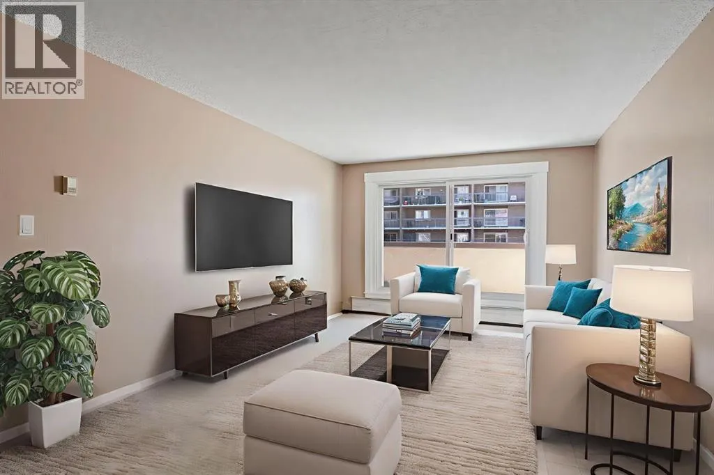 Hereâs your chance to own a well-located condo in Calgaryâs vibrant downtown core. Offering 2 bedrooms, 1 bathroom, and a spacious living area, this home is an ideal opportunity for first-time buyers, investors, or anyone looking to add value with some updates. The bright living room features large sliding doors that open to a generous private balcony perfect for morning coffee or evening relaxation with city views. The functional floor plan includes a separate dining area, a galley-style kitchen, and a well-sized bedroom, giving you a solid foundation to create your own downtown retreat. With secure building access, convenient on-site laundry, and unbeatable walkability to shops, restaurants, transit, and Calgaryâs business district, this condo combines value and location in one package. Bring your vision and make this space your ownâwhether as a stylish urban home or an income-generating rental property. Don't miss chance to see it today. (id:27476)