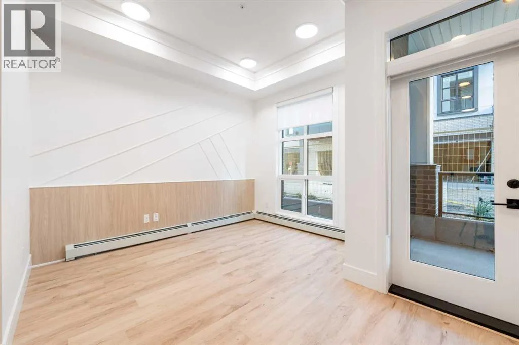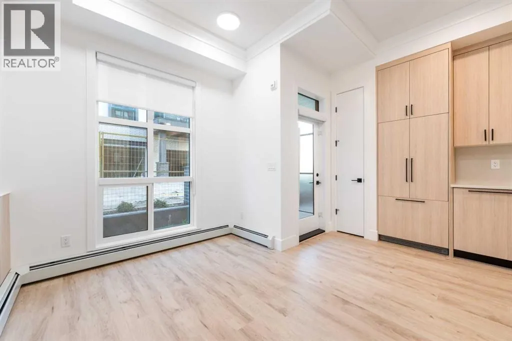Be the first to own this BRAND-NEW, NEVER-OCCUPIED ground-floor condo (Builder Size: 477 SqFt) in the award-winning University District, where modern design meets unbeatable convenience. Offering 10-FOOT CEILINGS, expansive windows, and a bright open layout, this stylish home features a sleek kitchen with QUARTZ COUNTERTOPS, panel-ready fridge and dishwasher, soft-close cabinetry, and elegant finishes that flow seamlessly into the sunlit living area and onto your PRIVATE BALCONY. The spacious 1-BEDROOM retreat provides comfort and privacy with easy access to a contemporary 4-PIECE BATH, while details like CALIFORNIA KNOCKDOWN CEILINGS reflect quality craftsmanship throughout. A TITLED UNDERGROUND PARKING stall adds everyday ease, and the buildingâs thoughtful AMENITIESâincluding EV CHARGING, BIKE STORAGE, and inviting communal spacesâenhance your lifestyle. Step outside your door to enjoy the highly walkable University District, filled with BOUTIQUE SHOPS, RESTAURANTS, PARKS, and SCENIC PATHWAYS, with the University of Calgary, Market Mall, Foothills Medical Centre, and major roadways just minutes away. Whether youâre a FIRST-TIME BUYER, an INVESTOR, or searching for a STYLISH URBAN RETREAT, this move-in-ready condo offers the perfect blend of COMFORT, CONVENIENCE, and COMMUNITY in one of Calgaryâs most sought-after neighborhoods. BOOK YOUR SHOWING TODAY! 3D VIRTUAL TOUR AVAILABLE (id:27476)