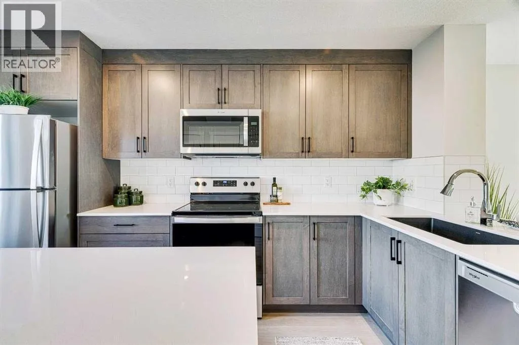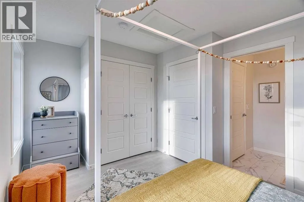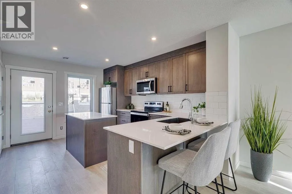 Welcome to the Ambrosia by Avalon Master Builder, a stunning 2-bedroom, 2.5-bathroom two-story townhome designed for modern living. Located in the picturesque Crimson Ridge, this home offers scenic views of the Bow Valley River, downtown and Canada Olympic Park. This home features open-concept living with a spacious kitchen island, perfect for entertaining, and Luxury Vinyl Plank (LVP) flooring throughout the main level and bathrooms. Each bedroom boasts its own private ensuite for added comfort and convenience, while upper-floor laundry provides maximum functionality. Built to optimal energy efficiency, it features superior insulation, triple-pane windows, and advanced construction techniques that keep energy costs low and comfort high. Every square foot of this home is thoughtfully designed to maximize functionality, energy efficiency, and style. Additionally, it is right next to a beautiful golf course, making it an ideal spot for golf enthusiasts. Photos are representative. (id:27476)