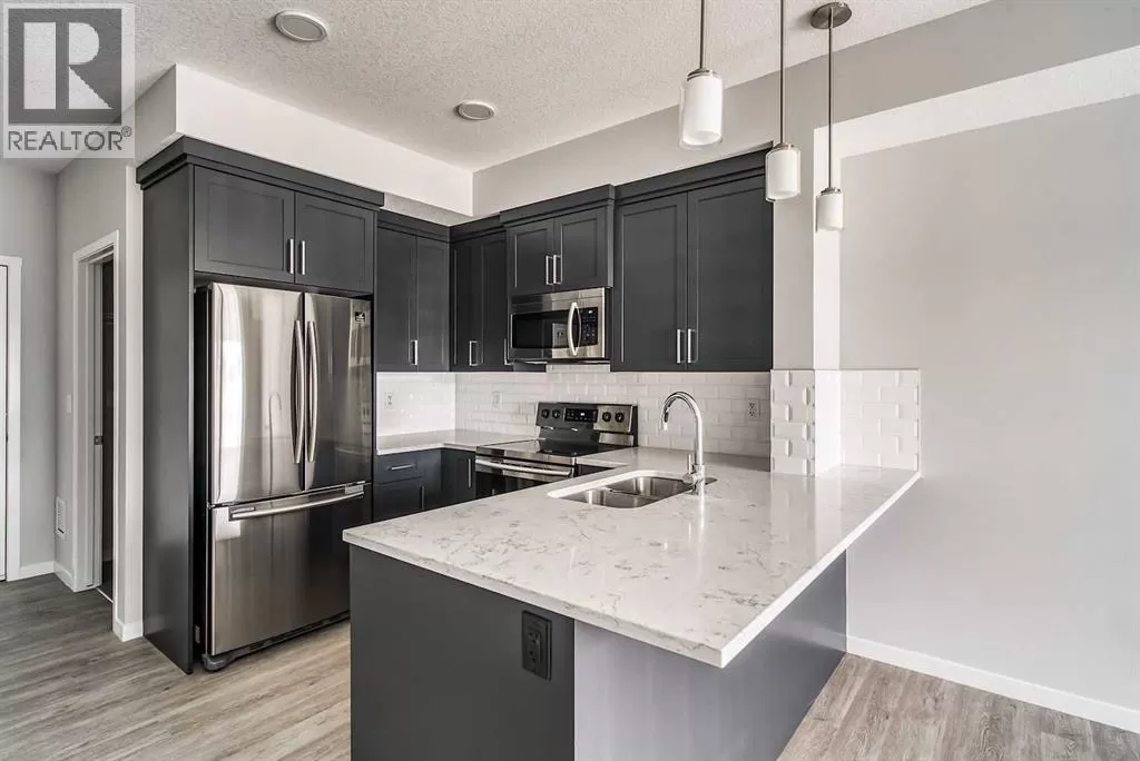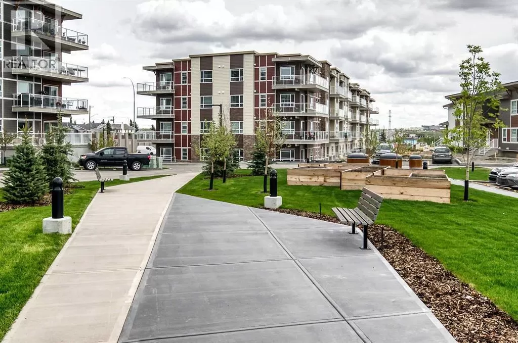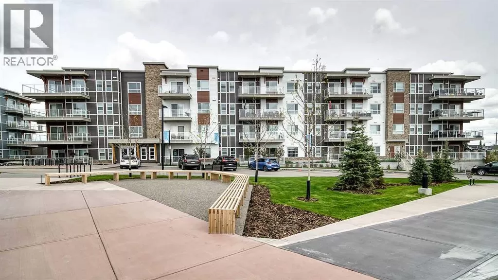Step into this stylish 2-bedroom, 1-bath condo in the sought-after community of Harvest Hills, where a bright open-concept layout and thoughtful design maximize both comfort and function. The modern kitchen is a highlight, featuring stainless steel appliances, granite countertops, chic subway tile backsplash, and a kitchen island with breakfast bar - for both entertaining and casual dining. The spacious living area is filled with natural light and extends onto a large private balcony - perfect for relaxing or entertaining. The primary bedroom offers an inviting retreat with abundant windows, complemented by a versatile second bedroom that works equally well as a home office, guest room, or family space. Complete with in-suite laundry, a titled outdoor parking stall, and unbeatable proximity to transit, shopping, dining, and every convenience, this home delivers incredible value in a prime location. (id:27476)