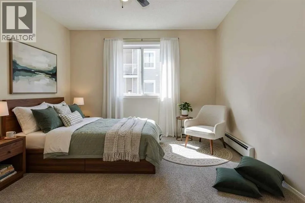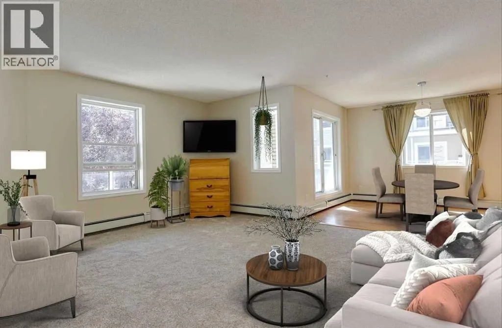 Bright and spacious 2-Bedroom End-Unit Home, with Wrap-Around Balcony ??Welcome to this beautifully updated 2-bedroom, 2.5-bath condo offering over 1,000 sq. ft. of inviting living space in a quiet, family-friendly community. Positioned on the second floor, this desirable end unit enjoys extra windows, abundant natural light, and a private wrap-around balcony overlooking a peaceful courtyard â perfect for morning coffee or evening relaxation.Both bedrooms feature their own walk-through closets and private ensuites, creating ideal comfort and privacy for family or guests. A separate powder room adds extra convenience. Recent upgrades include new carpet, fresh paint, and stainless-steel appliances â including a new dishwasher and hood fan, plus a spacious newer oven and refrigerator.The bright kitchen offers ample cabinetry and a functional layout with a breakfast bar that opens seamlessly to the dining and living area â perfect for entertaining.Enjoy peace of mind in this well-managed building with secure entry, temperature-controlled underground parking, and reasonable condo fees. The location truly has it all â just steps from the public library, community center, school, shopping, dining, and the C-Train station for easy commuting.Move-in ready and thoughtfully maintained, this home delivers the perfect blend of comfort, convenience, and value. Donât miss your chance to make it yours â book your private showing today! (id:27476)