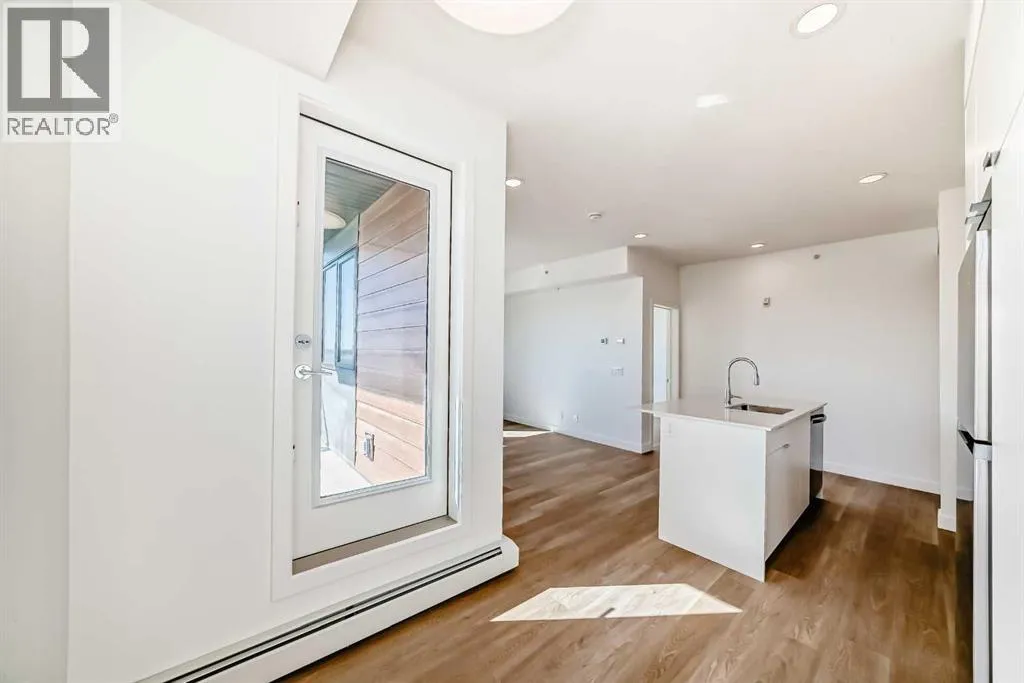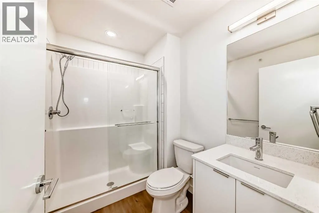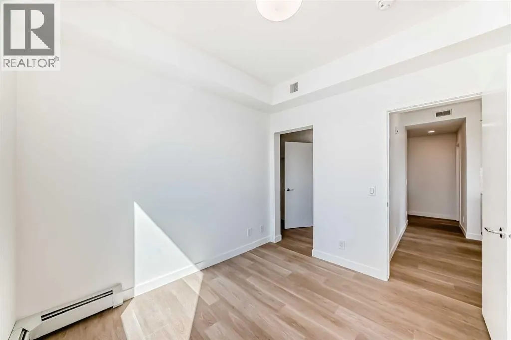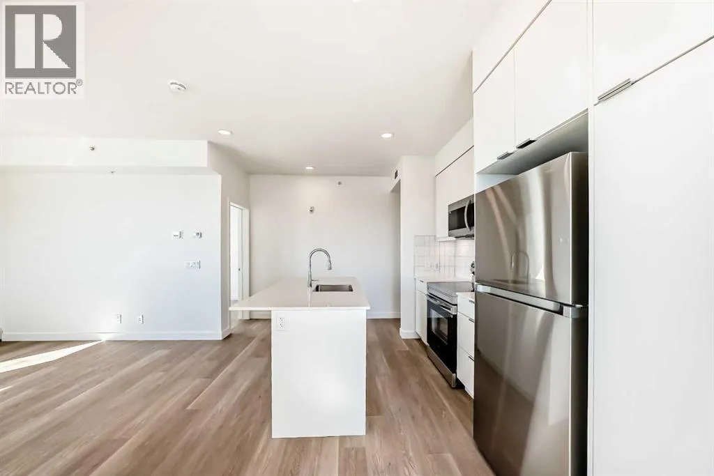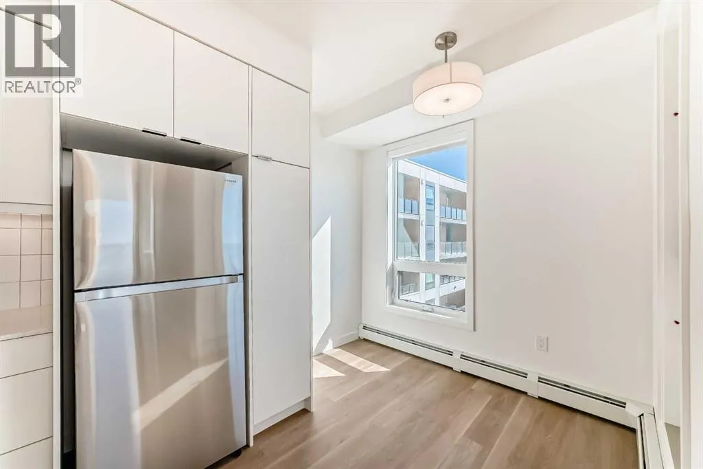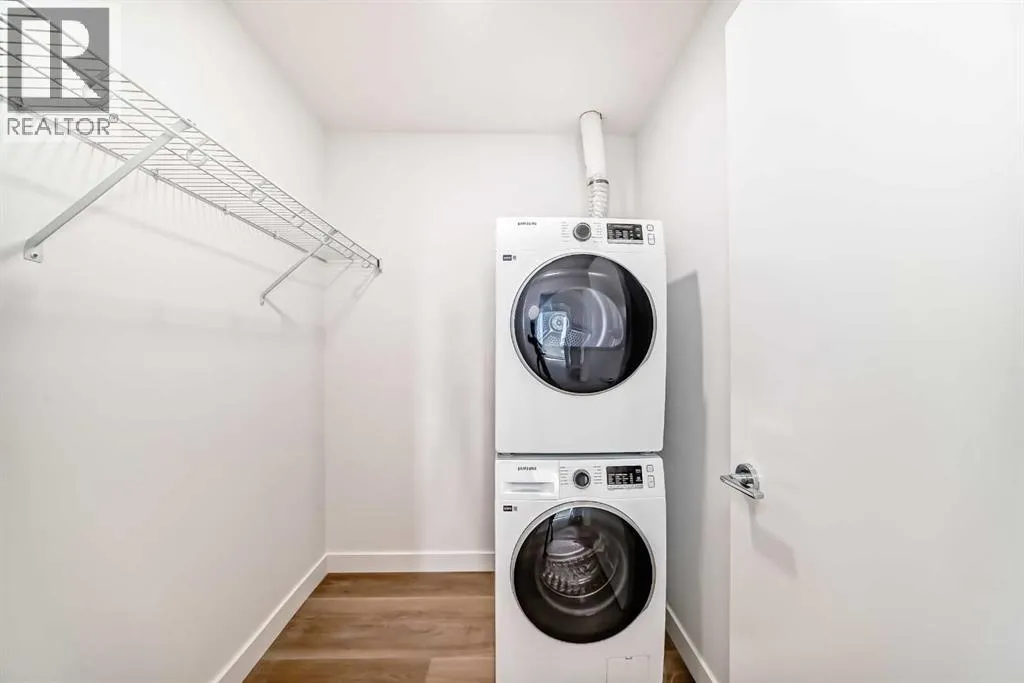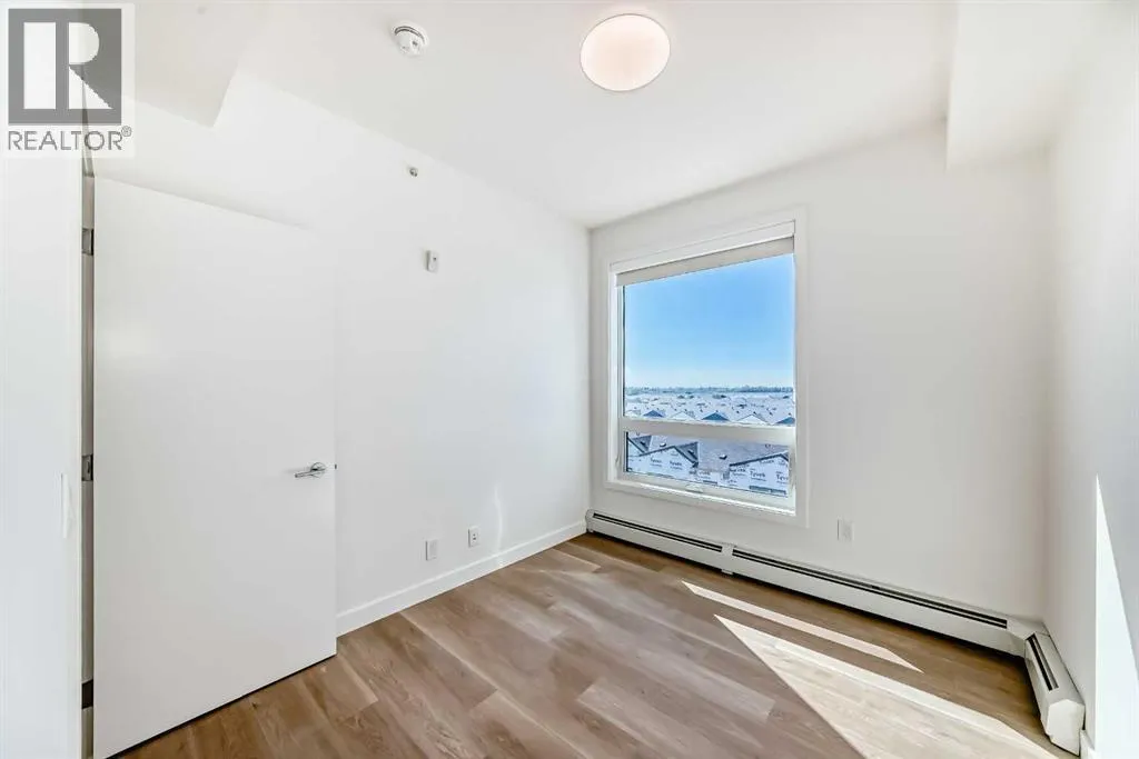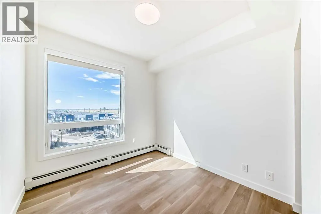 CORNER UNIT WITH 2 ENSUITE BATHROOMS. This bright 5th-floor corner unit features two spacious bedrooms, each with its own walk-in closet and ensuite bathroom. Located in East Hills Crossing, the home also includes underground parking and a storage locker. Enjoy being just steps from East Hills Shopping Centre (Costco, Walmart, Cineplex, banking), parks, and walking trails, with quick access to Stoney Trailâand only a 20-minute drive to downtown Calgary.Inside, the open-concept layout offers sleek white cabinetry, a large eating bar, and a dedicated dining space. Expansive corner windows flood the condo with natural light, while south and east views highlight its prime position. The dining area opens to a private balcony, perfect for morning coffee or relaxing on sunny afternoons.With in-suite laundry, titled underground parking, and a separate storage unit, this condo delivers a complete package for first-time buyers, downsizers, or investors. Book your private showing today! (id:27476)