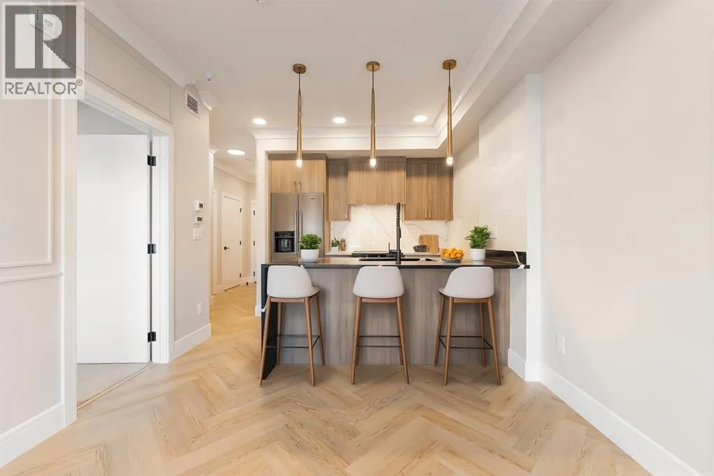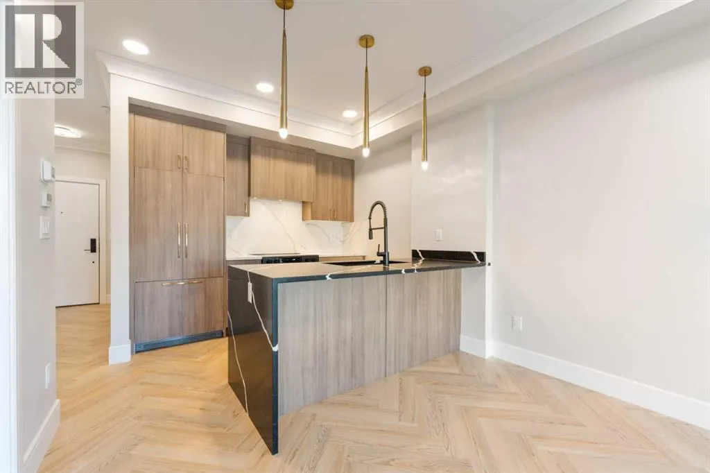 Be the first to call this BRAND-NEW, NEVER-LIVED-IN 2nd-floor condo (Builder Size: 654 SqFt) in the award-winning University District your own! Thoughtfully designed with 9-FOOT CEILINGS, large windows, and a bright open layout, this home combines MODERN STYLE with everyday convenience. The kitchen is a true centerpiece, featuring QUARTZ COUNTERTOPS, a panel-ready fridge and dishwasher, soft-close cabinetry, and contemporary finishes that flow into the sun-filled living area and out to your PRIVATE BALCONY. The spacious 1-BEDROOM + DEN floor plan offers flexibility for work or guests, while the sleek 4-PIECE BATH and CALIFORNIA KNOCKDOWN CEILINGS add to the homeâs quality appeal. A TITLED UNDERGROUND PARKING stall ensures ease of living, and the building elevates your lifestyle with EV CHARGING, BIKE STORAGE, and welcoming common areas. Step outside to enjoy the highly walkable University District, with its trendy shops, restaurants, green spaces, and scenic pathways, all just minutes from the University of Calgary, Market Mall, Foothills Medical Centre, and major roadways. Perfect for first-time buyers, investors, or those seeking a modern urban retreat, this move-in-ready condo offers the ideal blend of comfort, convenience, and community in one of Calgaryâs most desirable neighborhoods. Book your showing today OR explore the 3D Virtual Tour! (id:27476)