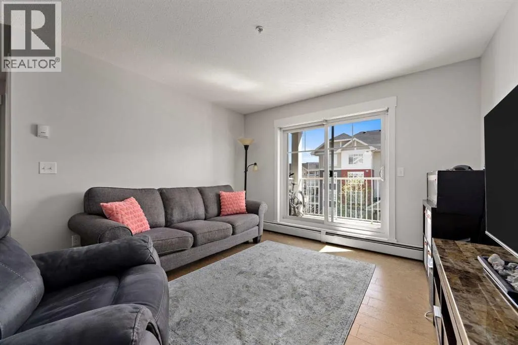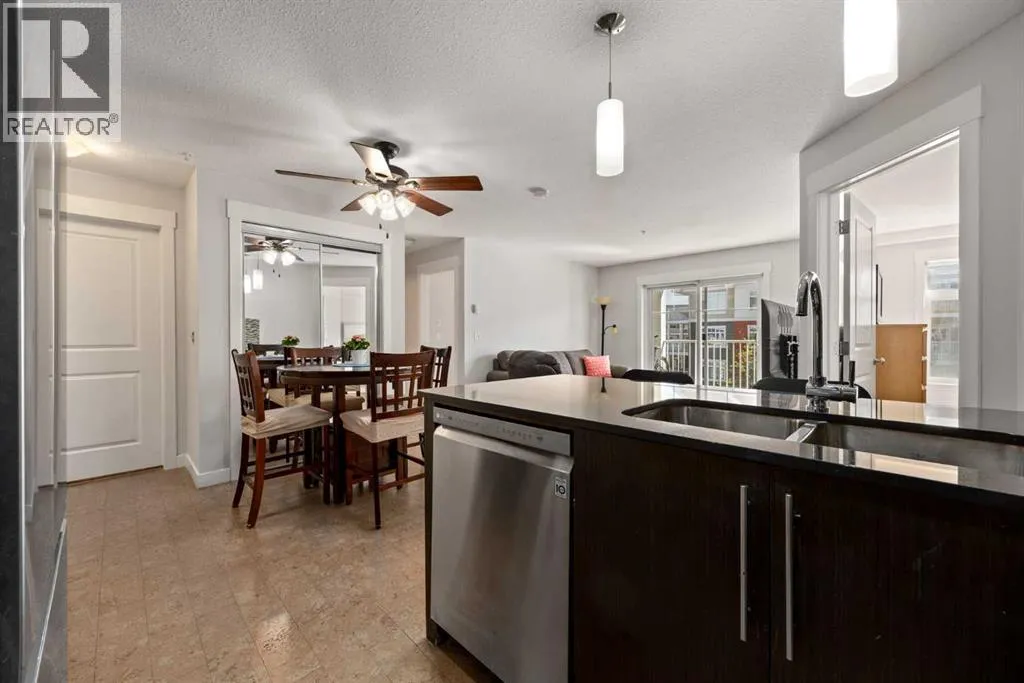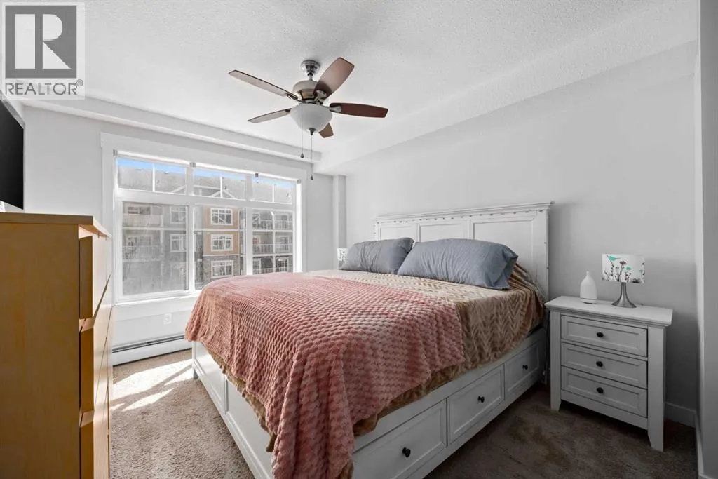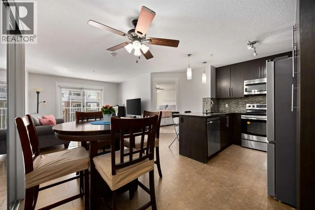 This SOUTH-FACING BALCONY offers a bright, comfortable, and modern living space packed with desirable features. With 2 BEDROOMS & 2 FULL BATHROOMS, thereâs plenty of room to relax, entertain, or work from home. Lovingly maintained by the ORIGINAL OWNER, this unit shows pride of ownership throughout.As you step inside, you'll be greeted by an open-concept layout filled with natural light, thanks to its south orientation. The kitchen features STAINLESS APPLIANCES, while the IN-SUITE LAUNDRY with a stackable washer and dryer adds everyday convenience. You'll also appreciate the large IN-SUITE STORAGE ROOM and an ADDITIONAL STORAGE cage located in front of the TITLED PARKING STALL, offering plenty of space for seasonal items or gear. CEILING FANS in both the primary bedroom and dining/kitchen areas help keep the unit cool and comfortable during warmer months.Parking is a breeze with 1 TITLED UNDERGROUND STALL, plus ample VISITOR PARKING and the option to lease surface parking if needed.Located in the vibrant community of Skyview Ranch, youâll enjoy access to parks, playgrounds, green spaces, and walking and biking paths just steps from your door. For shopping, dining, and entertainment, CrossIron Mills is only a short drive away, offering a wide variety of options.Commuting is convenient with easy access to Stoney Trail and Calgary International Airport, making travel in and out of the city quick and efficient.Donât miss your chance to own this well-appointed condo in a thriving community... A perfect place to call home! (id:27476)