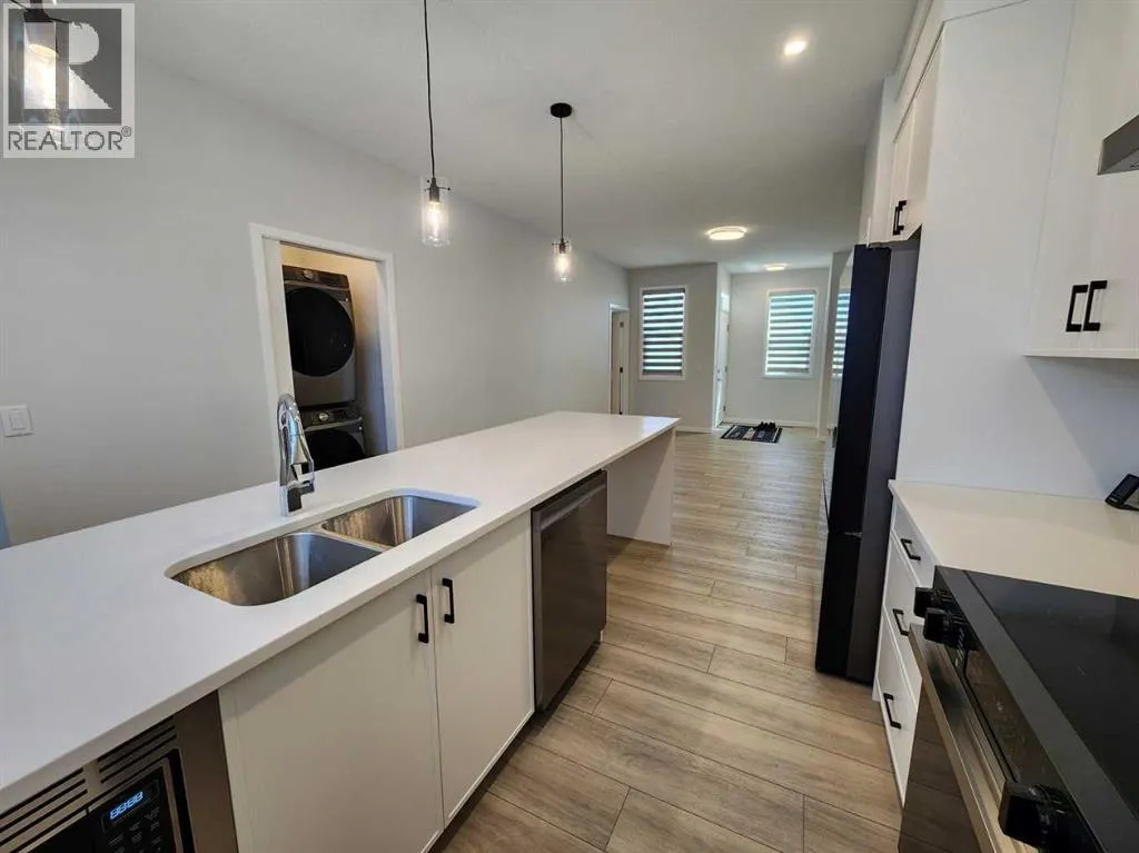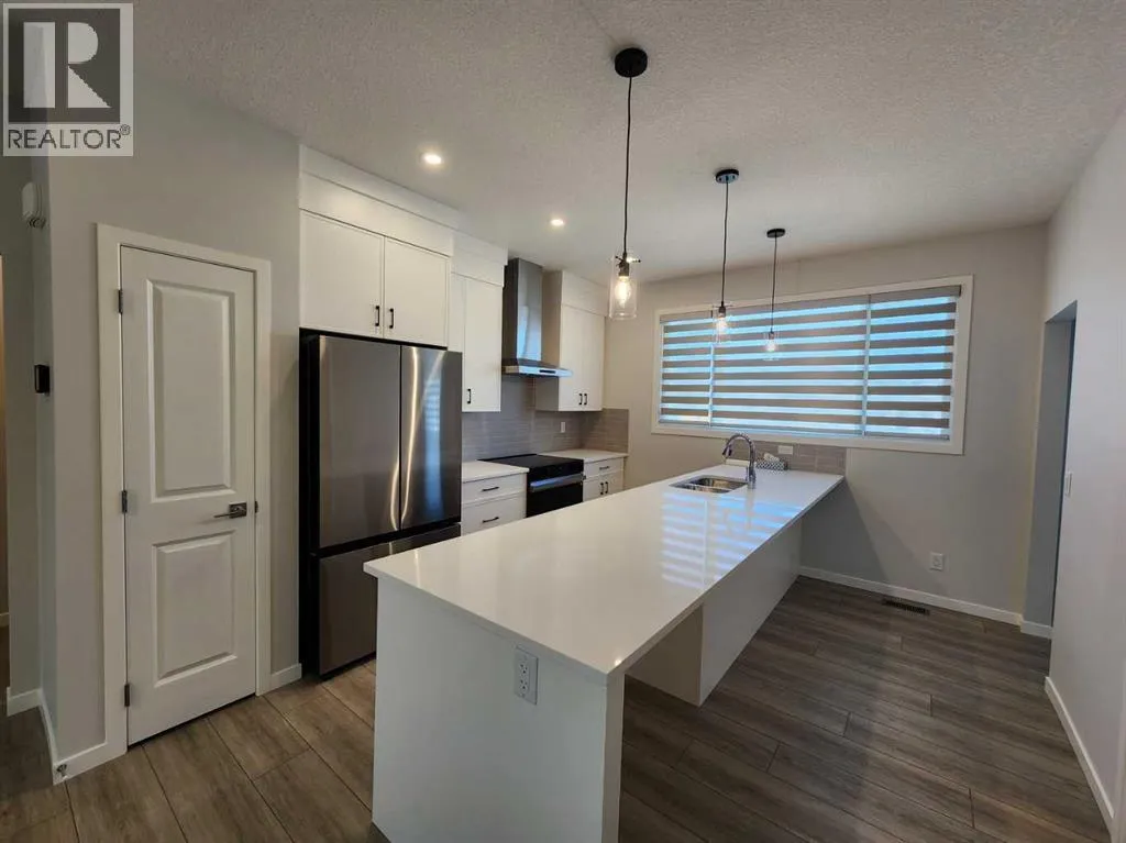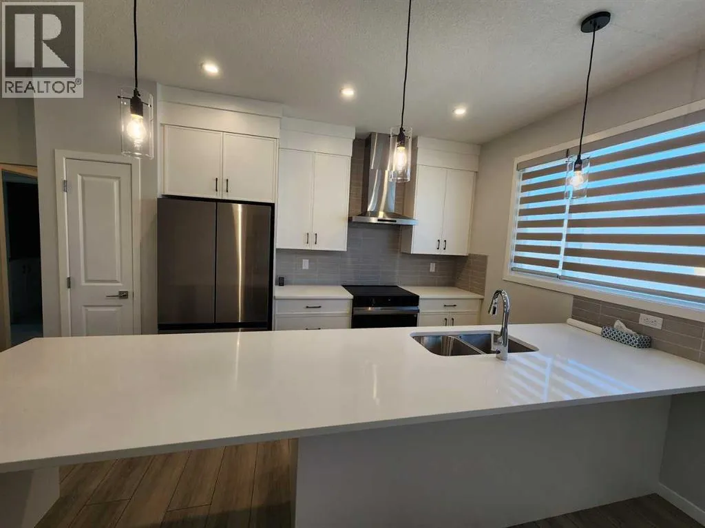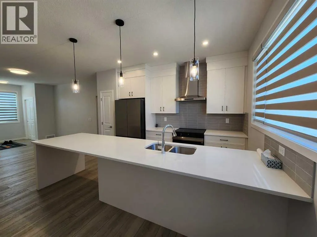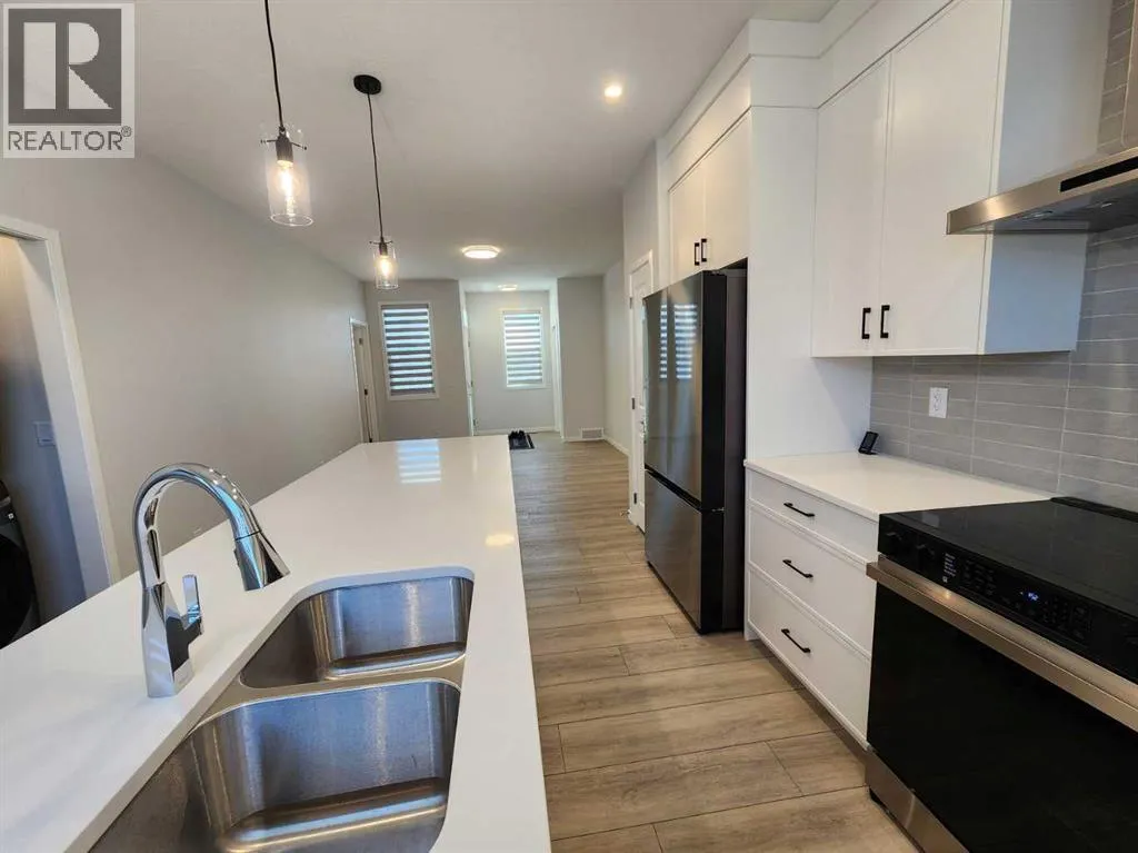 Good starter home or investment property, welcome to this brand new cozy bungalow in popular community of Livingston. It features finished basement with 1705 sqft finished area. (975.4 sqft main floor and 730 sqft basement), side entrance, quartz counter tops in the kitchen and bathrooms, 9 feet ceiling on the main floor, stainless steel appliances, and vinyl flooring in the living room and kitchen area. Main floor with 2 good size bedrooms, master bedroom with 4 pieces ensuite, bright and large living room, spacious kitchen and eating area, and mud room in the back entrance. Fully finished basement with separated side entrance, large family room, 2 large bedrooms, 1 full bathroom, and large storage area. It closes to playground, shopping, restaurants, and easy access to major roads. ** 73 Herron Common NE ** (id:27476)
