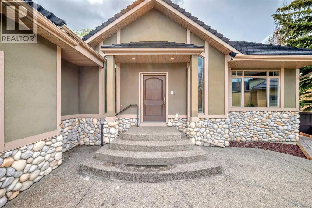 Incredible price for this rare find custom built walkout bungalow in the prestigious community of Aspen Ridge Estate. The house sits on a large pie shape lot of 9,200+sf. A total of 5 bedrooms, 4 full bathrooms & triple garages. 4,215 sf living space offers the luxury, comfort & functionality to meet the needs of modern family living. . The house is environmental friendly & energy efficient. Radiant in-floor heating on main floor & basement. When you walk into the house, you will be astounded by the vaulted cathedral ceilings & picturesque window bringing in bright natural sunlight. Solid Chesapeake hickory floorings throughout the main floor and tiles in kitchen and bathrooms. The functional kitchen is finished with alder cabinets, granite countertops, double ovens, Jenn-air gas cooktop, new stainless steel fridge, and a massive center island. Formal dining room is spacious. It has a built-in buffet & wine rack & can comfortably fit a 10-persons table. From the kitchen nook there is a door leading to a huge balcony. Great for BBQ & enjoying views of the mountains on sunny days. Primary bedroom quietly tucked away in the southeast corner. It also has a door to the balcony. There is air-conditioning, a 5 pc bathroom & a walk-in closet. Around the corner is the 2nd bedroom & a 3 pc bathroom. A set of stairs going up to the 400 sf air-conditioned loft. It is an ideal location for home office. The enormous lower level boasting over 2000sf. It has a family room, theatre/media/game room, wet bar, 3 generous sized bedrooms, 2 full bathrooms & an utility room with lots of storage space. The walkout open to the covered patio seamlessly connecting indoor & the professionally landscaped yard great for relaxation & entertainment. Interlocking pitched roof system with recycled rubber shingles. Numerous upgrades were done to the house in the last few years including: 2 new high efficiency boilers, radon gas mitigation monitoring system; water purifying s ystem, professionally landscaped front and backyard; redone garage floorings & new shelving; painting of exterior walls & trims, resurfacing of the exposed aggregate driveway etc. The home is close to some of Calgary's top rated schools like Webber Academy, Rundle Colleges, Earnest Manning High School & Ambrose University. Convenient shopping & dining at the Aspen Landing, and a few other nearby shopping plaza. Westside Recreation Centre is only 5 minutes drive. Accessible to scenic pathways system, major traffic routes & public transit going to downtown or anyway in the city is easy. (id:27476)