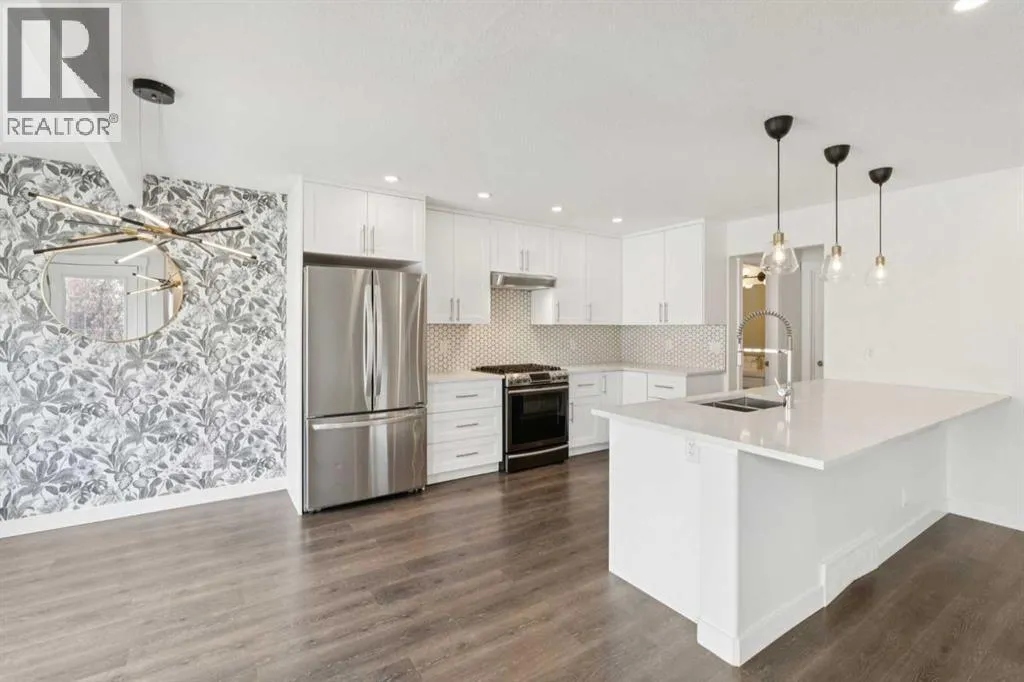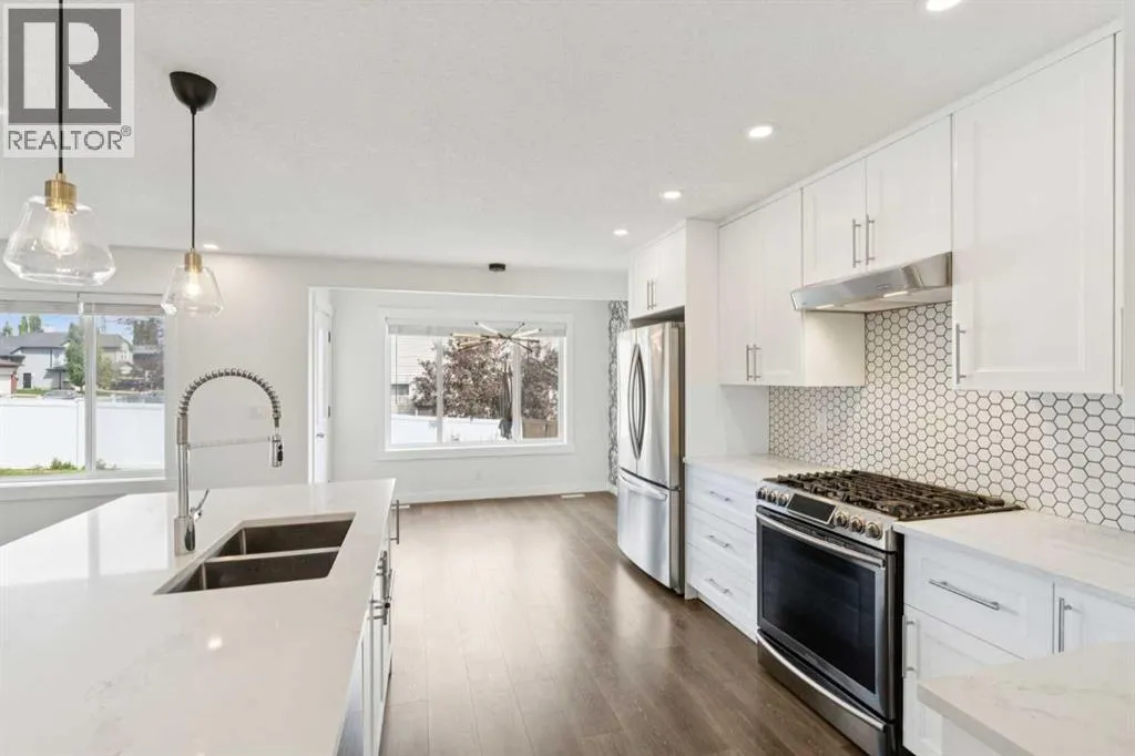 This FULLY RENOVATED and thoughtfully UPGRADED 2-storey home in Citadel has been transformed with contemporary finishes and major improvements, including a NEW FURNACE, HOT WATER TANK, ROOF, and SIDINGâall completed in 2020âas well as CENTRAL AIR CONDITIONING installed in 2023. The entire home has been PROFESSIONALLY CLEANED from top to bottom and boasts FRESH PAINT throughout and WASHED CARPETS. The large windows bring in an abundance of natural light. The main floor features an open-concept layout that includes a mudroom with laundry, a 2-Piece bath, and a beautifully upgraded kitchen with white cabinetry, GRANITE countertops, a stunning ISLAND with PENDANT LIGHTS, and STAINLESS-STEEL appliances. The adjacent dining area and family room open directly onto a furnished concrete PATIO. Upstairs, youâll find 3 generously sized bedrooms, including a spacious primary room with a gorgeous 5-Piece ENSUITE BATH, along with another full bathroom. A large, sunlit BONUS ROOM with a door offers excellent flexibility and can be used as a 4th bedroom. The FULLY FINISHED BASEMENT adds even more living space, featuring a large Family/Recreation Room with a DRY BAR, a bedroom, a full bathroom, and ample storage space. This home also includes a double attached garage, a fully fenced yard with outdoor storage, and a desirable CORNER LOT location directly across from a large playground. This home is also ideally situated for convenience and lifestyle. A bus stop is located right next to the house, and Crowfoot LRT Station is just an 8-minute drive away. Itâs within walking distance to Citadel Park, St. Brigid School, and Citadel Park School, with several other schools just a short drive away. You'll also enjoy quick access to grocery stores, restaurants, parks, playgrounds, scenic walking paths, and major roadways like Stoney Trail. Truly move-in ready, this home presents an exceptional opportunity for comfortable, modern living in one of the cityâs most desirable family-friendly com munities. (id:27476)
