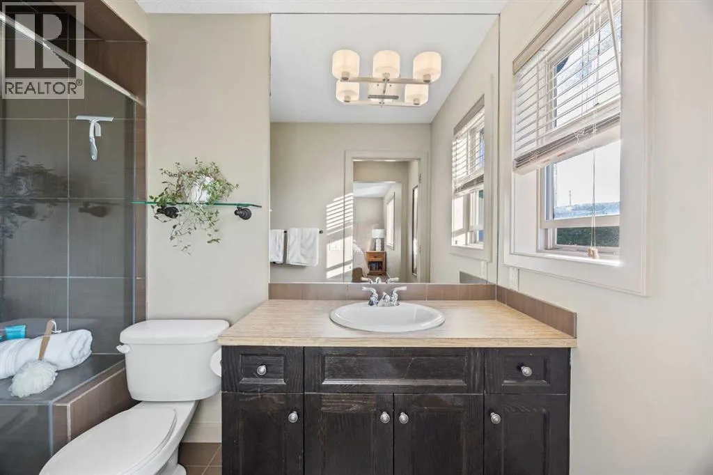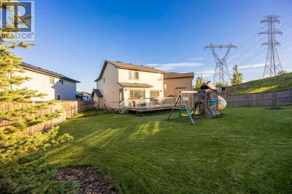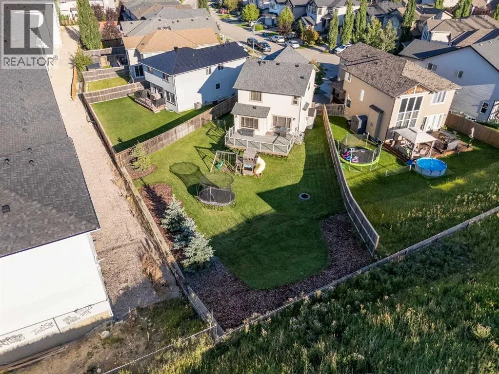 Situated on a massive 9,160 sq. ft. pie-shaped lot, this 4-bedroom, 3.5-bathroom home stands out in Tuscany for its incredible outdoor space, thoughtful layout, and move-in-ready condition. With over 2,700 sq. ft. of developed living, it offers the perfect balance of comfort and convenience.The main floor features hardwood flooring and a bright, open living area. The kitchen is a true centerpiece with granite counters, a large island, pantry, and gas range, while the dining room opens to a composite deck that looks out over the expansive yard. A main floor laundry and powder room complete this level.Upstairs, the spacious primary retreat includes a stunning ensuite with a glass shower and stone flooring. Two additional bedrooms, a full bathroom, and a versatile bonus room provide plenty of family living space.The fully finished lower level adds even more room with a rec/family area, wet bar, large bedroom, and full bath. Fresh paint throughoutâincluding the basement just last weekâmakes the home ready for its next chapter.Additional highlights include a double attached garage and a fenced dog run with direct garage access. The oversized pie-shaped yard offers exceptional space for play, gardening, or future outdoor projectsâan uncommon find in this established community.Located just off 12 Mile Coulee Road for quick highway access and close to the LRT and routes out of the city. (id:27476)