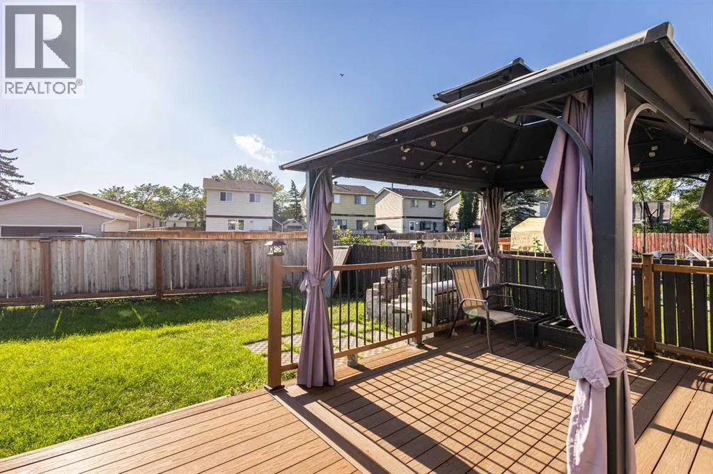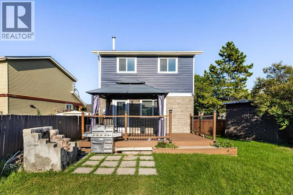 Nestled in a quiet semi cul-de-sac and neighbourhood, 32 Erin Mount Crescent is a charming, detached home with a huge pie shaped lot and lots of updates. New Roof in 2020, New Siding, New Concrete Sidewalks and New vinyl energy efficient windows on the main floor and bedrooms, New 18'17"x11'10" deck with composite deck boards, all installed in 2021. The deck comes with a New hardtop gazebo. New Fence in 2022. Step inside to discover a thoughtfully designed interior, offering about 1660. 61sq.ft of elegant above and below grade space. The main floor boasts a bright open plan with new vinyl energy efficient windows installed in 2021, formal dining area, convenient powder room, and cozy kitchen renovated in 2022 with new stainless-steel appliances and new glossy laminate flooring. Heard upstairs through the shiny glossy laminate stairs, where you will find the master bedroom, closet, and plush carpeting underfoot. There are 2 other good-sized bedrooms, and a 4-piece bathroom renovated in 2023 on this floor. The basement is developed and includes a large family/Recreation room renovated in 2022, with the addition of a wet bar, cabinets, laminate flooring and a feature wall. A very large utility room which serves as laundry room, and extra storage space completes this level. The backyard is one of the selling points of this property with its huge pie shaped lot and back lane double car park for easy access. A 18'17"x11'10" deck with composite deck boards and a hardtop gazebo installed in 2021.This beautiful home is nestled in the great community of Erin Woods with proximity to services such as schools, transit, Hospital, Fire Station, Police, and nearby amenities such as grocery stores, restaurants, Cafes, shopping, and parks. This home has it all. Book your showings today, and do not miss out on this beautiful home. tenant occupied, and they may be home. (id:27476)