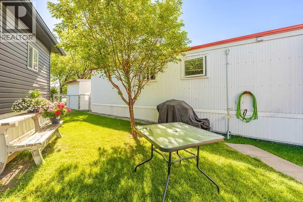 Charming three-bedroom home on a private corner lot in Chateau Estates! Backing onto green space with access to a park and clubhouse, this property offers the perfect mix of comfort, privacy, and convenience. A spacious covered front porch welcomes you home, perfect for entertaining guests or relaxing outdoors. Inside, the bright and inviting floor plan features a sun-filled kitchen with a large south-facing window, creating a warm, cheerful atmosphere for everyday living. The adjoining living room is highlighted by a beautiful bay window and opens to a sunken flex space, ideal for a home office, gym, or additional lounge area. This home includes three bedrooms and a four-piece bathroom, providing plenty of space for family or guests. Additional highlights include central A/C and off-street parking for two vehicles. Residents of Chateau Estates enjoy access to a clubhouse offering a fitness center, sauna, locker rooms, pool, games area, and meeting rooms, enhancing everyday lifestyle convenience. The location is unbeatable, just minutes from shopping, dining, and with easy access to Stoney Trail and Highway 1 for a quick commute anywhere in the city. With reasonable lot fees and a well-managed park, this is an outstanding opportunity to own a home in a welcoming, community-oriented setting. (id:27476)