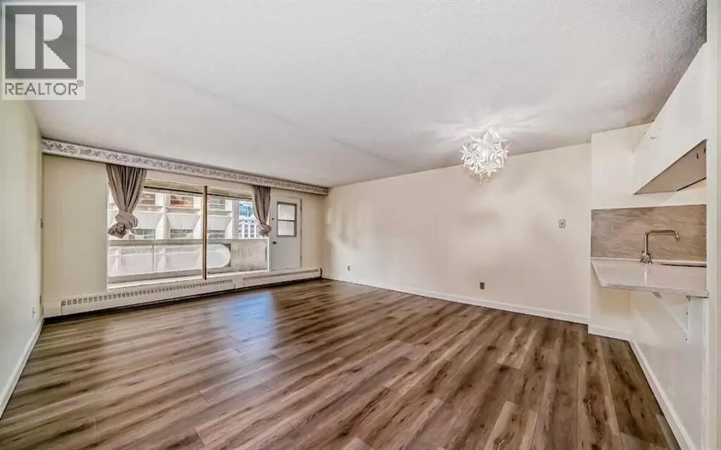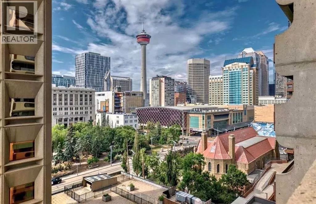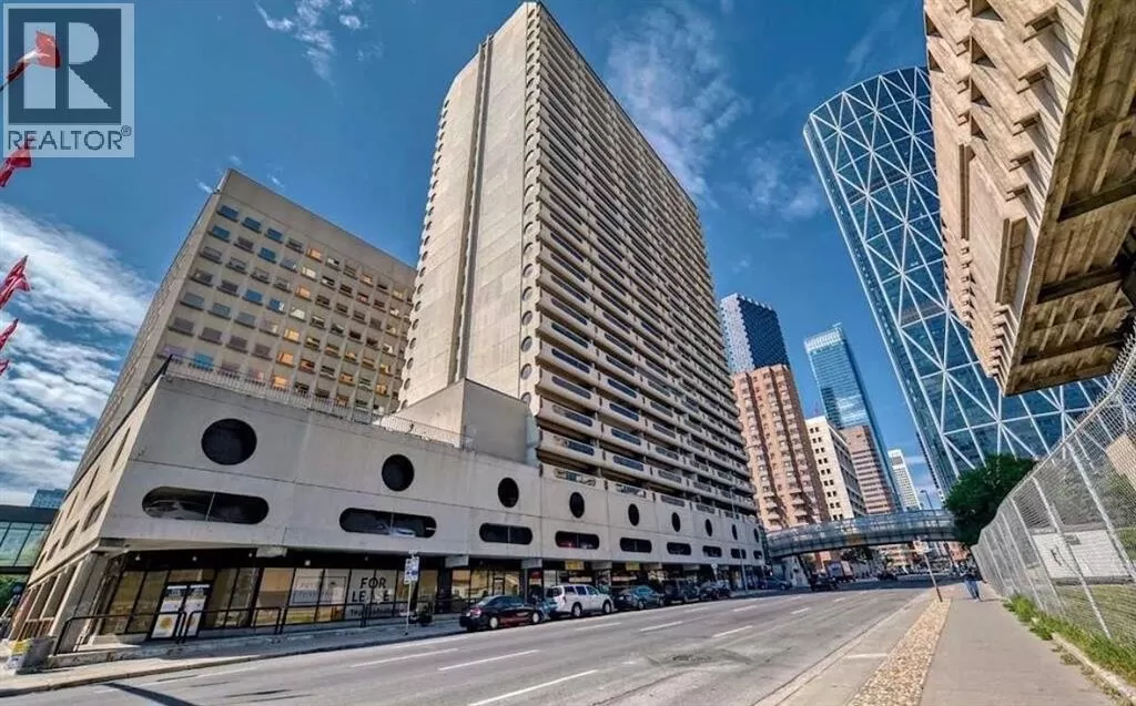 South-Facing Corner Unit in Downtown Calgary, One-bedroom plus den with open floor plan, new laminate floors, fresh paint, and updated kitchen & bath. Bright south exposure with views of Olympic Plaza, Calgary Tower, and the Downtown skyline, while Rocky Mountain Plaza blocks direct summer heat. Spacious bedroom + versatile den for office or guest room. Building amenities include: fitness centre, racquetball court, sauna, and rooftop patios. Prime location in the C-Train free fare zone, steps to shopping, restaurants, Chinatown, Bow Valley College, Central Library, Glenbow Museum, theatres, and Bow River pathways. Includes covered indoor parkingâa rare bonus in downtown for incredible value. (id:27476)