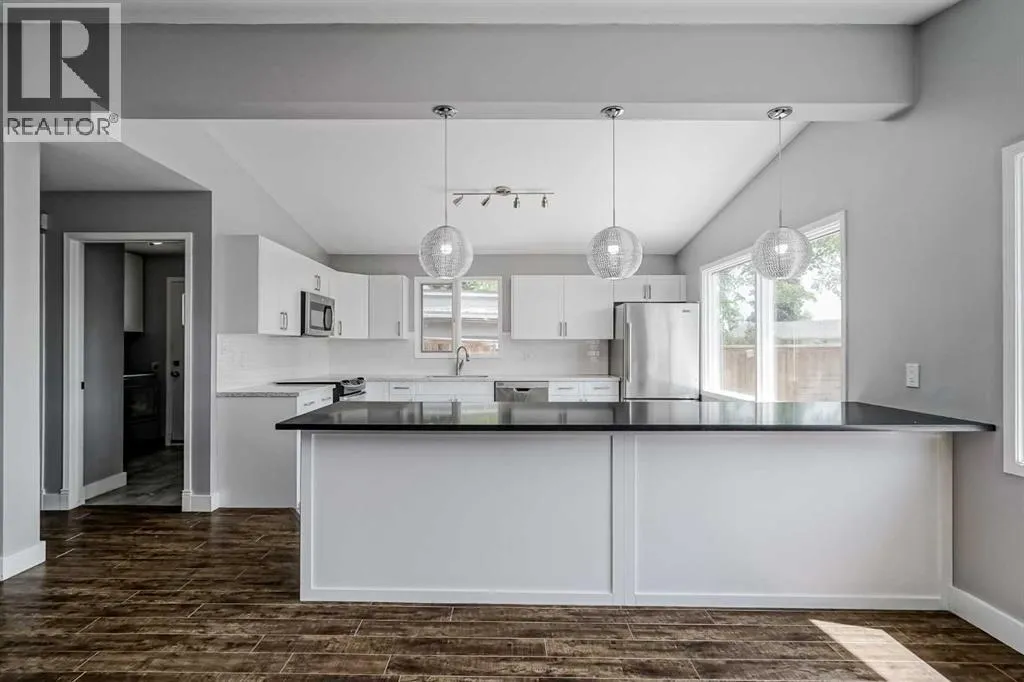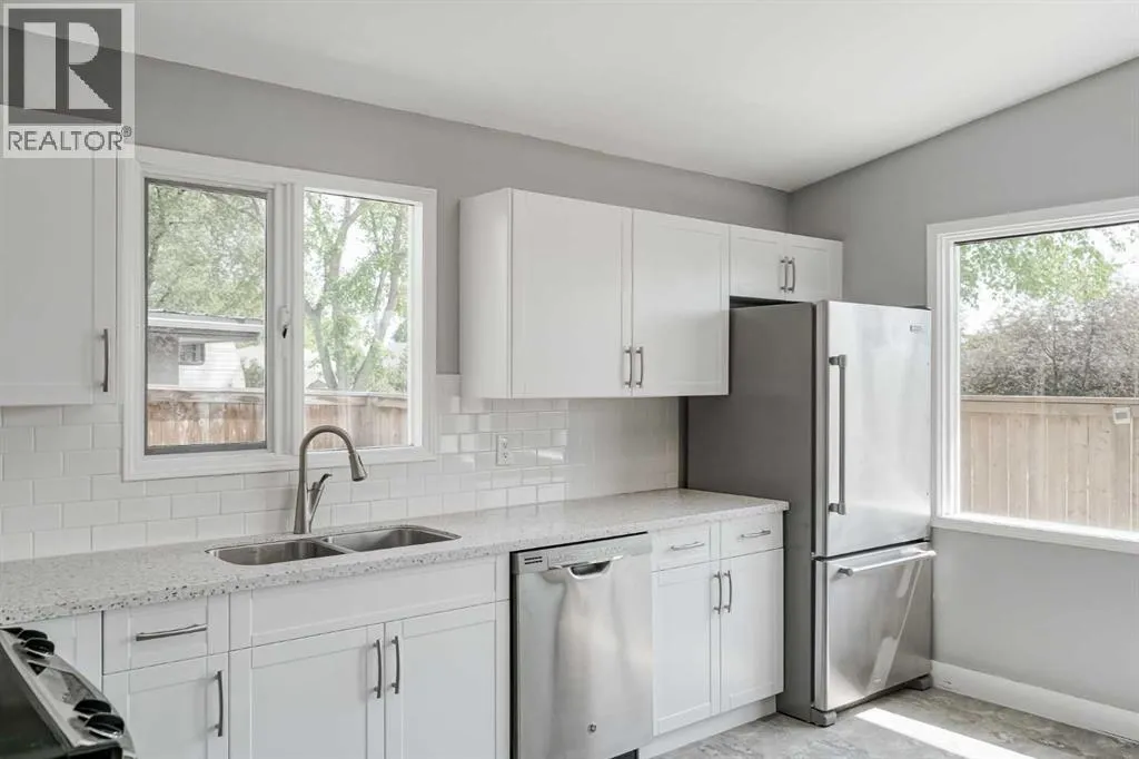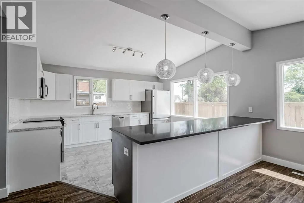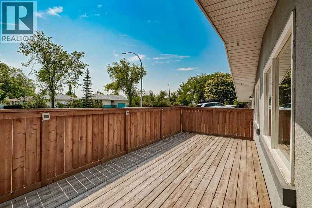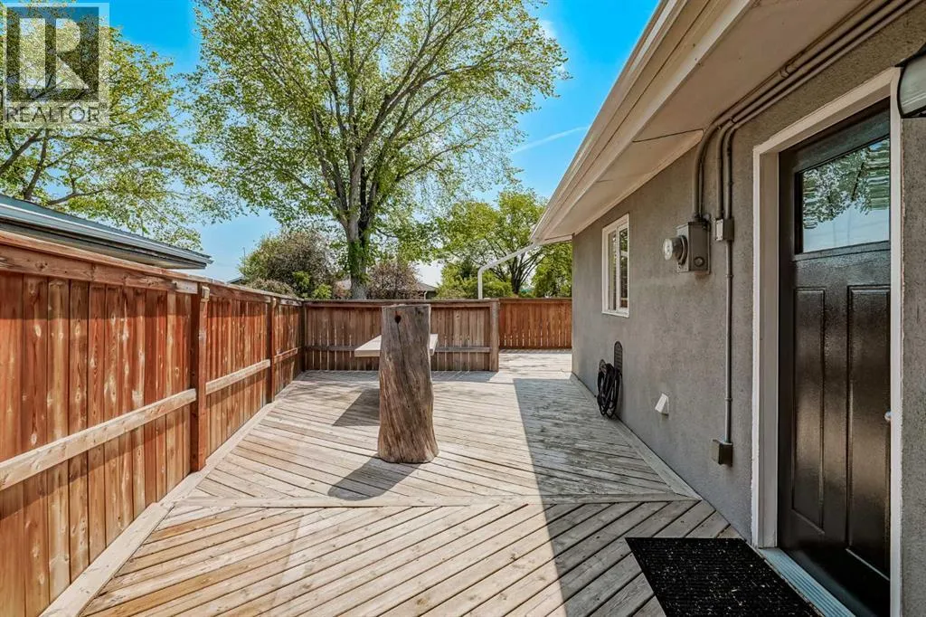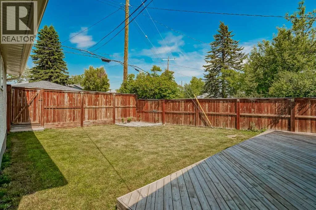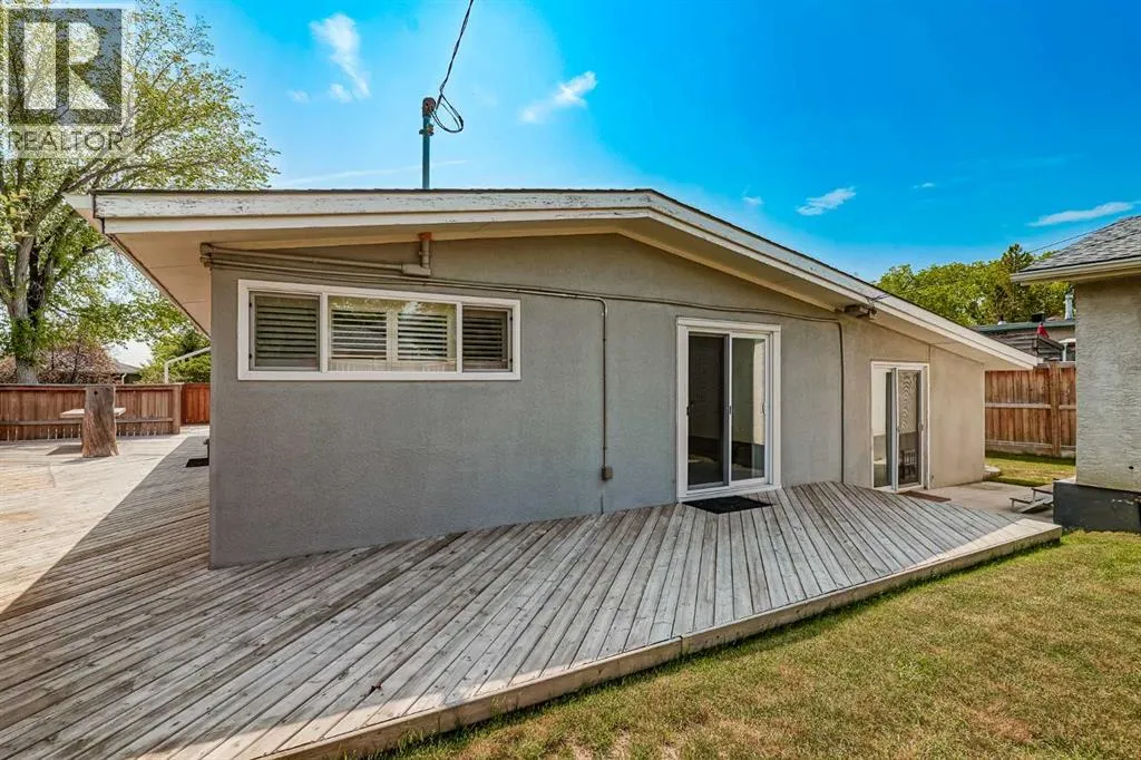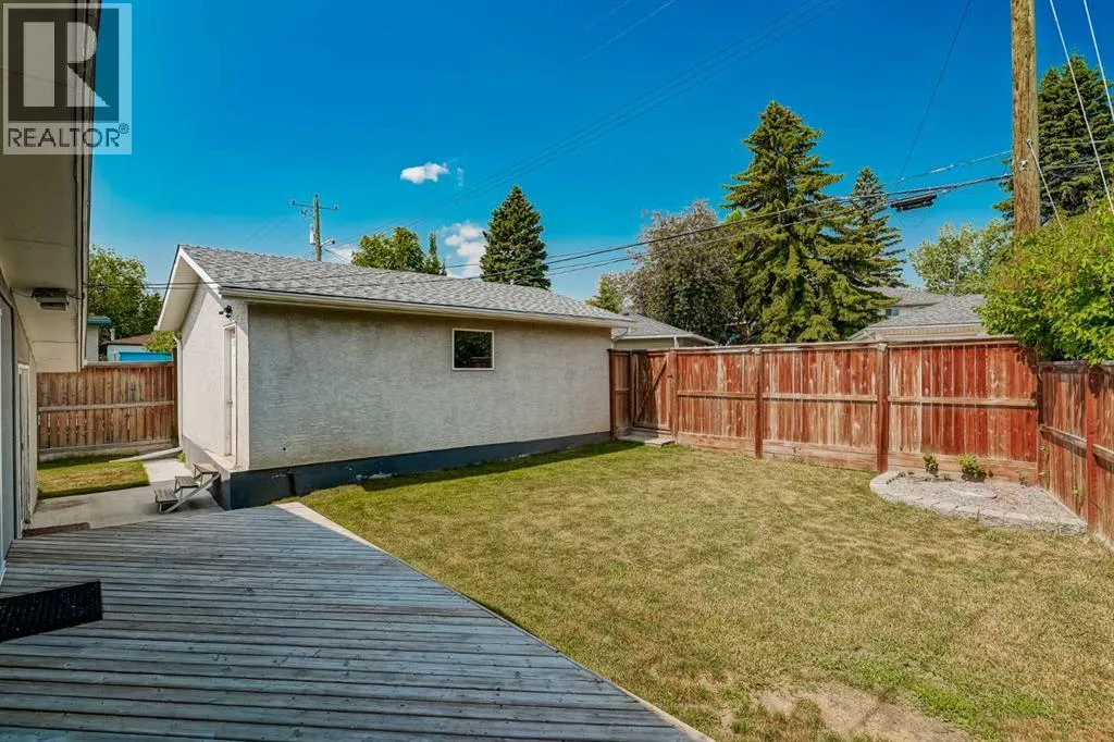 Welcome to this STUNNING BUNGALOW in the inner city community of Thorncliffe. This 2 bedroom, 1 bathroom home has been extensively renovated and updated to offer a one of a kind home in one of Calgary's most sought after communities. Curb appeal welcomes you before even entering the home with a huge front lawn, driveway for additional parking and a massive wrap around deck. Entering the home you are greeted with your sunken living room complete with gas fireplace and gorgeous glass doors leading out to the expansive west facing back yard. Stepping up to the main level, your gleaming engineered hard wood floors and ceramic tile meet seamlessly and adjoin your dining room and fully renovated kitchen. The kitchen features two toned quartz counter tops, stainless steel appliances, tons of cabinetry and drawers and is the perfect place to host dinner parties or for quite nights at home with the family. Down the hall is your large primary bedroom with walk in closet and glass doors leading to your backyard. The second bedroom is also very large and is just adjacent to you fabulously renovated bathroom with floating vanity, quartz counter top, picture mirror and beautiful tile. Your main floor washer and dryer are very convenient and an additional side entrance out to the patio makes for ease of indoor/outdoor living. The back yard is truly a dream with green space along with a huge wrap around deck that surrounds the entire side and front of the home with built in concrete table making for the perfect outdoor entertaining space, just in time for summer. Your large double detached garage finishes off the rear of the home and is perfect for those cold Calgary winters. Thorncliffe has access to great schools, minutes to downtown and Nose Hill Park as well as bus routes and shopping. Do not miss out on this opportunity to own one of the most unique properties in one of Calgary's quaint and convenient inner city communities. (id:27476)