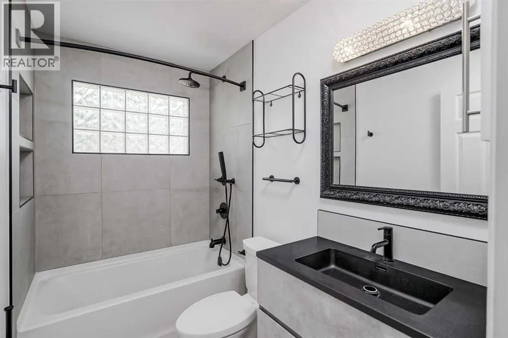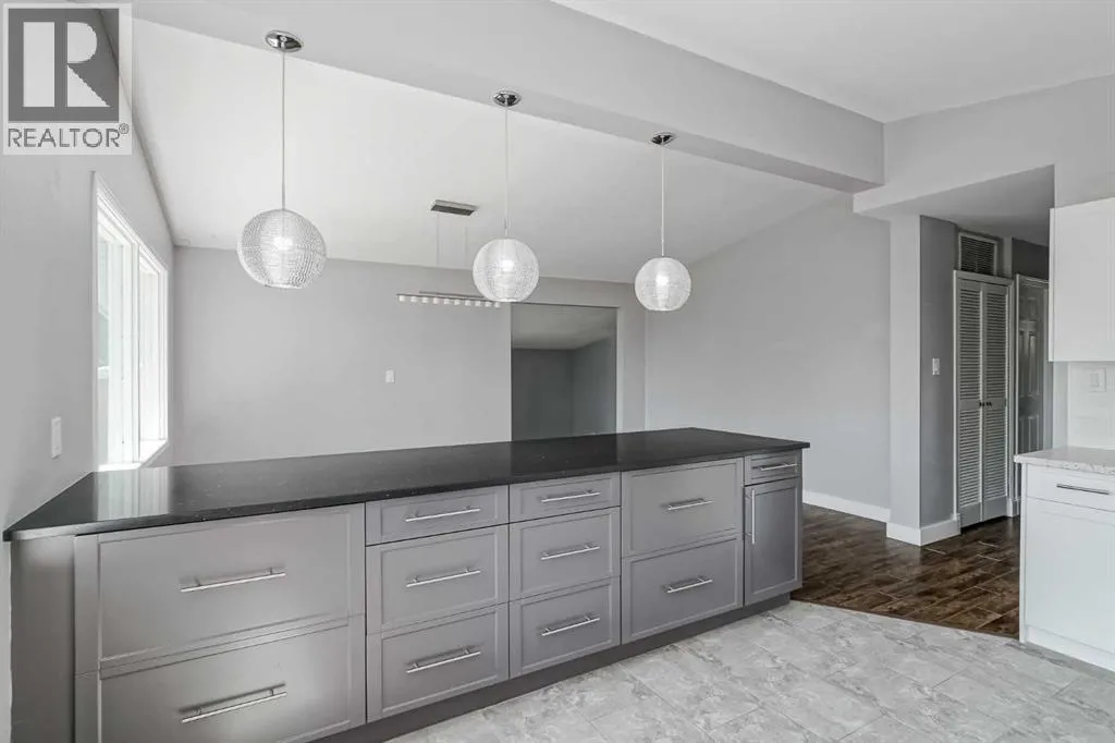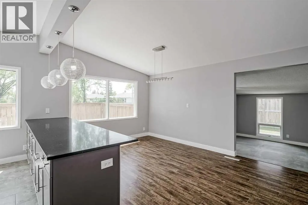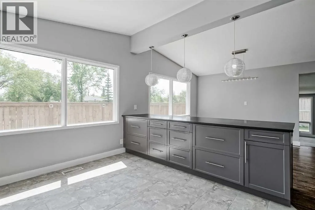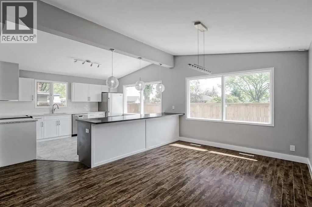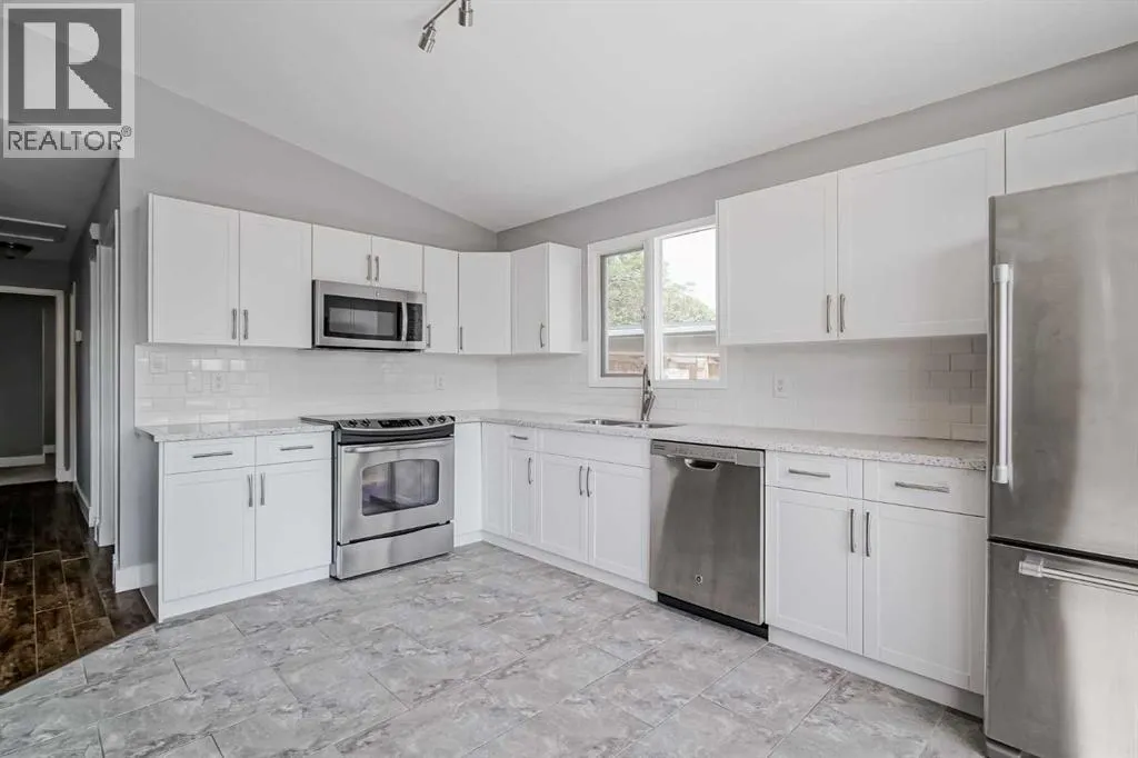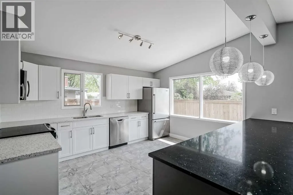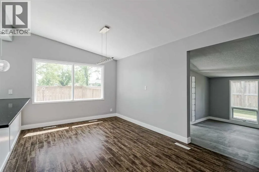 Welcome to this STUNNING BUNGALOW in the inner city community of Thorncliffe. This 2 bedroom, 1 bathroom home has been extensively renovated and updated to offer a one of a kind home in one of Calgary's most sought after communities. Curb appeal welcomes you before even entering the home with a huge front lawn, driveway for additional parking and a massive wrap around deck. Entering the home you are greeted with your sunken living room complete with gas fireplace and gorgeous glass doors leading out to the expansive west facing back yard. Stepping up to the main level, your gleaming engineered hard wood floors and ceramic tile meet seamlessly and adjoin your dining room and fully renovated kitchen. The kitchen features two toned quartz counter tops, stainless steel appliances, tons of cabinetry and drawers and is the perfect place to host dinner parties or for quite nights at home with the family. Down the hall is your large primary bedroom with walk in closet and glass doors leading to your backyard. The second bedroom is also very large and is just adjacent to you fabulously renovated bathroom with floating vanity, quartz counter top, picture mirror and beautiful tile. Your main floor washer and dryer are very convenient and an additional side entrance out to the patio makes for ease of indoor/outdoor living. The back yard is truly a dream with green space along with a huge wrap around deck that surrounds the entire side and front of the home with built in concrete table making for the perfect outdoor entertaining space, just in time for summer. Your large double detached garage finishes off the rear of the home and is perfect for those cold Calgary winters. Thorncliffe has access to great schools, minutes to downtown and Nose Hill Park as well as bus routes and shopping. Do not miss out on this opportunity to own one of the most unique properties in one of Calgary's quaint and convenient inner city communities. (id:27476)
