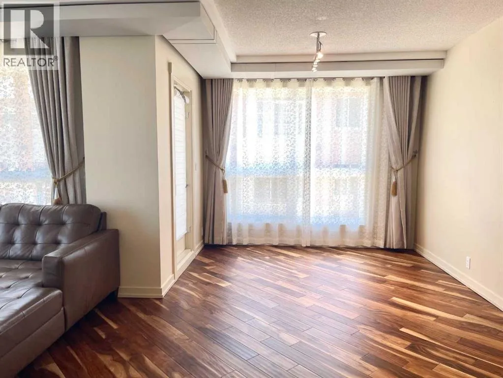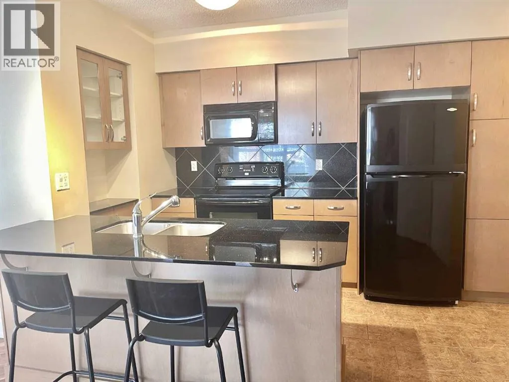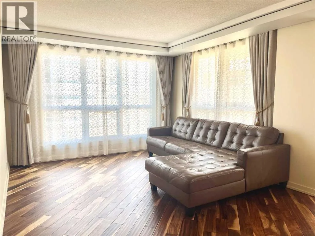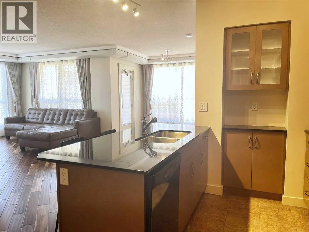 Presenting the largest corner unit in the buildingâan exceptional 2-bedroom, 2-bathroom residence offering 1,038 square feet of thoughtfully designed living space. This upgraded residence features stylish engineered hardwood flooring and an open concept floor plan. A spacious and welcoming foyer with a double closet sets a sophisticated tone upon entry. Expansive windows throughout the unit allow for an abundance of natural light, further enhanced by the addition of elegant, customized double-layer curtains that provide both privacy and light control. The modernized kitchen is outfitted with updated cabinetry and striking black granite countertops, complemented by a suite of matching black appliances. The generous living room offers ample space for comfortable seating arrangements, with an adjacent dining area that opens to a private balcony featuring pleasant views. The primary bedroom includes a well-appointed four-piece ensuite, adding to the home's overall functionality and comfort. Residents will appreciate the buildingâs direct access to essential amenities, including nearby grocery stores and restaurants, all reachable without the need for elevator use. A convenient door one level below provides quick, weather-free access to Save-On-Foods via the 4th-floor parkade. Additional features include on-site security, a dedicated concierge, and ample indoor and guest parking. Situated in a highly desirable location within walking distance of numerous services and conveniences, this professionally upgraded unit with a sought-after layout represents exceptional value in todayâs market. (id:27476)