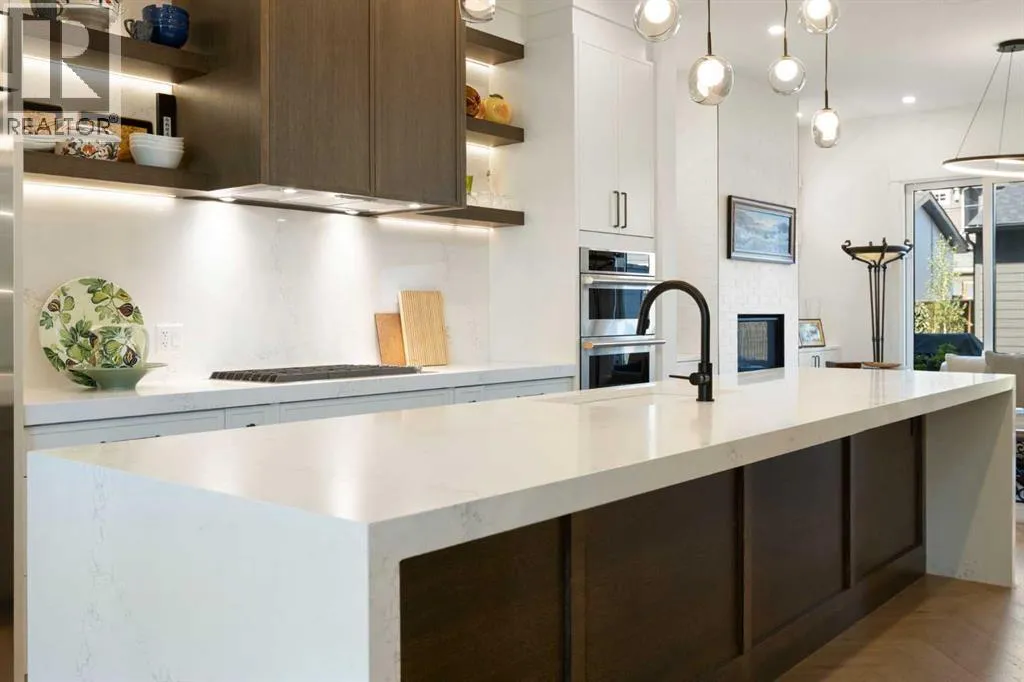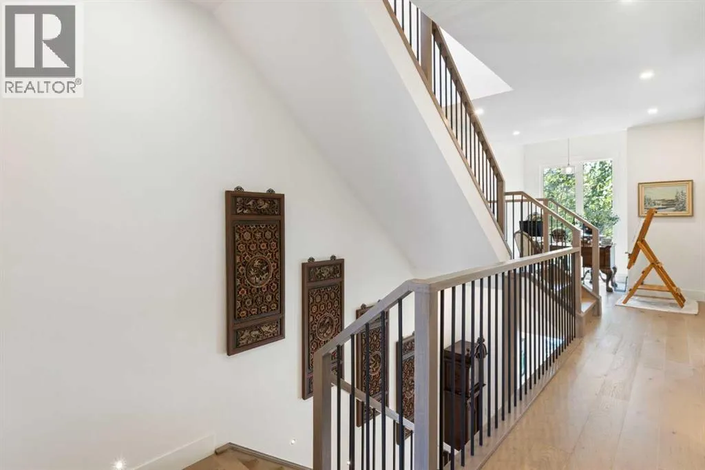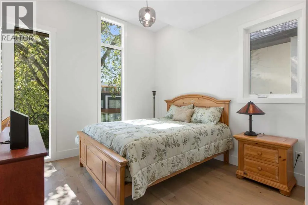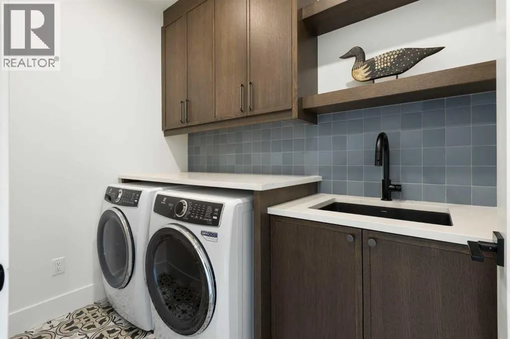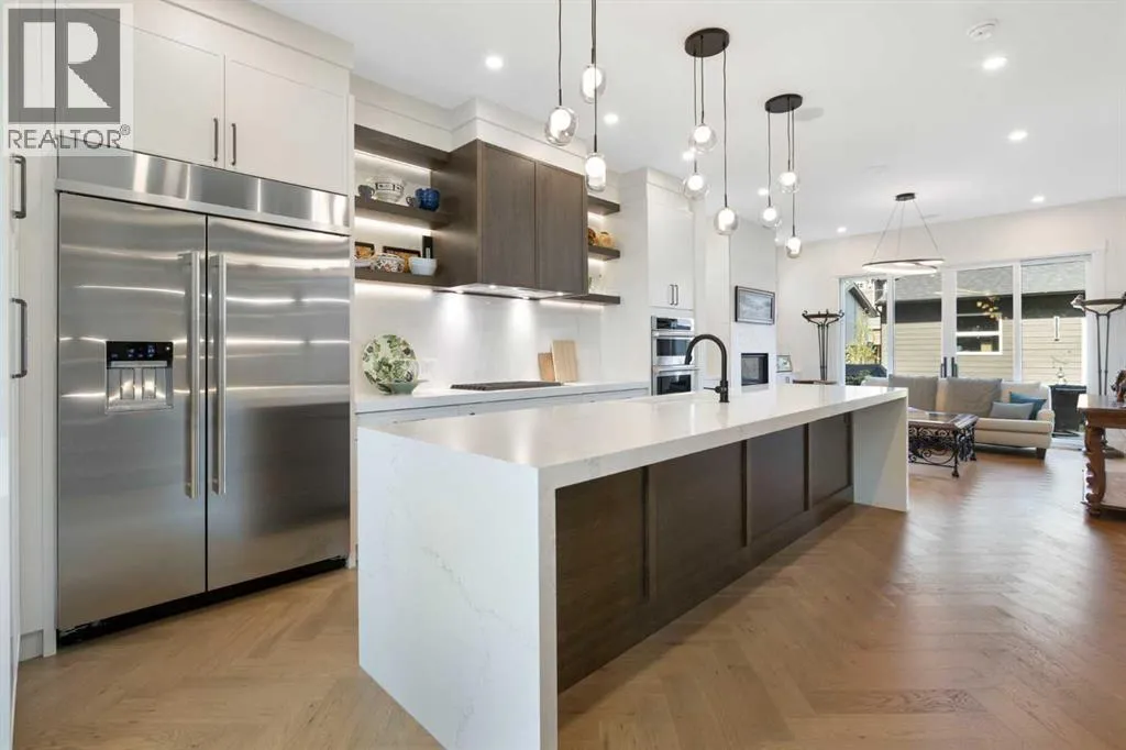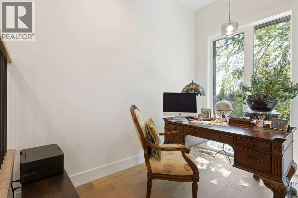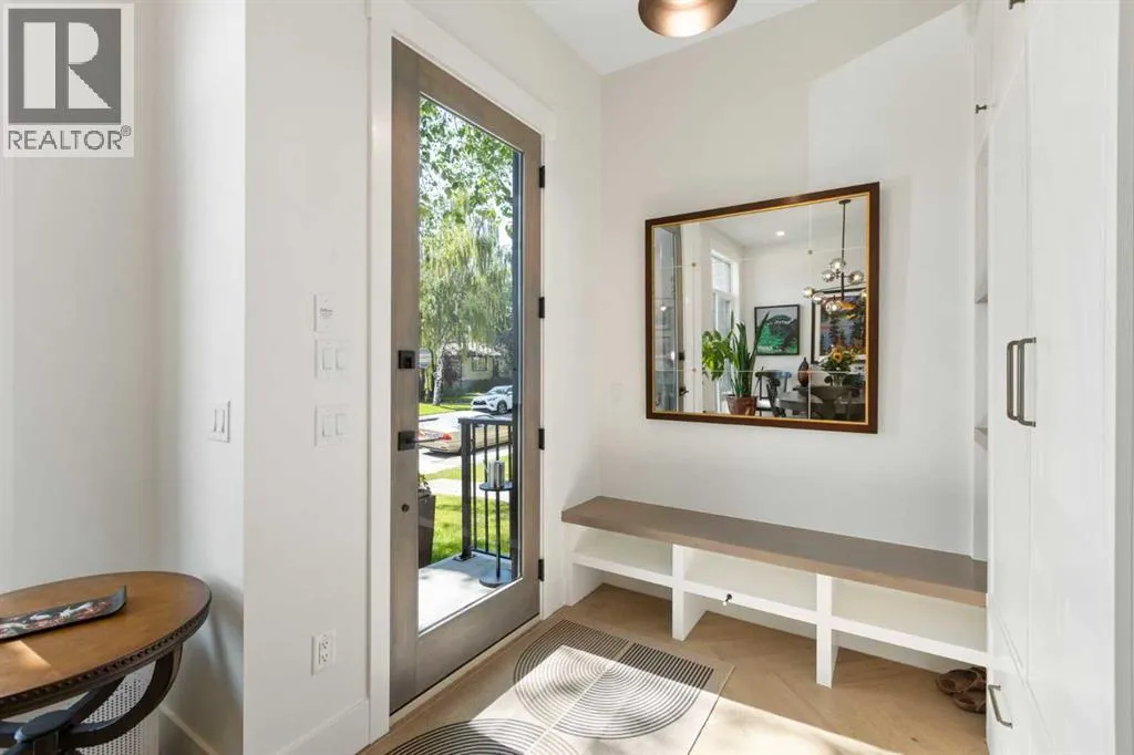 OPEN HOUSE - SAT - SEP 27, 2-4 PM -Tucked into one of Altadoreâs most established tree-lined streets, this modern, four-level residence delivers a rare combination: refined design, spatial flexibility, and thoughtful separation of private and shared spacesâideal for growing families with teens or multigenerational needs. Clean architectural lines, a low-maintenance exterior, and a brick-framed entry hint at the interiorâs elevated material palette and intentional flow. Inside, the main level opens into a bright, linear layout anchored by a sculptural quartz island, ceiling-height custom millwork, and professional-grade appliances, perfect for weekday function or weekend entertaining. Oversized sliding doors connect the interior seamlessly to a private backyard, while warm oak tones and minimalist detailing carry throughout. Up one level, the second floor offers two well-separated bedrooms, a charming open library or study nook, and a fully equipped laundry room with brand new washer and dryer. This layout creates just the right balance of privacy and proximity for teens or visiting family. The third floor is a true architectural momentâa full-floor owner's suite with a private terrace with stunning views, wet bar, and a luxuriously understated ensuite featuring a glass-enclosed steam shower, freestanding tub, radiant in-floor heat, and daylit walk-in closet. The separation from the other bedrooms gives this level a rare sense of retreat. The fully developed lower level includes a fourth bedroom with walk-in closet, a full bath, home gym or office space, and a flexible media room with integrated wet barâideal for movie nights, gaming, or hosting. Additional highlights include roughed in A/C, a finished, insulated double garage, and excellent walkability to River Park, local schools, Marda Loop amenities, transit routes, and off-leash trails. Commuting downtown is a breeze, and weekend escapes west are equally accessible. This is not just another new buildâitâs a ho me that understands family rhythms, honors personal space, and elevates the way you live, gather, and grow. (id:27476)