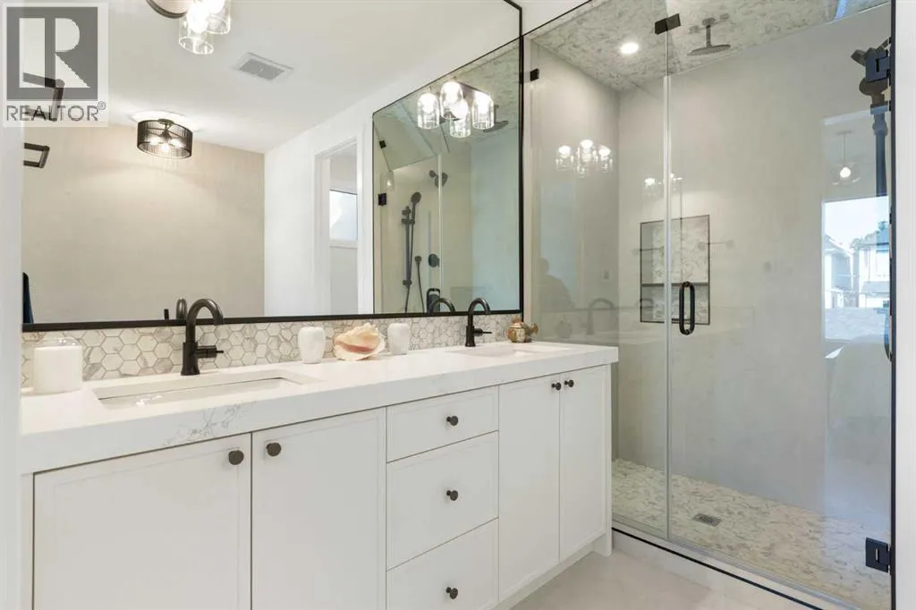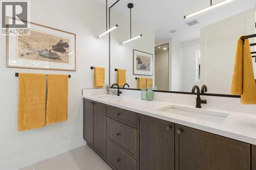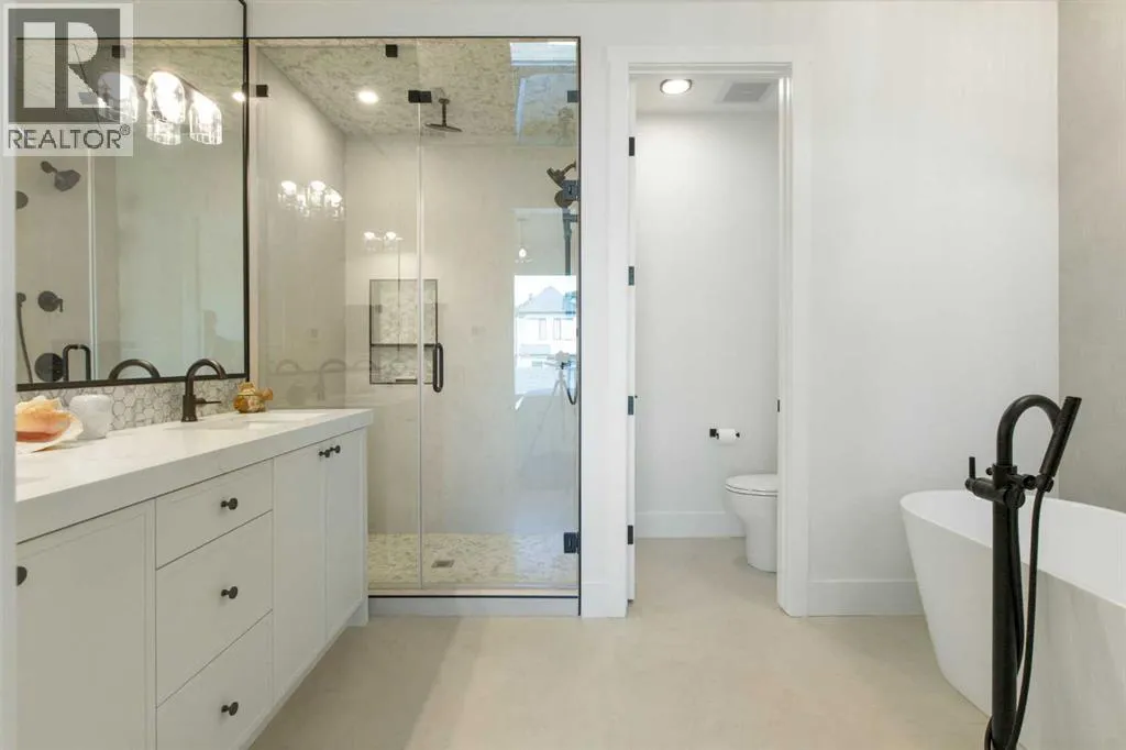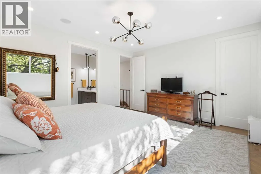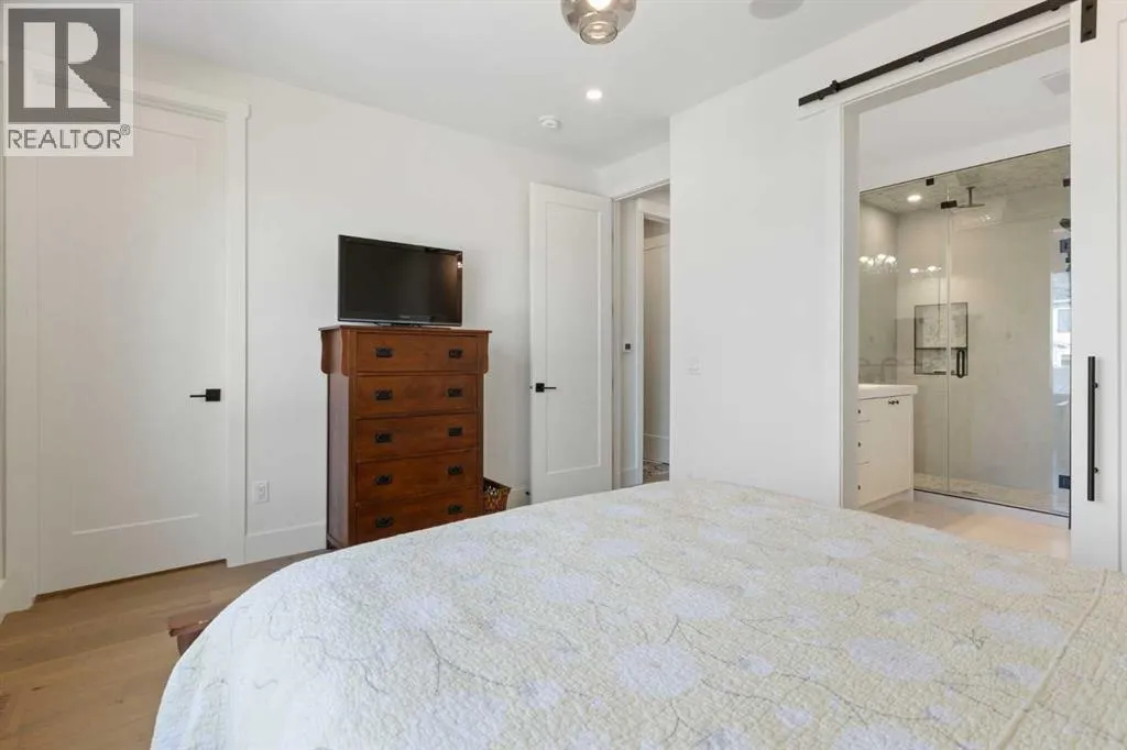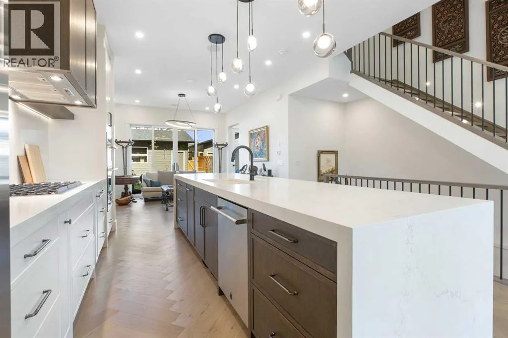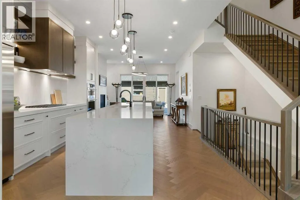 OPEN HOUSE - SAT - SEP 27, 2-4 PM -Tucked into one of Altadoreâs most established tree-lined streets, this modern, four-level residence delivers a rare combination: refined design, spatial flexibility, and thoughtful separation of private and shared spacesâideal for growing families with teens or multigenerational needs. Clean architectural lines, a low-maintenance exterior, and a brick-framed entry hint at the interiorâs elevated material palette and intentional flow. Inside, the main level opens into a bright, linear layout anchored by a sculptural quartz island, ceiling-height custom millwork, and professional-grade appliances, perfect for weekday function or weekend entertaining. Oversized sliding doors connect the interior seamlessly to a private backyard, while warm oak tones and minimalist detailing carry throughout. Up one level, the second floor offers two well-separated bedrooms, a charming open library or study nook, and a fully equipped laundry room with brand new washer and dryer. This layout creates just the right balance of privacy and proximity for teens or visiting family. The third floor is a true architectural momentâa full-floor owner's suite with a private terrace with stunning views, wet bar, and a luxuriously understated ensuite featuring a glass-enclosed steam shower, freestanding tub, radiant in-floor heat, and daylit walk-in closet. The separation from the other bedrooms gives this level a rare sense of retreat. The fully developed lower level includes a fourth bedroom with walk-in closet, a full bath, home gym or office space, and a flexible media room with integrated wet barâideal for movie nights, gaming, or hosting. Additional highlights include roughed in A/C, a finished, insulated double garage, and excellent walkability to River Park, local schools, Marda Loop amenities, transit routes, and off-leash trails. Commuting downtown is a breeze, and weekend escapes west are equally accessible. This is not just another new buildâitâs a ho me that understands family rhythms, honors personal space, and elevates the way you live, gather, and grow. (id:27476)