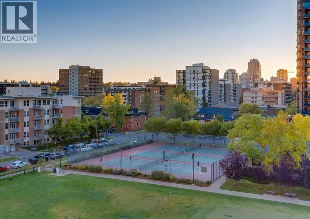 Stylish Urban Condo in Union Square where contemporary design meets an unbeatable location in this executive CONCRETE building. This exceptional one-bedroom plus den condo offers over 830 square feet of well-planned living space in a unique and functional layout. The open-concept layout showcases an inviting kitchen, dining area, and great room that flow seamlessly together, while the spacious primary bedroom with walk-in closet and versatile denâideal as a home office or guest roomâoffer comfort and flexibility. Modern finishes include granite countertops, maple cabinetry, and stainless steel appliances. Additional conveniences include air conditioning, in-suite laundry (machines replaced in 2024), a balcony that expands your living space, a separate storage unit down the hall, and OVERSIZED underground TITLED parking steps from the elevator. The monthly condo fees include gas, water, insurance, window cleaning, heat, bike storage, and more. Located in the heart of Calgaryâs Beltline, youâre just steps from First Street Market, cafes, restaurants, and shops, with Stampede Park, Haultain Park, and the Saddledome all within easy walking distance. Commuting is effortlessâwalk to downtown, gyms, hop on the LRT, or explore nearby pathways and green spaces. Floor plans and a 3D tour are readily available, providing a glimpse into this chic condo! (id:27476)