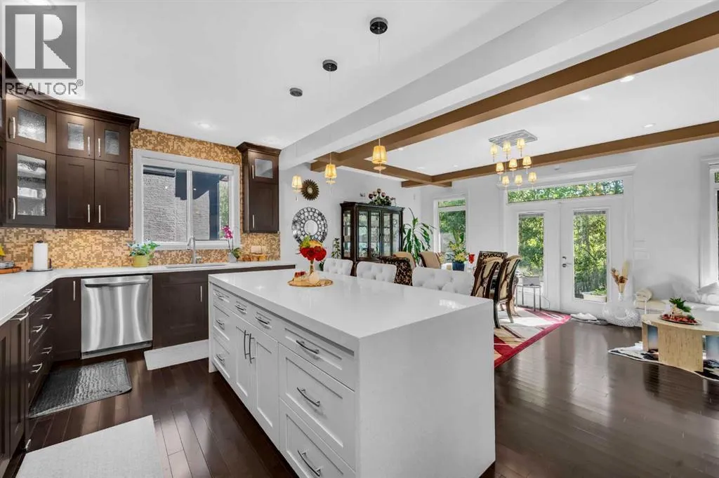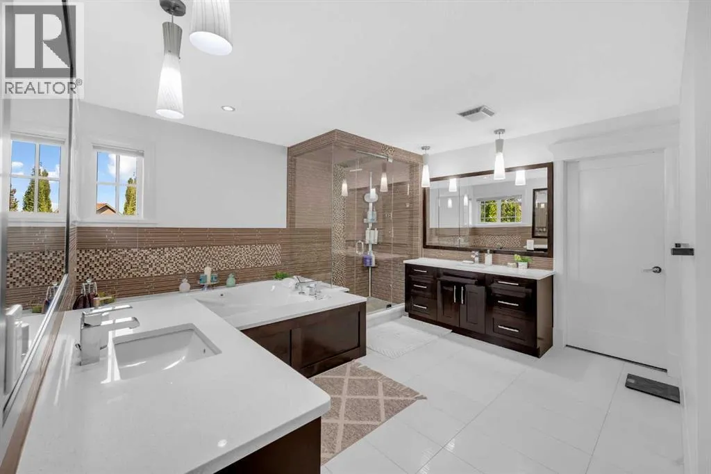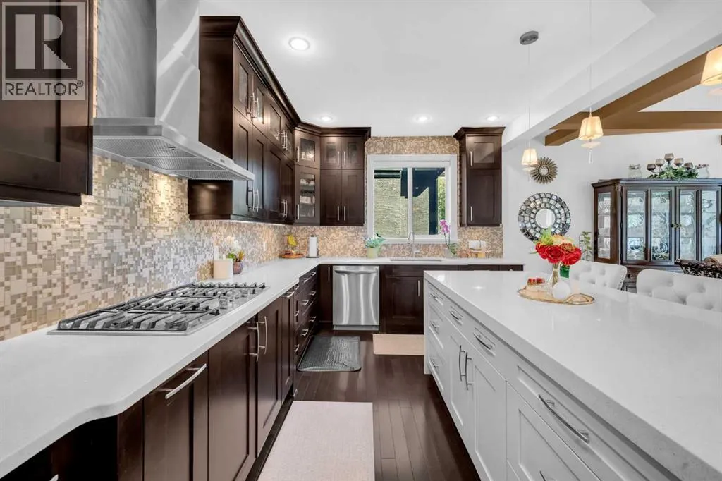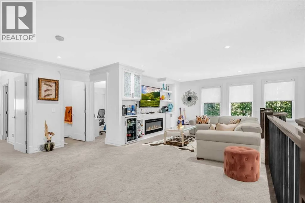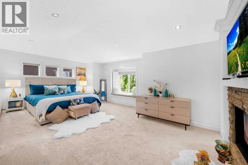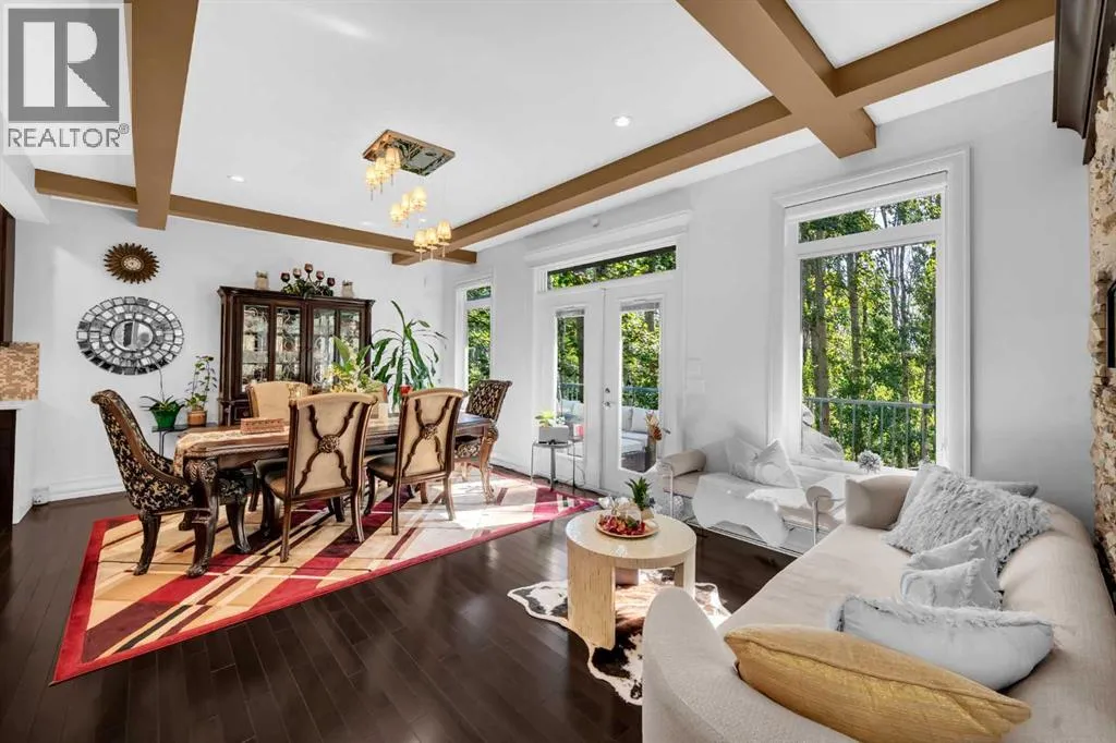 Discover a haven of refined living nestled against a tranquil forest in this former show home, where captivating stone and stucco exterior architecture meets a bespoke wooden trim lined interior that radiates timeless elegance. With over 4900 total square feet throughout this luminous five bedroom, three full bath residence it features an attached triple car garage, two powder rooms, and a main floor defined by soaring 9 foot ceilings, a gracious den, and a majestic 3D gas fireplace. The gourmet kitchen, ensconced beneath a chauffeured ceiling over the dining area offers floor to ceiling cabinetry, built in appliances, a vast pantry, Samsung smart fridge, and colossal island, all crafted for both culinary excellence and effortless entertaining. Upstairs, a sun drenched open-to-below bonus room with an electric fireplace overlooks the living area on the main floor and is accompanied by two bedrooms that share a Jack and Jill style bath with an additional common powder room upstairs. The luxurious master suite serves as an elegant retreat with a cathedral ceiling, pot lights, cozy gas fireplace, and spa-inspired ensuite featuring dual vanities, a two-person air tub, an opulent steam shower, and his and hers walk in closets creating a truly one of a kind space and atmosphere. The walkout lower level beckons as a radiant entertainment sanctuary, offering ample natural light through oversized windows, a near full kitchen including high end Electrolux appliances and combo oven/microwave, two additional bedrooms, and another versatile space ideal for a den or media lounge. Premium amenities within the home encompass central air conditioning, dual furnaces, water filtration system, abundant pot lighting and much much more. The southeast facing backyard flows seamlessly into a private wooded backdrop, crafting an idyllic extension of your indoor sanctuary and presenting the perfect space for any gathering you could have. Just minutes from top tier schools such as William D. Pratt School and Royal Oak School, the YMCA, shopping centers, and grocery stores, this residence delivers an extraordinary fusion of elevated design, sophistication, and effortlessly accessible community luxury that can only be gained by making this home yours. (id:27476)