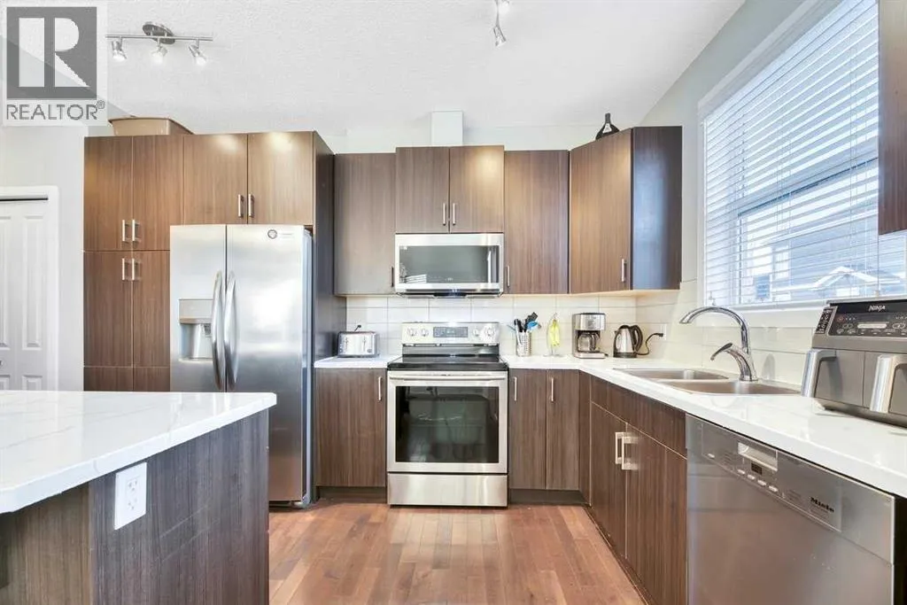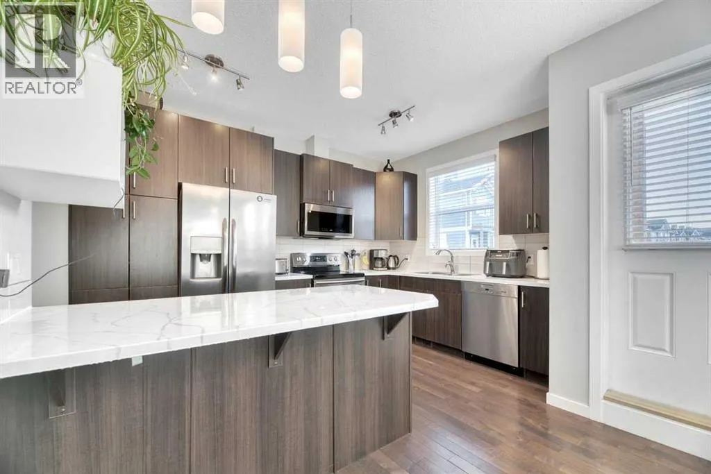 LAKE LIVING at its Finest! A total of 4 BEDROOMS, 2.5 BATHS, ATTACHED 2 CAR GARAGE & over 1,563 sq ft of total living space! Townhouse living offers the space and comfort of a home with the ease of condo maintenance - Ideal for busy professionals or families on the go!This townhouse offers the perfect combination of space, style, and convenience in one of Calgaryâs most sought-after lake communities. With an attached double garage, room for two additional vehicles on the driveway, plus visitor parking, this home makes everyday living easy.On the lower level, youâll find a 4th bedroom which offers versatile space âperfect for an additional bedroom, office, home gym, workspace, or hobby roomâalong with a utility room and direct access from the garage.The main level features an open-concept design filled with natural light from large, bright windows. The modern kitchen boasts a large island with seating, ample cabinetry, and flows seamlessly into the dining and living areasâideal for entertaining, plus a balcony off the kitchen. A convenient half bath completes this level. Upstairs, the primary suite includes a walk-in closet and private 3-piece ensuite. Two additional bedrooms, a 4-piece bathroom, and upstairs laundry provide functionality and comfort for family or guests.Located in the vibrant community of Auburn Bay, youâll enjoy full access to the private lake with year-round amenities: swimming, sandy beaches, fishing, skating, paddleboarding, tennis, and community events. Nearby, youâll also find parks, schools, shopping, restaurants, the South Health Campus, and easy access to major roadways.Donât miss your chance to experience lake community living in a beautiful, move-in ready townhouse! (id:27476)