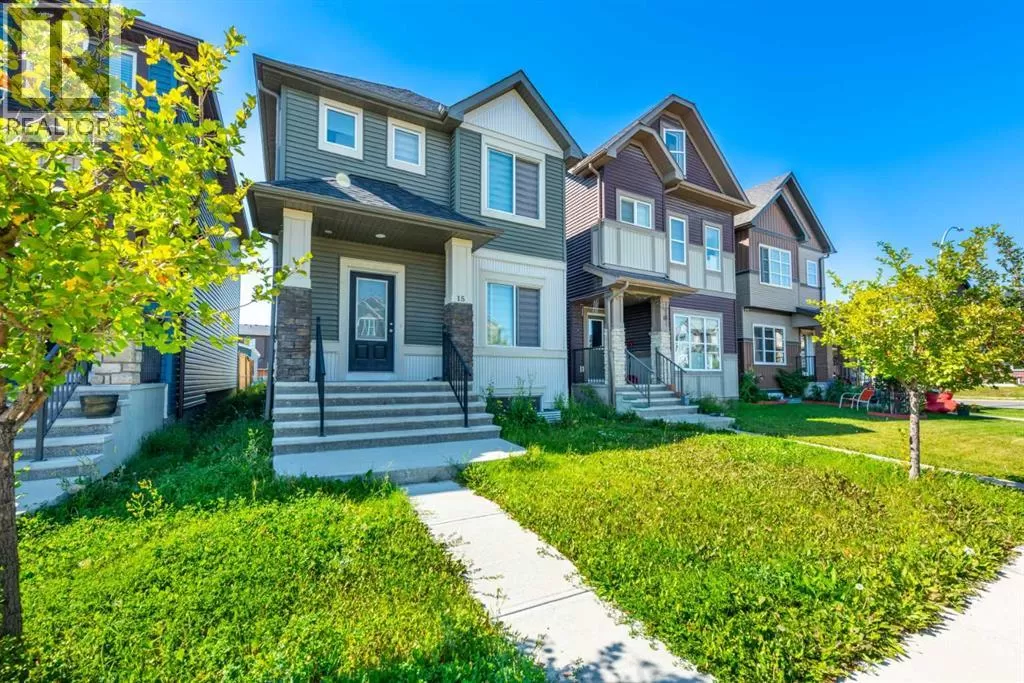 Welcome to 15 Savanna Parade NE â a lovely 2-storey home built by Excel Homes, perfectly designed for first-time buyers, growing families, or investors looking for a solid rental property.Main FloorStep into a bright, welcoming living room filled with natural light. The open-concept design flows through a spacious dining area into a cozy second family room and a well-laid-out kitchen. The kitchen features timeless cabinets, stainless steel appliances, tile backsplash, and a large islandâplenty of room for cooking, hosting, or everyday family meals. A tucked-away powder room keeps things convenient, and the west-facing backyard is just steps away for BBQs or summer evenings.Second FloorThe primary bedroom is your retreat with a walk-in closet and ensuite. Two more generously sized bedrooms and a full bathroom complete the upstairsâideal for kids, guests, or a home office.BasementThe basement is wide open with a large window and bathroom rough-in, ready for your future developmentâwhether thatâs a home gym, media room, or extra living space.Backyard & ParkingEnjoy a private yard with a parking pad and laneway access, offering the perfect spot for a future garage.LocationThis home sits in the heart of Savanna, one of Calgaryâs most desirable NE communities. With quick access to Stoney Trail, Saddletowne C-Train, bus stops, schools, parks, Genesis Centre/YMCA, grocery stores, and the airport, everything your family needs is close at hand.This well-designed property is move-in ready and waiting for you. Call your favorite realtor and book a showing today. (id:27476)