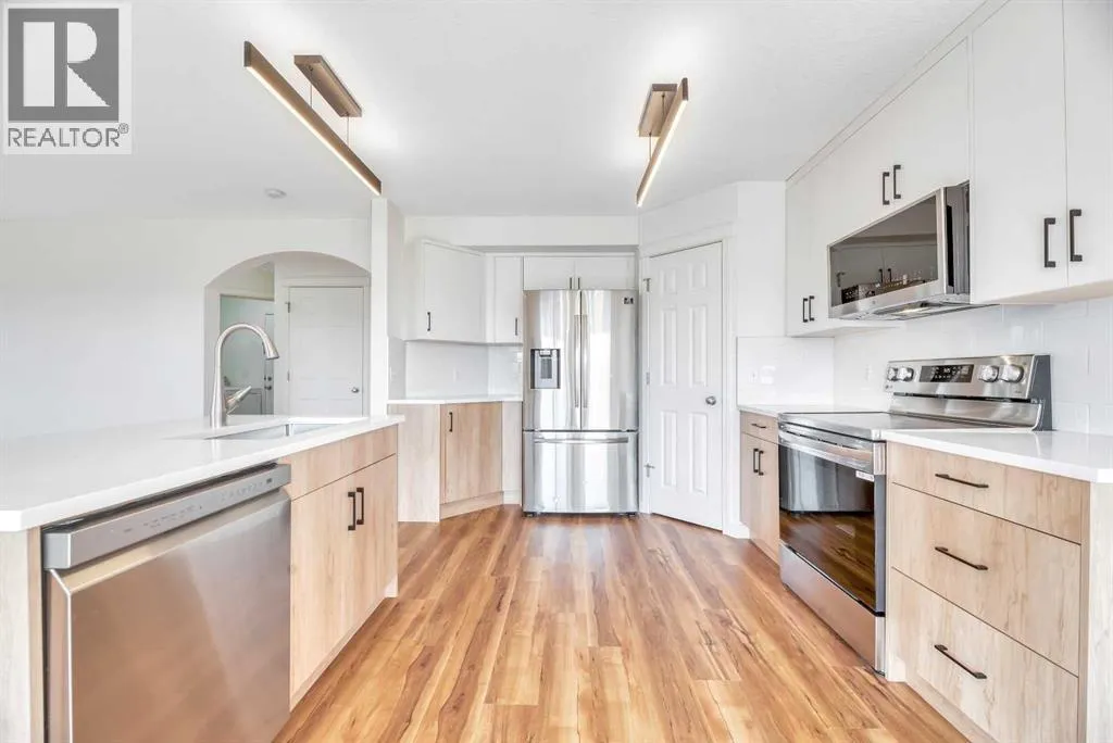 Welcome to 39 Everstone Rise SW, a rare opportunity to own a home in one of Calgaryâs most desirable communities, Evergreen. Here, you get the best of both worlds: the comfort and convenience of an established neighborhood, where schools, shopping, hospitals, parks, and transit are all just minutes away, combined with the look, the feel, and the functionality of a brand-new build.This home has been completely renovated from top to bottom, meaning you donât have to lift a finger, just move right in and start living. From the moment you step inside, youâll notice the bright open layout, brand-new LVP flooring, freshly painted walls, updated lighting throughout, and a spacious kitchen that truly steals the show. With sleek new cabinetry, quartz countertops, and appliances that have never been used, youâll be the very first to enjoy this stunning kitchen.Upstairs, the home continues to impress with a thoughtfully designed layout that separates a large family room, perfect for cozy movie nights, from three generously sized bedrooms, including a private primary suite. The master bedroom is a true retreat, with oversized windows that flood the space with natural light and offer views of the foothills. Paired with a walk-in closet and a stylish ensuite, itâs everything a modern homeowner could ask for.What makes this property truly stand out is its rare pie-shaped lot. Unlike the smaller lots found in most new builds today, this home offers a backyard with space to breathe, play, and entertain. The landscaping is already in place, the fencing and deck are ready to go, and the outdoor living here feels just as inviting as the inside.Homes like this, fully renovated, move-in ready, perfectly located, and sitting on a lot this size donât come to market often in Evergreen. This is your chance to own a property that combines timeless value with modern upgrades, all at a price that makes sense. Book your private showing today and see for yourself why this home is the perf ect fit for your family. (id:27476)