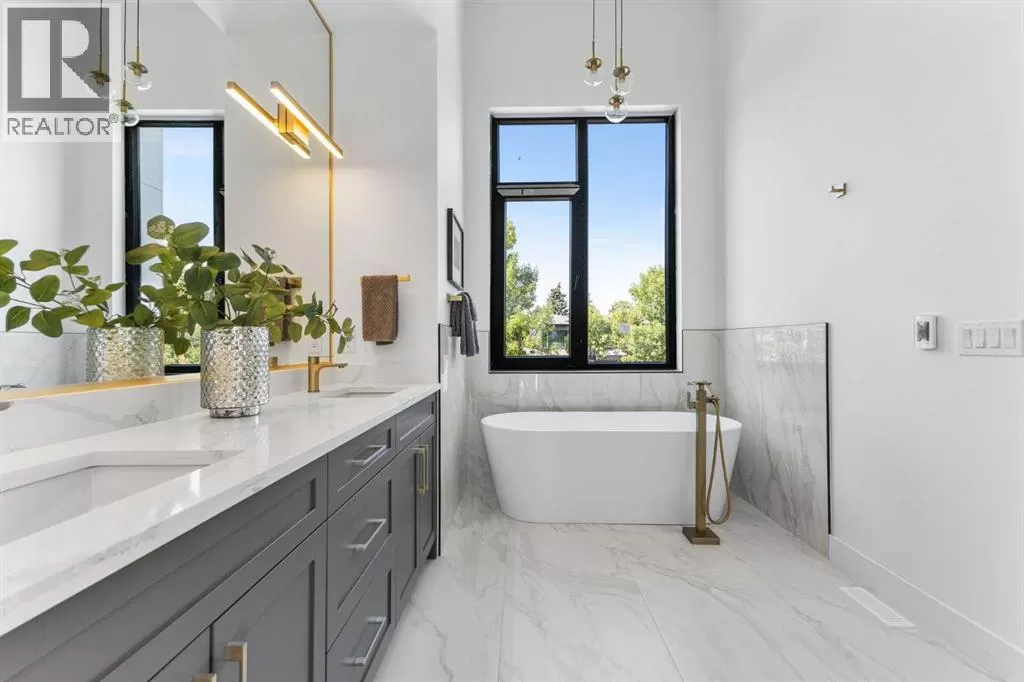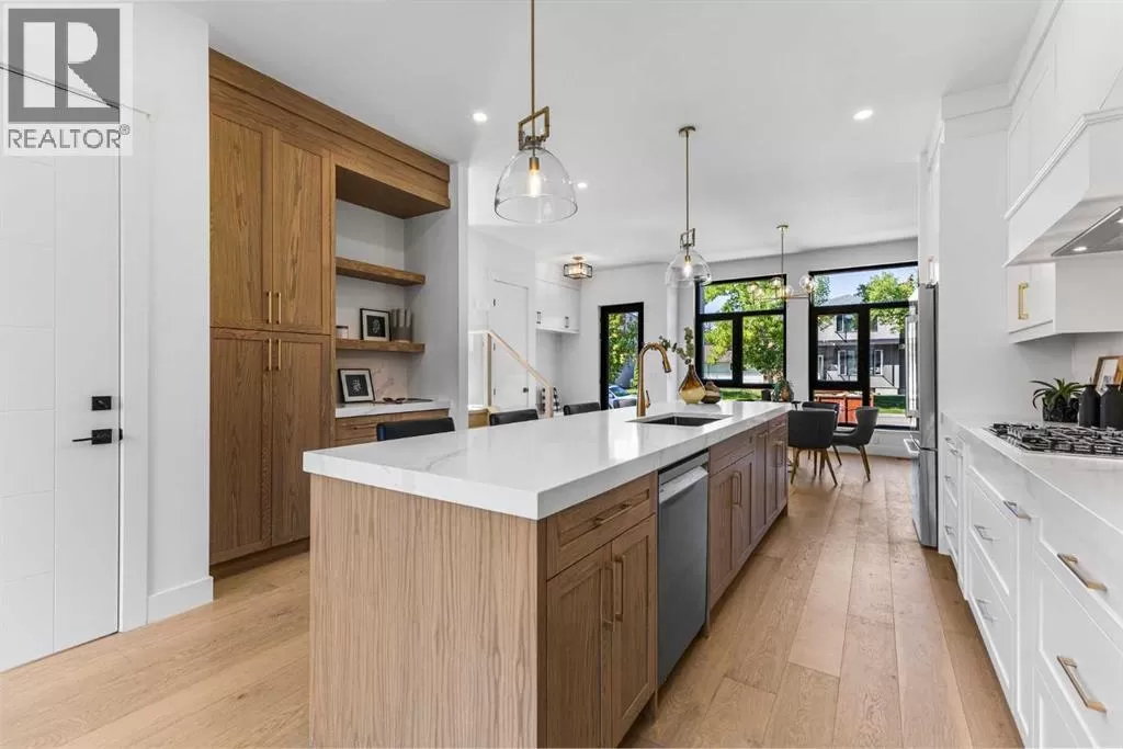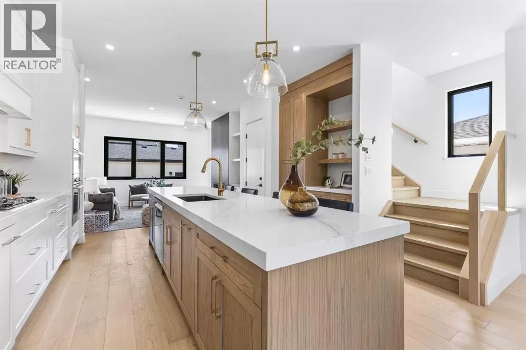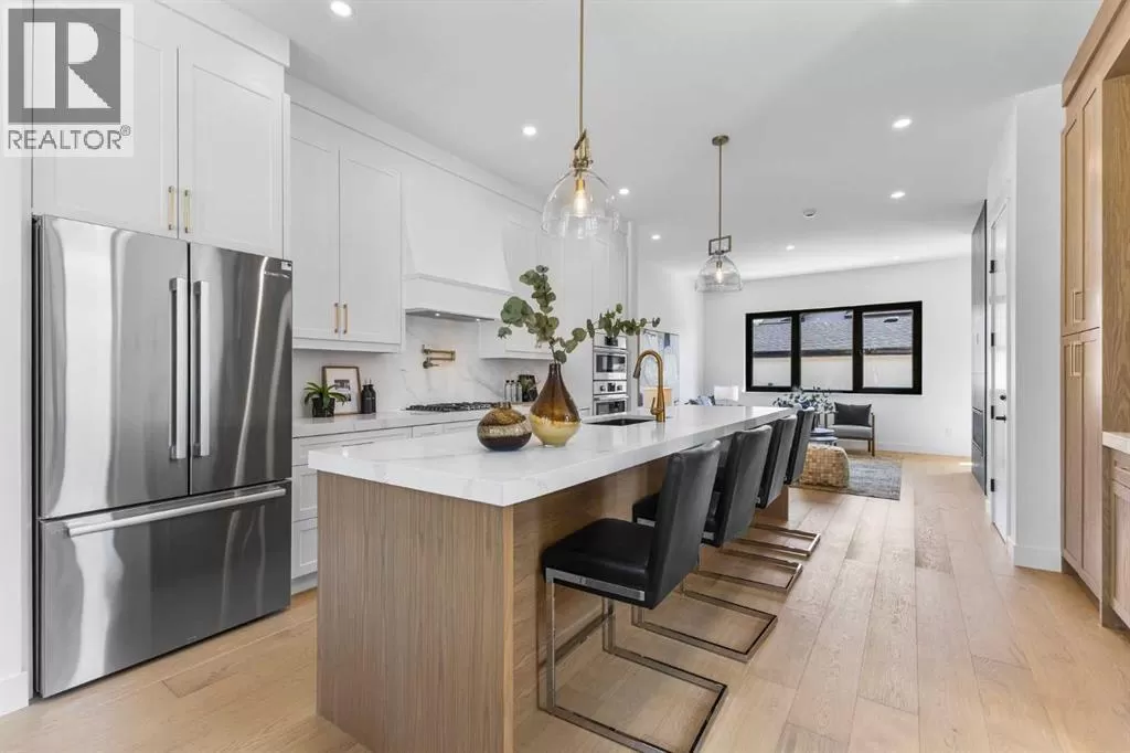 Welcome to your future luxurious semi-detached infill in the desirable community of Glenbrook. This home features a fantastic mortgage helper with a legal 2-bedroom basement suite, providing 847 square feet of private living space, with a separate entrance. You can enjoy the expansive 1,954 square feet of upper living space, which includes 3 bedrooms and 2.5 bathrooms, while renting out the legal basement suite. Glenbrook is the perfect neighborhood for young professionals and families, offering convenient access to shopping, dining, public transit, and excellent schools and parks. This home is designed for modern living with open-concept spaces, high ceilings, elegant lighting and plumbing fixtures, large windows, and an abundance of natural light.Upon entering the home, you'll be greeted by a spacious foyer with a built-in bench for convenient storage. The kitchen is a chefâs dream, featuring a stunning hood fan, ceiling-height cabinetry, a massive quartz island with ample seating, and high-end stainless-steel appliances. The living room boasts large windows, allowing natural light to flood the space, and a cozy fireplace for added warmth. Thoughtful touches like custom cabinetry and shelving provide ample storage while giving you the flexibility to personalize the space.Upstairs, the primary bedroom offers a walk-in closet with built-in shelving/hanging, while the luxurious ensuite features heated floors, a freestanding soaker tub, and a fully tiled shower with glass doors. This floor also includes a dedicated laundry room and two generously sized additional bedrooms with a beautifully appointed 4-piece bathroom.The legal basement suite has its own private entrance from the side of the house, offering two spacious bedrooms, a 4-piece bathroom, and a well-appointed kitchen with ceiling-height cabinets, quartz countertops, a built-in pantry, dual undermount sink, and stainless-steel appliances, including a fridge, electric range, and dishwasher. The basement al so features a spacious living/dining area and in-suite laundry.Donât let this incredible opportunity pass you byâthis home has everything you need and more! Book a showing with your favourite realtor today! (id:27476)