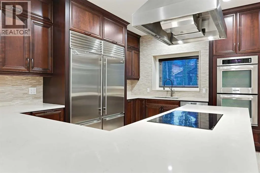 Luxury Living in McKenzie Lake â Renovated 2-Storey with Triple Garage & RV ParkingExperience the perfect blend of style, comfort, and location in this substantially renovated 2-storey home offering over 3,700 sq. ft. of beautifully developed living space. Nestled in one of South Calgaryâs most desirable family communitiesâsteps from schools, parks, pathways, and the Bow River escarpmentâthis home is designed for families, entertaining, and executive living.Set on a large, quiet corner lot with a sunny south-facing backyard, this property boasts a heated triple garage, RV/boat parking, and a low-maintenance yard. Pride of ownership is evident throughout.Inside, an extra-wide foyer welcomes you to the open-concept main level, finished with travertine tile, and soft contemporary tones. Expansive windows flood the space with natural light. The chef-inspired kitchen features Cherry Oak cabinetry, quartz countertops, a prep island with induction cooktop, dual Sub-Zero fridges, high-end KitchenAid appliances and pantry. The adjoining dining room is highlighted by a stone feature wall and modern firebox, while the living room impresses with rich hardwood floor, marble pillars, a gas fireplace with quartz surround, and a distressed wood feature wall.Upstairs, a vaulted bonus room with fireplace offers a cozy retreat. The serene primary suite includes a spa-like 4-piece ensuite with soaker tub, glass shower, quartz vanity, and water closet. Two additional spacious bedrooms, a full bath, and laundry complete this level.The fully developed basement extends the living space with a large rec room, flex area, 4th bedroom, 3-piece bath with steam shower and heated floor, a finished storage room, and a second kitchen (no stove connection).Outdoors, the south-facing low maintenance backyard is a private oasis with a pergola, two gazebos, a covered BBQ area, epoxy-coated patio, and two storage shedsâperfect for both relaxation and entertaining.Additional highlights include:⢠High-efficiency furnace (2018) & hot water tank (2018)â¢Heated triple garage with space for toys & toolsâ¢Extensive RV & boat parkingâ¢Steps to schools, shopping, pathways, and quick access to Stoney TrailThis is more than a homeâitâs a lifestyle. Welcome to your dream home in McKenzie Lake!NO POLY B. No Lake Access. (id:27476)