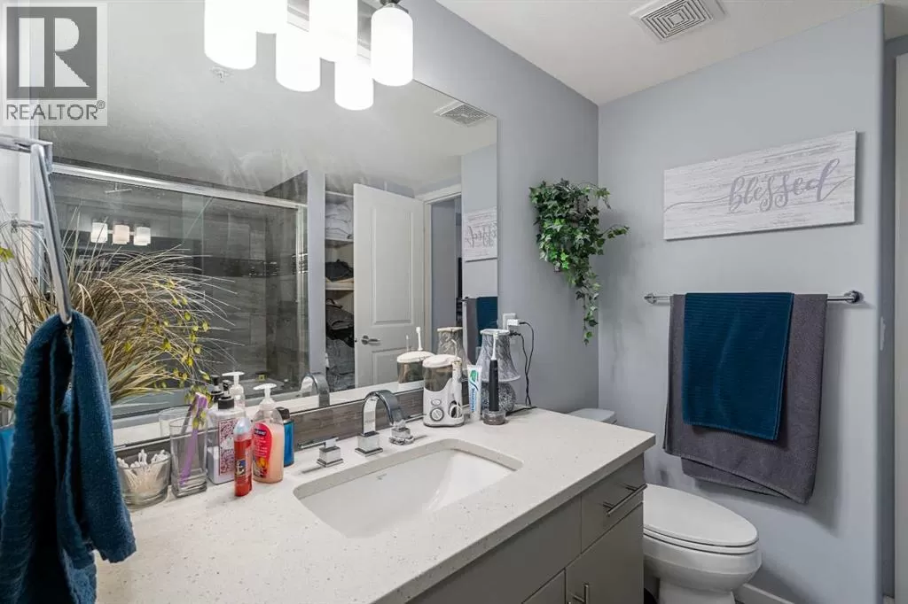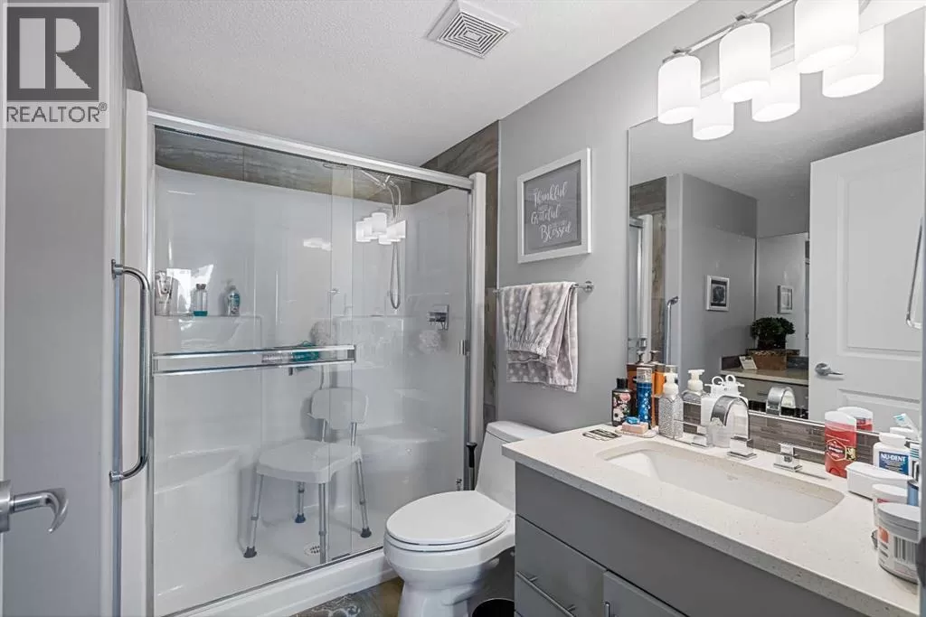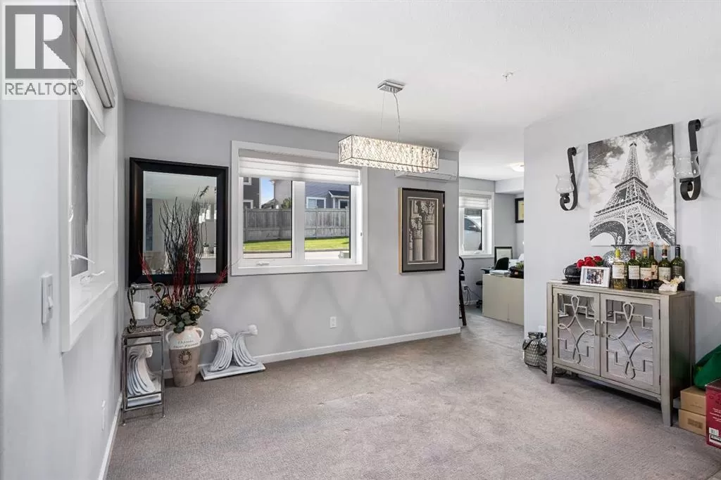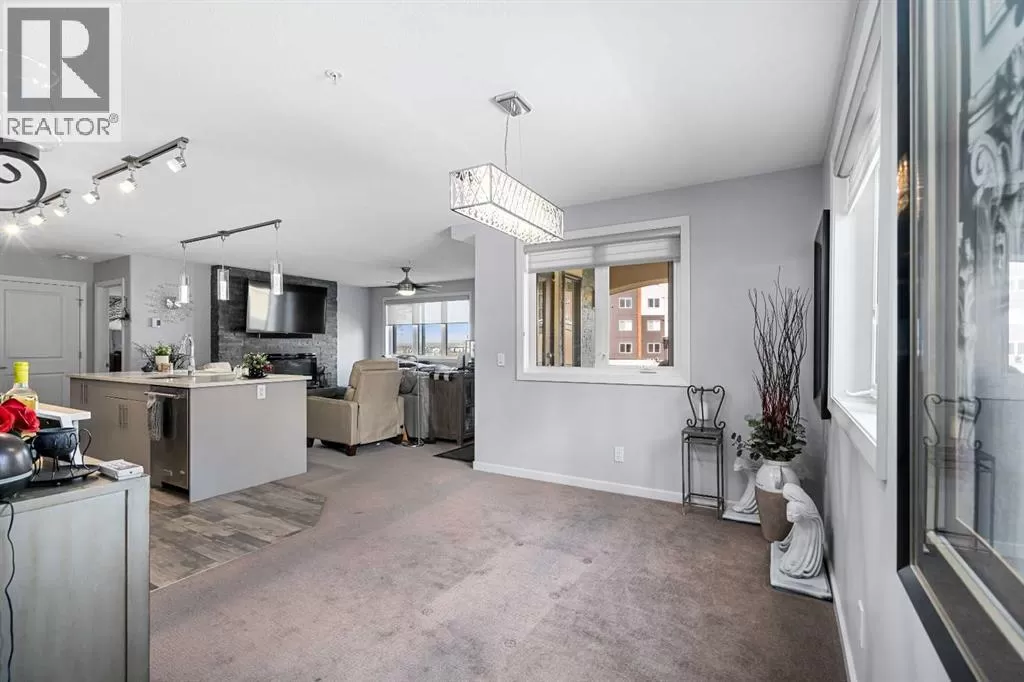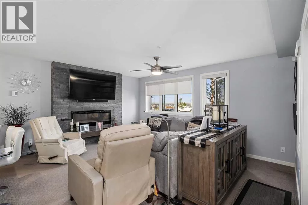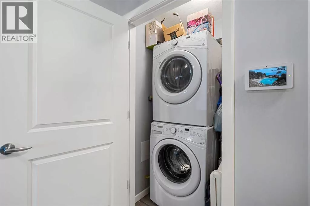 This beautifully maintained former show suite offers a rare 1,148 square feet of upgraded living space in a bright, corner layout with windows on two sides. Featuring 2 bedrooms, 2 full bathrooms, a den, a dining area, a large island with an eating bar, and in-suite laundry, this unit is both spacious and functional.Upgrades include tile flooring in the entryway, kitchen, and bathrooms, quartz countertops, top-of-the-line stainless steel appliances, a stylish backsplash, a custom window blind package, a full-wall fireplace treatment with a mantle, and central air conditioning for year-round comfort.A standout feature is the ability to enter your unit directly from the private balcony, with your second parking stall conveniently located just steps away from the patio door. The property also includes an oversized underground parking stall and a private, generously sized storage room measuring 4'8" wide, 8'5" deep, and 9'2" high.**Why Kincora?** Kincora is a peaceful, family-friendly community in Calgaryâs northwest, offering scenic walking trails, green spaces, and convenient access to major routes like Stoney Trail. With nearby shopping and dining options at Creekside Shopping Centre and Sage Hill Crossing, itâs a perfect blend of tranquility and convenience. (id:27476)