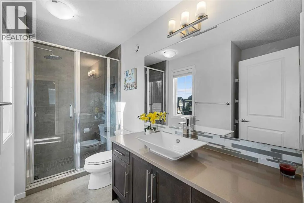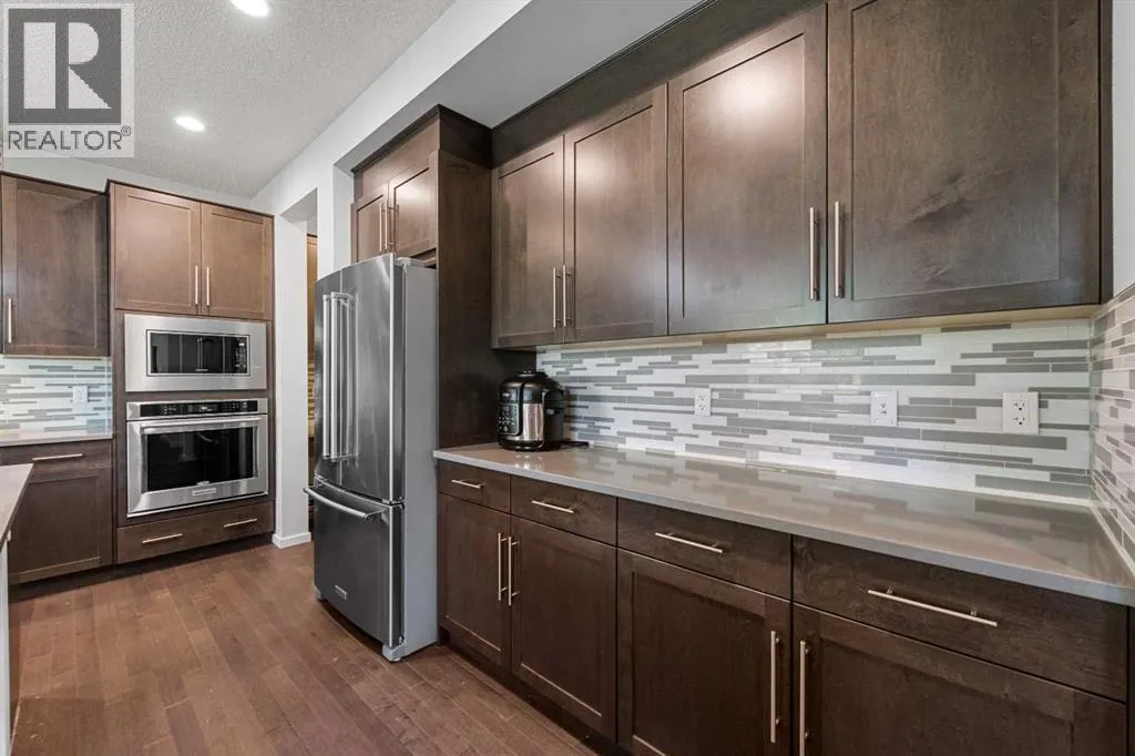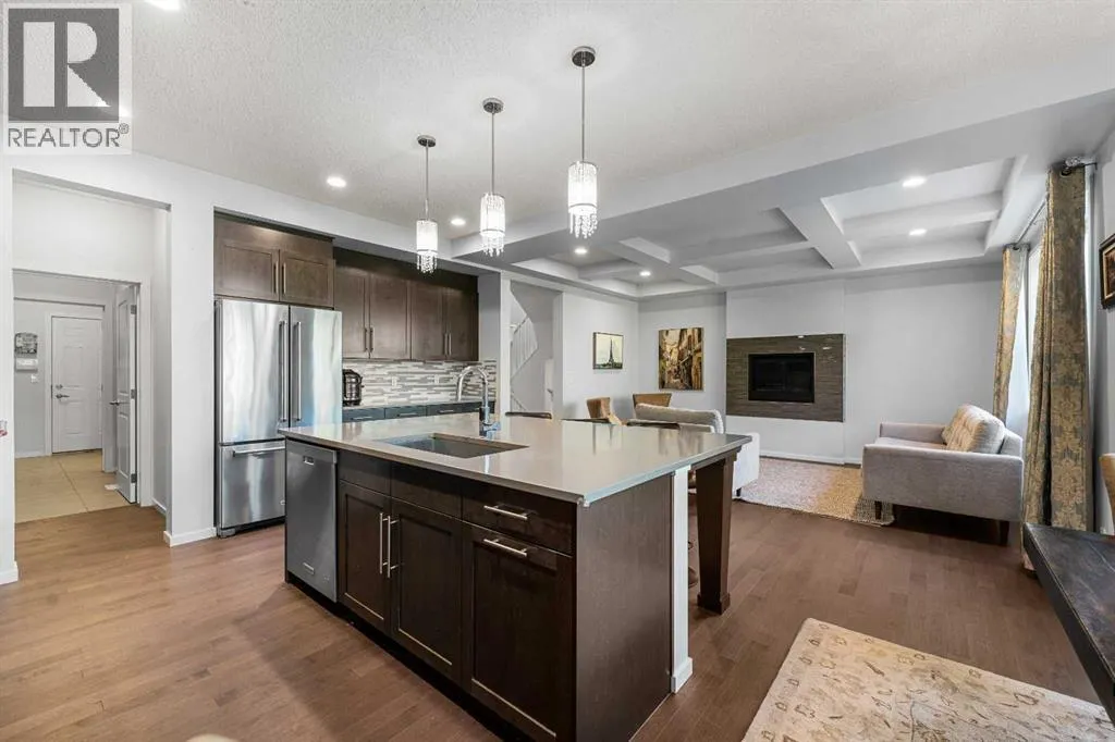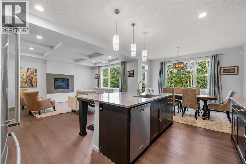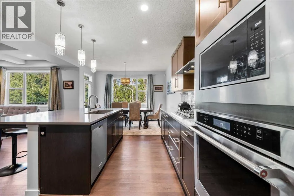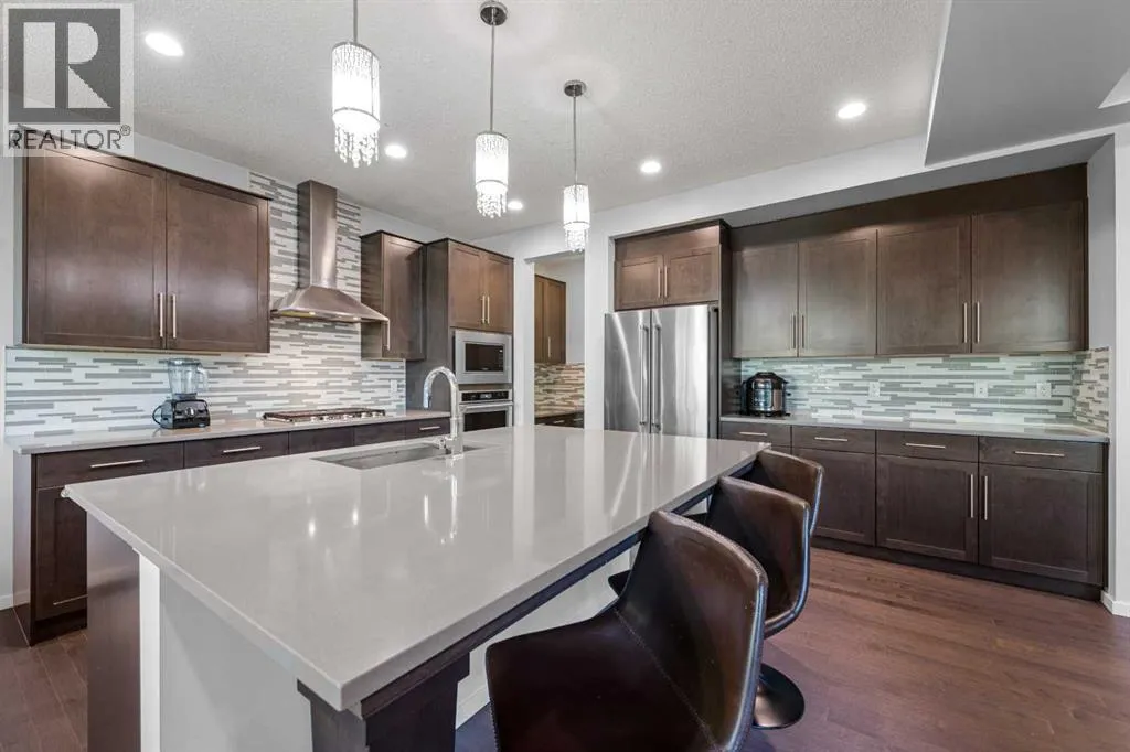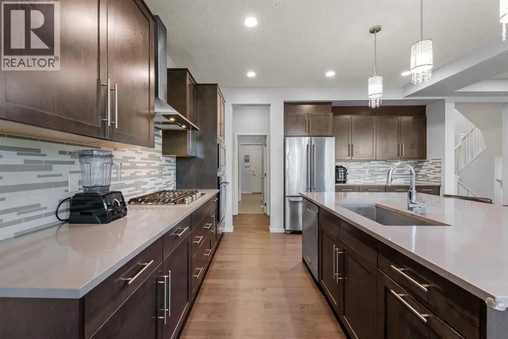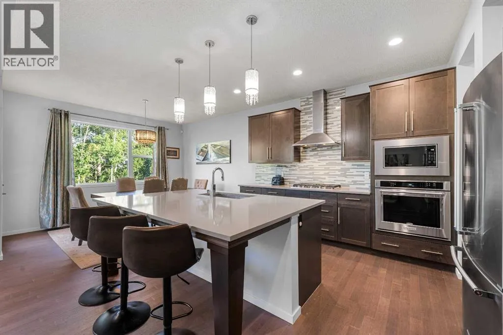 Step into this spacious 2-storey detached home in the desirable community of Walden, offering over 2,400 sq.ft. of living space with 3 bedrooms, 2.5 bathrooms, and an attached double garageâperfect for your growing family. WALK-OUT BASEMENT and BACKS ONTO GREEN SPACE. The open-concept main floor is filled with natural light and features beautiful hardwood flooring throughout. A welcoming foyer leads to the bright living room, ideal for cozy evenings by the gas fireplace. The modern kitchen is equipped with quartz countertops, SS appliances, stylish cabinetry, a large pantry, and a generous island with seating, while the dining area opens to a large deckâperfect for entertaining or summer BBQs. A main floor office/flex space, mudroom, and 2-pc bath add everyday functionality, plus central A/C ensures year-round comfort. Upstairs, a central bonus/family room offers extra lounging space, along with a large laundry room, two generous bedroomsâeach with walk-in closetsâand a shared 3-pc bath. The primary suite features its own walk-in closet and a luxurious 5-pc ensuite with dual quartz vanities, a soaking tub, and a separate shower. The walk-out unfinished basement backs directly onto green space, ready for your personal touch. Other features include a rough-in gas line in the garage for heating the garage, and a 3-zone furnace system, all floors controlled separately. Outside, the fully fenced backyard provides plenty of room for kids to play and pets to roam. Ideally located near schools, shopping, transit, parks, pathways, recreation centres, and multiple golf coursesâclose to the Township Shopping Centre, numerous ponds and green spaces, the Wolf Willow off-leash dog park, All Saints High School, and the South Health Campus, with quick access to Macleod Trail, Stoney Trail, and Deerfoot Trail. Call to book your private viewings today! (id:27476)
