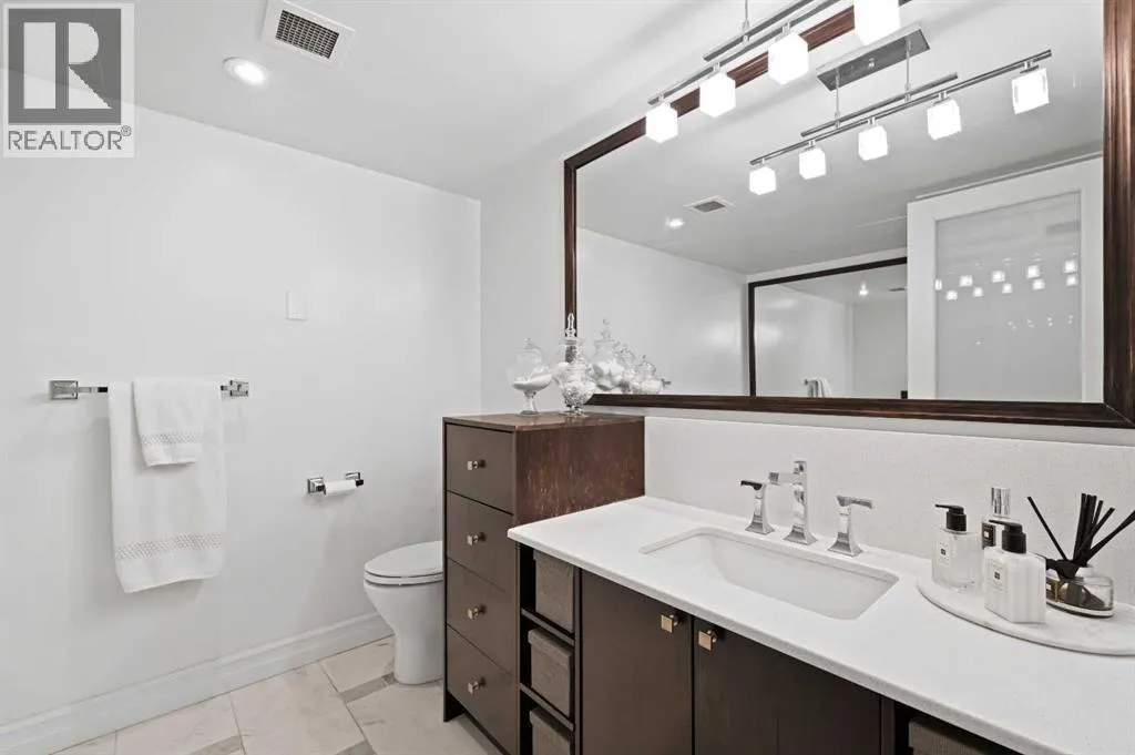 Discover your new home in this spacious, over 1,100-square-foot condo. Filled with natural light, this thoughtfully designed unit offers views from a large, south-facing balconyâthe perfect spot for your morning coffee or evening glass of wine.The building is well-managed with a substantial reserve fund, providing peace of mind for future homeowners.Key Features of the UnitParking & Security: The unit includes a secure, heated indoor parking stall (#59) with a convenient car wash bay and ample outdoor visitor parking.Modern Kitchen: A recently renovated kitchen boasts sleek stainless steel appliances, a stylish wine bar area, and a central island that's perfect for hosting.Open Concept Living: The living room and dining area flow seamlessly together, creating an inviting space that extends onto the expansive balcony.Primary Suite: The generously sized primary bedroom features a luxurious 4-piece ensuite with a deep soaker tub, a separate shower, a large vanity, and dual closets for all your storage needs.Second Bedroom: The second bedroom is spacious, offering plenty of closet space, making it ideal for guests, a roommate, or a home office.In-unit Laundry: A dedicated laundry room with additional storage and a 3-piece bathroom adds convenience and functionality.Building Amenities & LocationEnjoy a variety of building amenities, including a fitness room and a stunning rooftop patio with a solarium lounge and terracesâall offering incredible city views.Located just a short walk from vibrant 17th Avenue, you'll have easy access to some of the city's best restaurants, boutique shops, and trendy cafes. This is more than a home; itâs a lifestyle. Donât miss your chance to experience it. (id:27476)