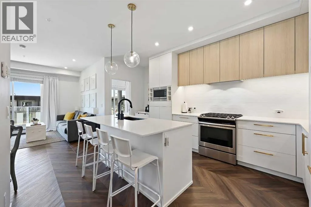 2 bedroom + DEN (can also be used as a 3rd bedroom)!!! One of only four units with this fantastic layout, making these units a rare and lucky find! Ideal for savvy investors or those seeking to live in a premium condo. Spacious top-floor 24-foot balcony with quiet courtyard views (does not face the street or construction sites)! Abundant natural sunlight, modern kitchen with sleek cabinetry, quartz countertops and a large kitchen island/eating bar. The open layout connects the living and dining areas, keeping the layout open and easy to use. The primary suite features an additional balcony access, a fully customized walk-through closet, and a phenomenal ensuite with an oversized glass-enclosed stand-up shower. The second bedroom is spacious and bright, featuring a walk-in closet, making it ideal for guests or roommates. The ADDITIONAL DEN with a full closet offers flexible use, ideal as an office/bedroom/gym/yoga studio/library/media room/additional family room â the choice is yours! Extras include heated storage (on the same floor as the unit), underground parking, and access to the building's many amenities, including a fully equipped gym, bike storage, repair room, and pet wash. Steps to cafés, restaurants, movie theaters, shopping, parks, The Children's Hospital, and the University of Calgary! This unit can come fully furnished and equipped (not included in the list price). Live in this outstanding suite or seize an incredible investment opportunity! Rent the entire unit or lease each bedroom separately! Please inquire for more information. (id:27476)