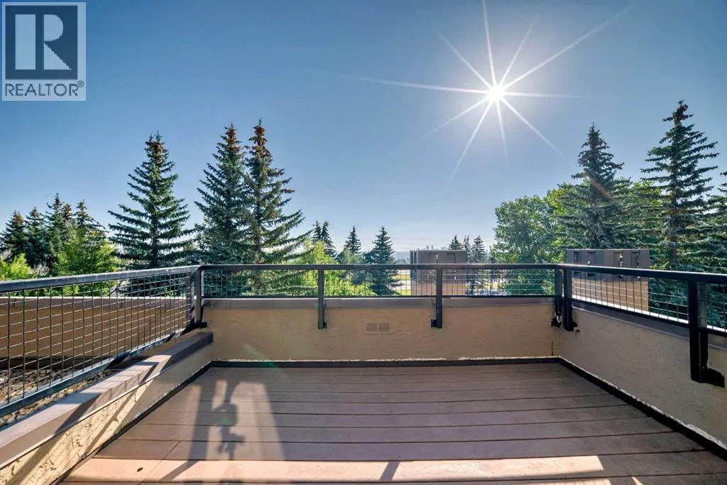 Downtown Views! Prime Location! Move-In Ready!Welcome to The News, where luxury meets location and lifestyle. Just minutes from downtown Calgary, this pet-friendly community is nestled on over 16 acres of mature, park-like grounds. Residents enjoy resort-style amenities including an indoor pool, hot tub, tennis and racquet courts, a fitness centre, walking paths, and a private clubhouse with a vibrant social atmosphere.This renovated, freshly painted top-floor corner unit is truly one of a kind. Over 1,000 sq ft of beautifully designed living space across two levels, it offers rare privacy and a unique layout. The open-concept living area features high ceilings, a dramatic two-storey living room, and an upper-level solarium that fills the home with natural light while showcasing stunning Downtown views. The space is enhanced by a cozy wood-burning fireplace and direct access to a private patio that opens onto quiet green space.The brand-new kitchen is a chefâs dream, complete with quartz countertops, light-toned cabinetry, all brand new stainless steel appliances and a hoodfan, upgraded flooring, and a pass-through window to the dining area. Upstairs, you'll find two generous bedrooms, including a primary suite with a private balcony and a two-piece ensuite. A spacious loft area overlooks the main floor - ideal as a home office or gym. New plush carpet has been installed on the stairs and upper level.Other conveniences include in-suite laundry, a dedicated storage locker, and a secure heated underground parking stall. With easy access to shopping, public transit, city pathways, and downtown, this home offers the perfect blend of comfort, style, and location.Come home to your urban retreat at The News â youâll be glad you did. (id:27476)
