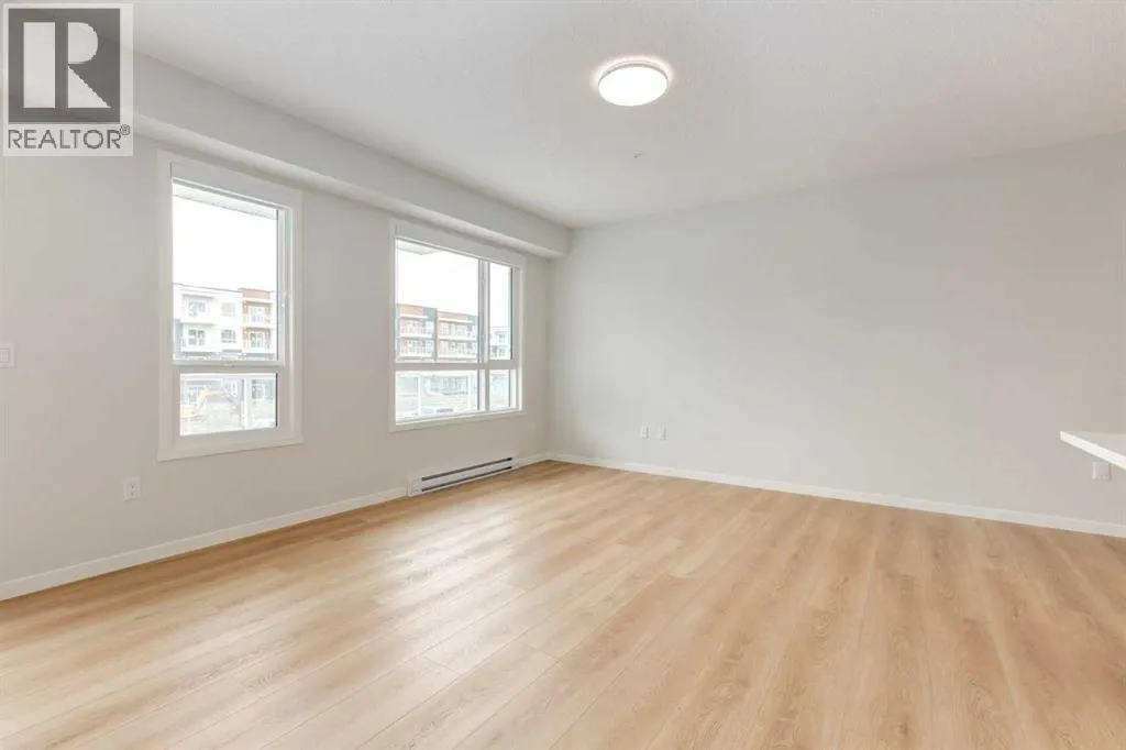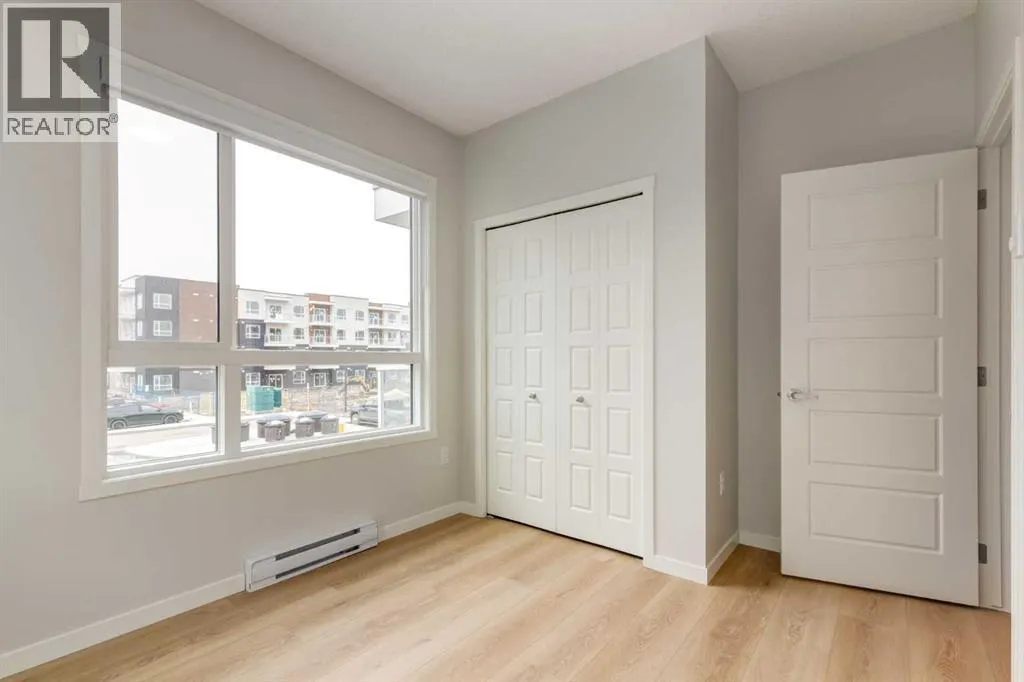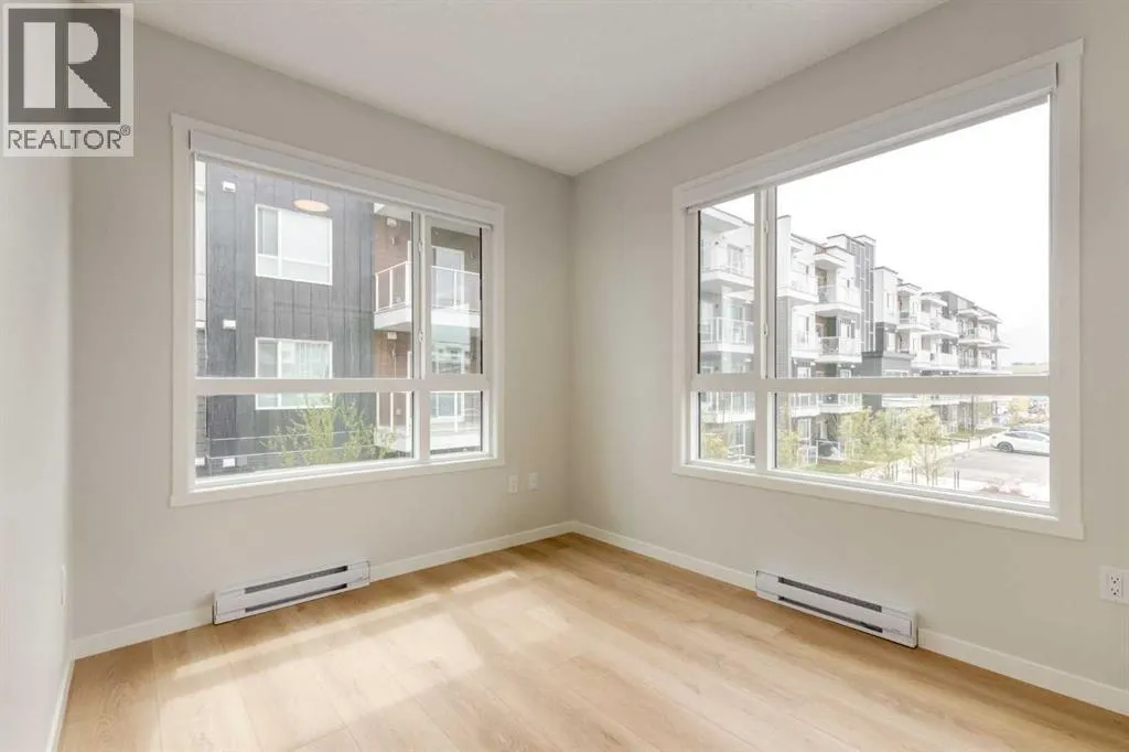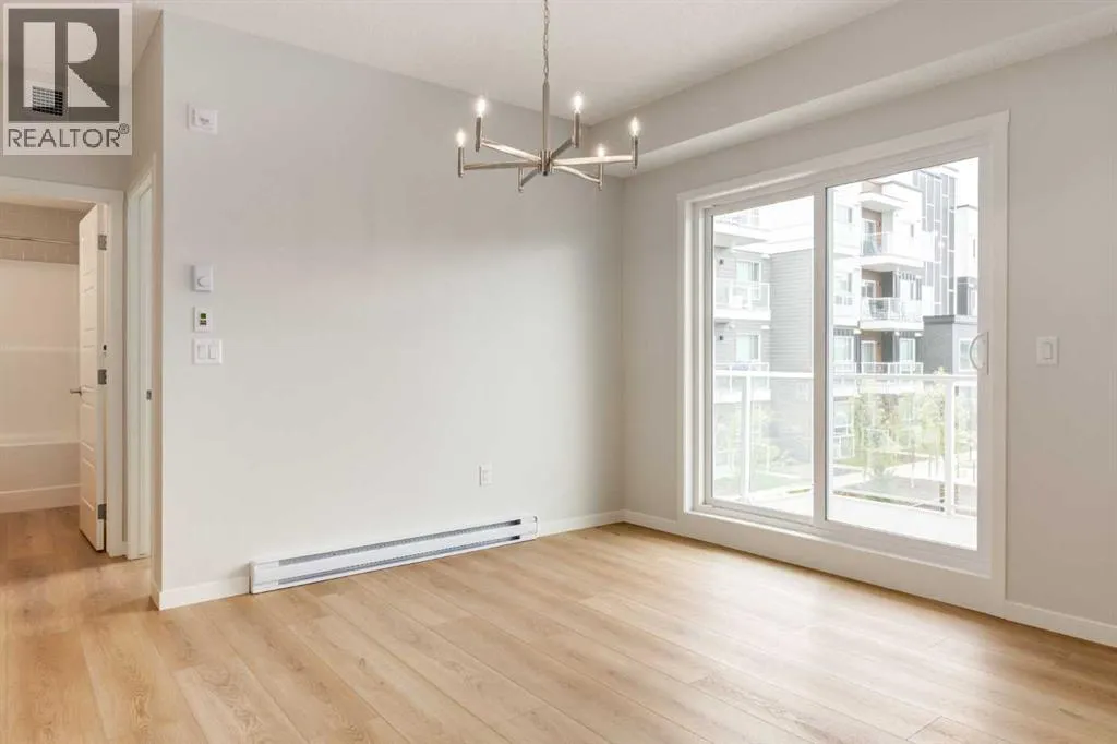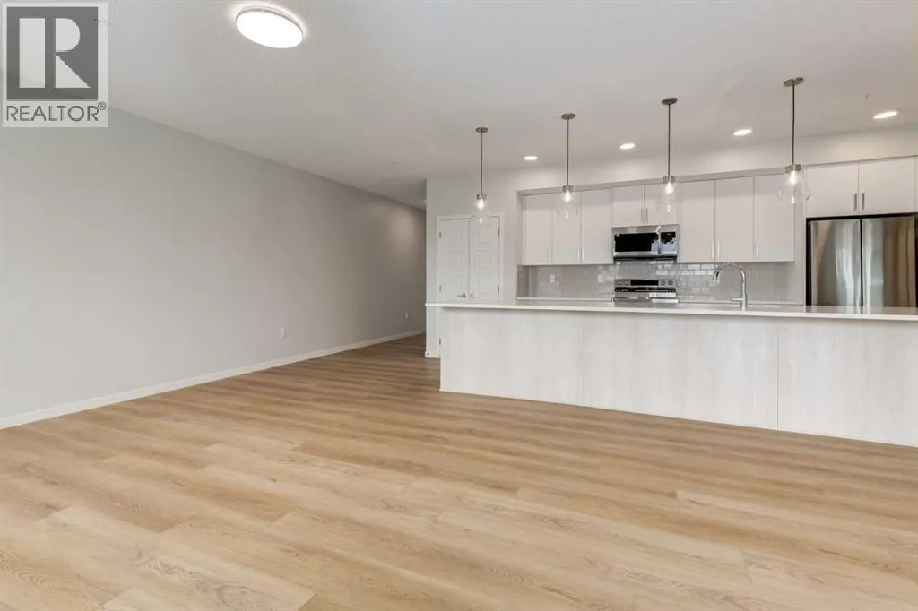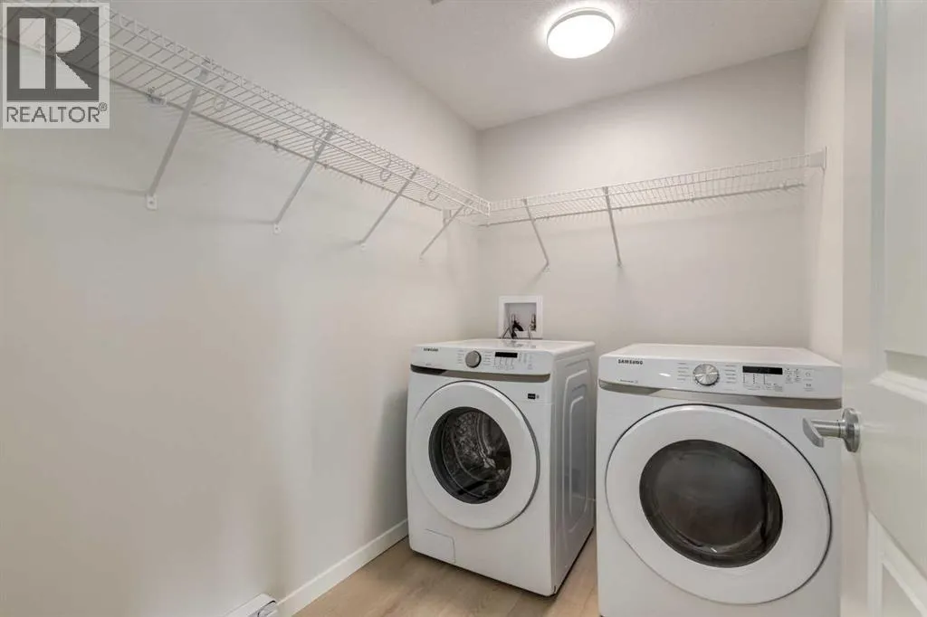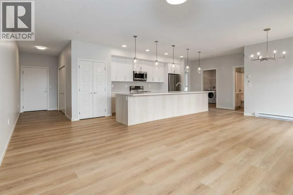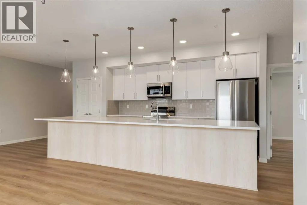 Introducing BELMONT PLAZA, a highly sought-after development in BELMONT, Calgary. BUILT BY CEDARGLEN LIVING, WINNER OF THE CustomerInsight BUILDER OF CHOICE AWARD, 5 YEARS RUNNING! BRAND NEW CORNER UNIT, "L4" floor plan with high-spec features. You will feel right at home in this well thought-out 1092.8 RMS sq.ft. (1165 sq.ft. builder size) 2 bed, 2 bath home with open plan, 9' ceilings, LVP flooring through-out (upgraded, no carpet), Low E triple glazed windows, electric baseboard heating, BBQ gas line on the patio, A/C Rough in, and Fresh Air System (ERV). The kitchen is spectacular with full height TWO TONE cabinets, extended island upgrade, quartz counters, undermount sink, S/S appliances and pantry. The extended island is stunning and transitions into the spacious living & dining area, perfect for entertaining. The spacious primary bedroom has a large bright window, sizeable walk-in closet and 4 pc ensuite with extra bank of drawers & full height tile upgrade. 1 additional bedroom located across the unit for noise reduction/privacy and 4pc bathroom (also with upgraded full height tile) located nearby. Laundry & storage closet is thoughtfully planned, definitely a must see (washer/dryer included). Highlights include: upgraded lighting package, sound reducing membrane to reduce sound transmission between floors, clear glass railing to balconies and 1 titled underground parking stall included. Steps away from shopping, restaurants and so much more. Belmont offers a vibrant neighbourhood thatâs extremely well-connected through Calgaryâs major arteries. Community living with inspired design. PET & RENTAL FRIENDLY COMPLEX. (id:27476)