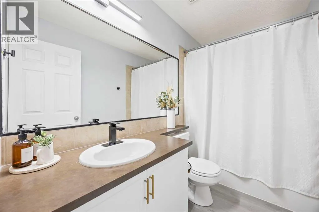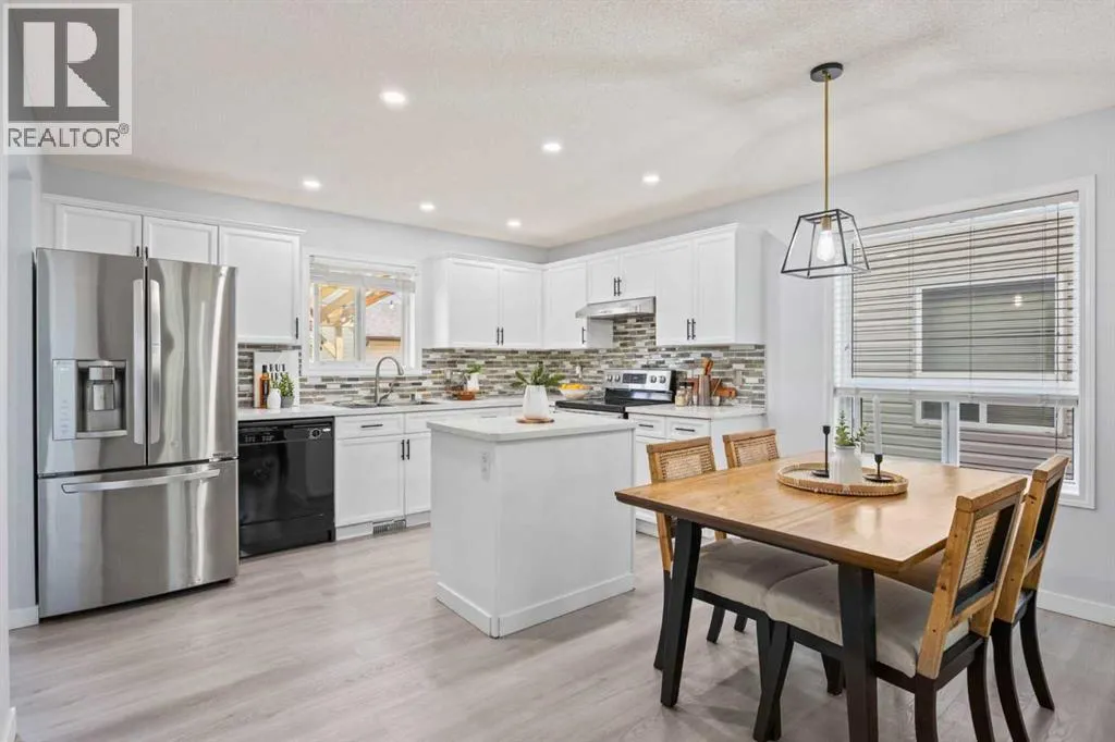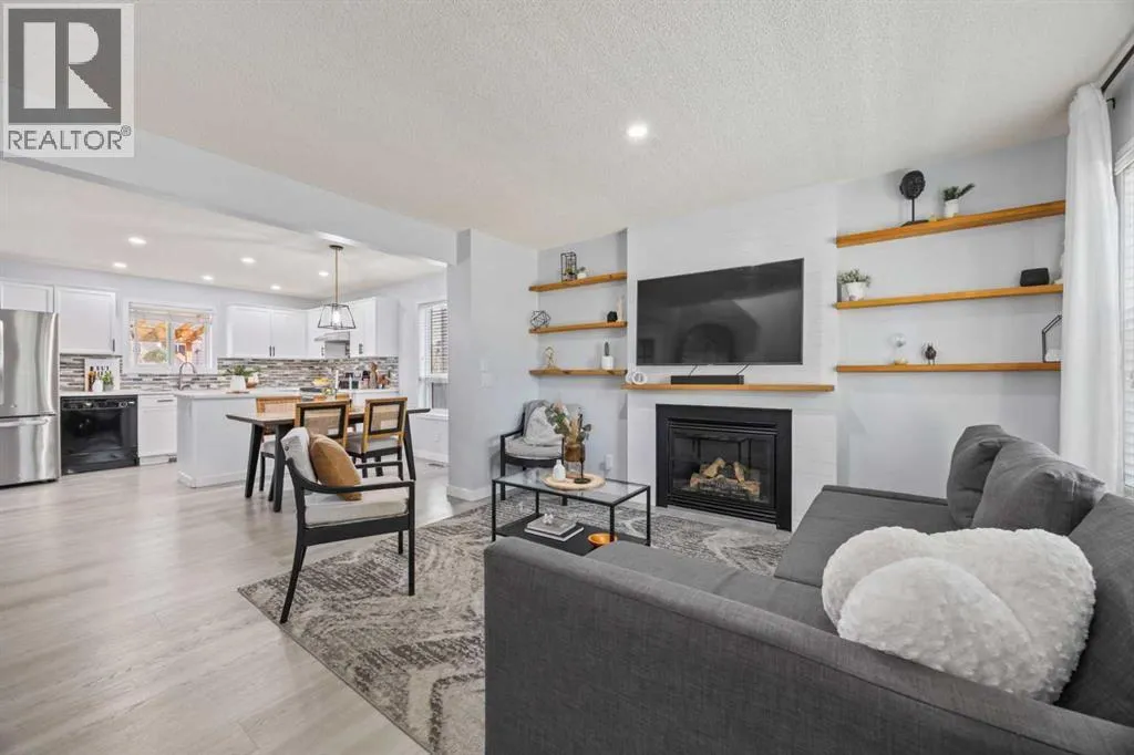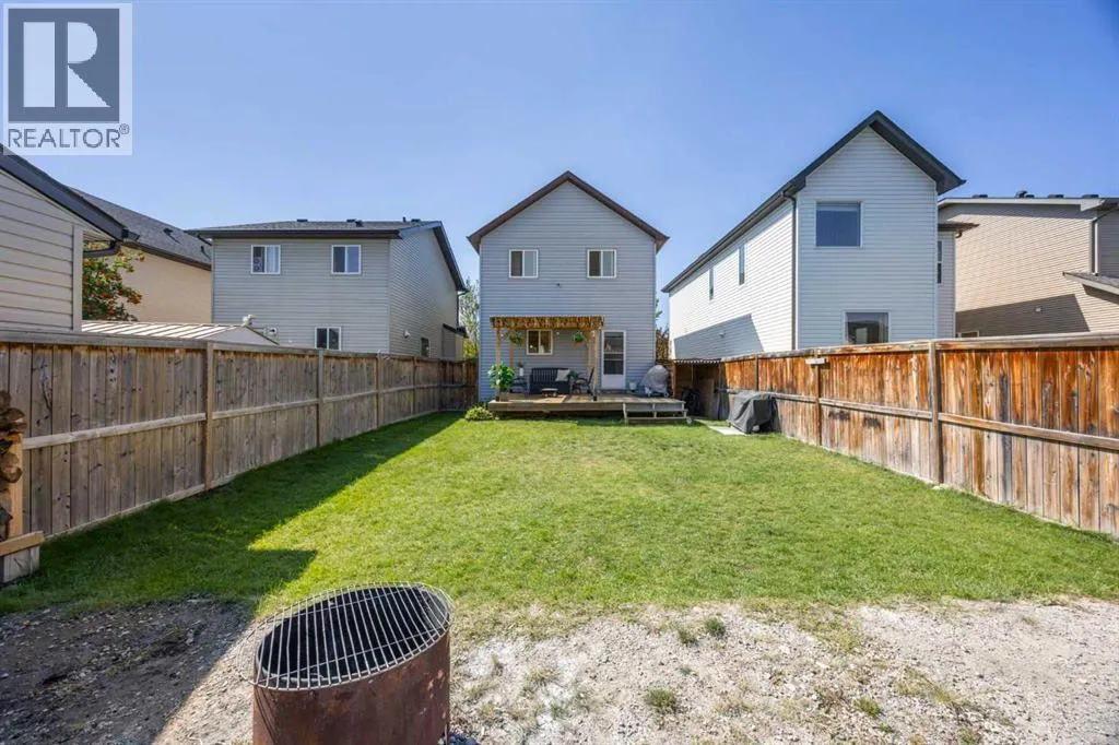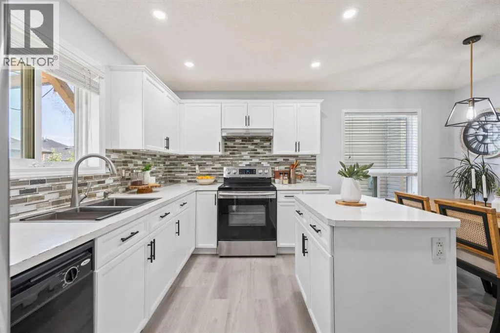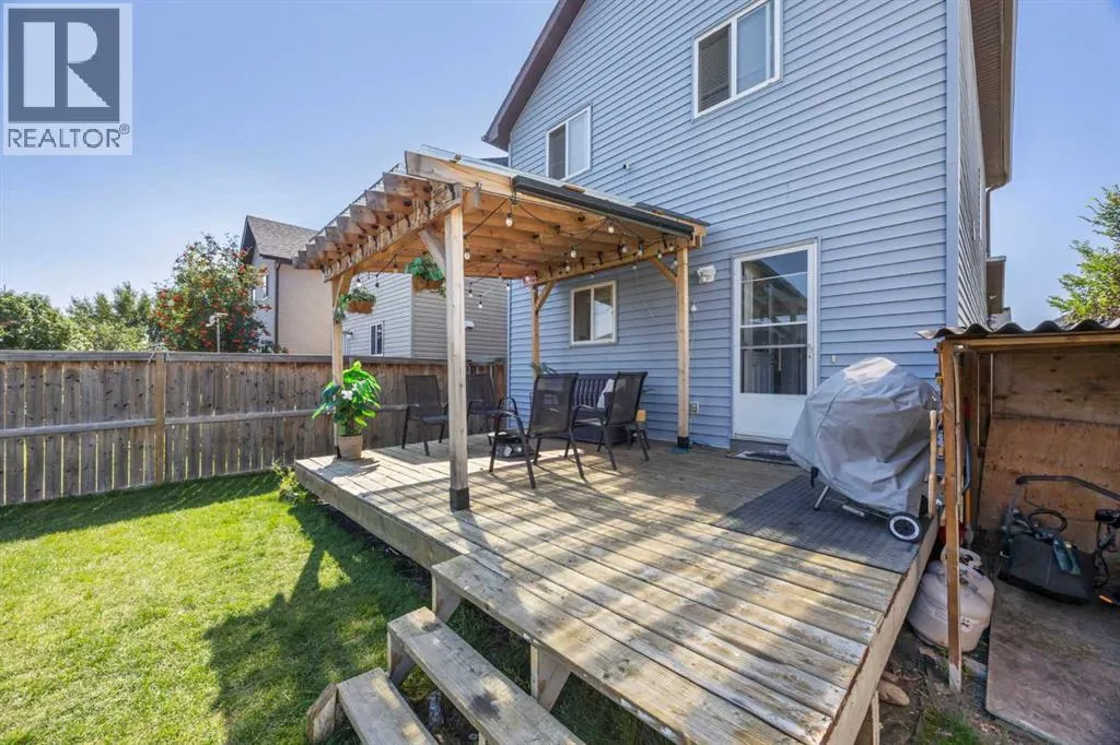 Welcome to this beautifully maintained detached home in the sought-after community of Silverado! Just under 1,200 sq.ft., this home offers incredible value with thoughtful upgrades, versatile living space, and a location that perfectly blends suburban tranquility with urban convenience. Step onto the welcoming front porch and into a bright open-concept main floor. You're immediately greeted by newer laminate flooring, and a clever entryway nook complete with hooks, built-in bench, and shoe storageâideal for families or active lifestyles. The cozy living room sits at the front of the home, featuring two west-facing windows that bathe the space in natural light, and a gas fireplace with shiplap detailing and custom wood shelvingâcreating a warm, inviting focal point. Flowing seamlessly from the living area is the dining room, which comfortably fits a table for six and offers a large window that enhances the open feel. The white L-shaped kitchen is both functional and stylish, featuring ample counter space, island with additional cabinetry, and a sink positioned under the window overlooking the backyardâperfect for multitasking while enjoying the view. A tucked-away 2-piece powder room and access to the backyard complete the main floor. Outside, the spacious backyard is ready for your personal touchâwhether itâs a future double detached garage, a play space, or garden retreat. Enjoy a BBQ-ready deck with gas line, a pergola for shade and ambiance, and a handy storage shed. Bonus: underground sprinklers installed in both the front and back yard make lawn care a breeze. Upstairs, you'll find three comfortable bedrooms, including a generous primary suite with large windows and a walk-in closet. A 4-piece bathroom with stylish black hardware and built-in shelving completes the upper level. The partially finished basement offers even more living space with a huge recreation roomâideal for a media room, gym, games area, or office. Down here you'll also find a full bathroom f eaturing a floating vanity, elegant tile shower, with glass enclosure, plus a dedicated laundry area and excellent storage spaces. This home comes with several thoughtful updates including a new roof, siding, and fascia (2022), providing peace of mind on major exterior components. Additional features include newer flooring, and a smart layout thatâs ideal for both growing families and first-time buyers. Situated in Silverado, one of Calgaryâs most vibrant and nature-rich communities, residents enjoy over 8 km of scenic trails, a 32-hectare environmental reserve, proximity to Spruce Meadows, and access to top schools including Ron Southern School and Holy Child School. Commuting is easy with quick connections to Stoney Trail, Macleod Trail, and the SomersetâBridlewood LRT Station. Nearby amenities include Sobeys, Shoppers Drug Mart, Anytime Fitness, local restaurants, and the full shopping experience of Shawnessy Towne Centre just minutes away. Donât miss this move-in-ready gem! (id:27476)