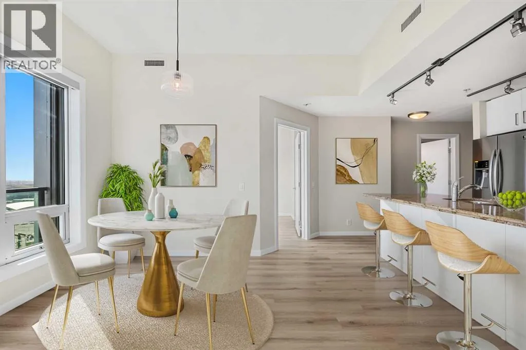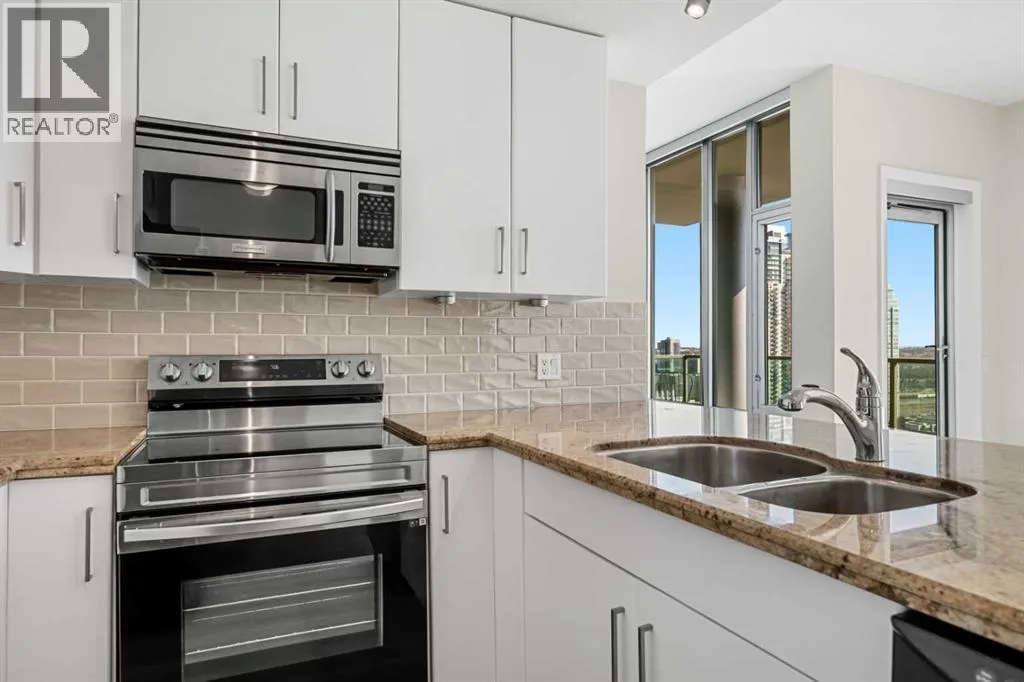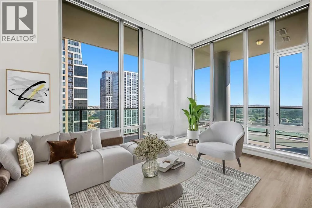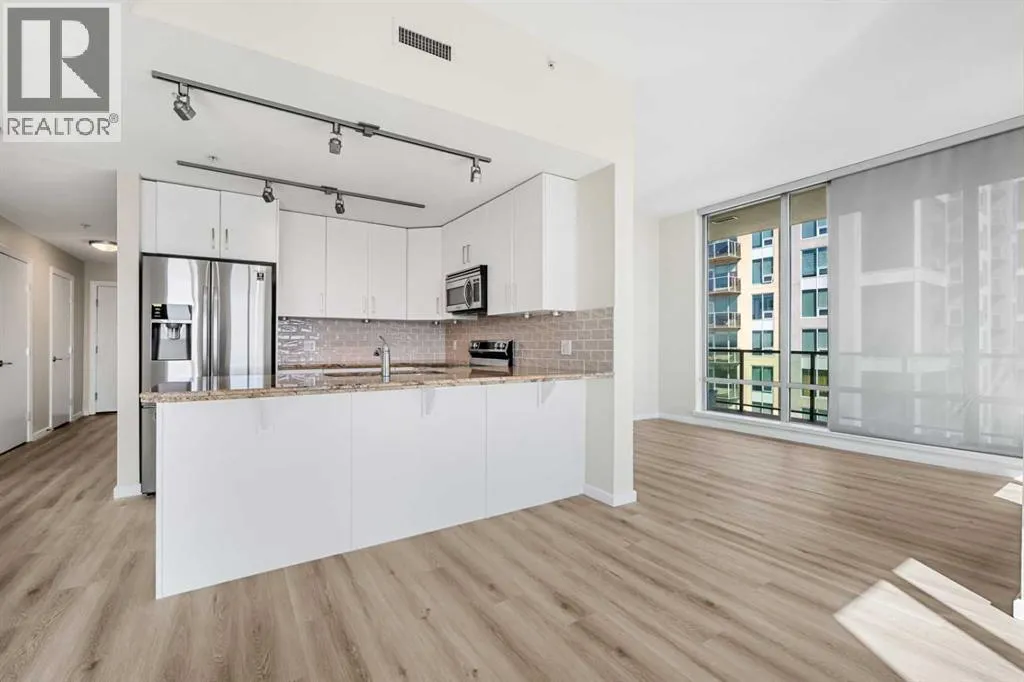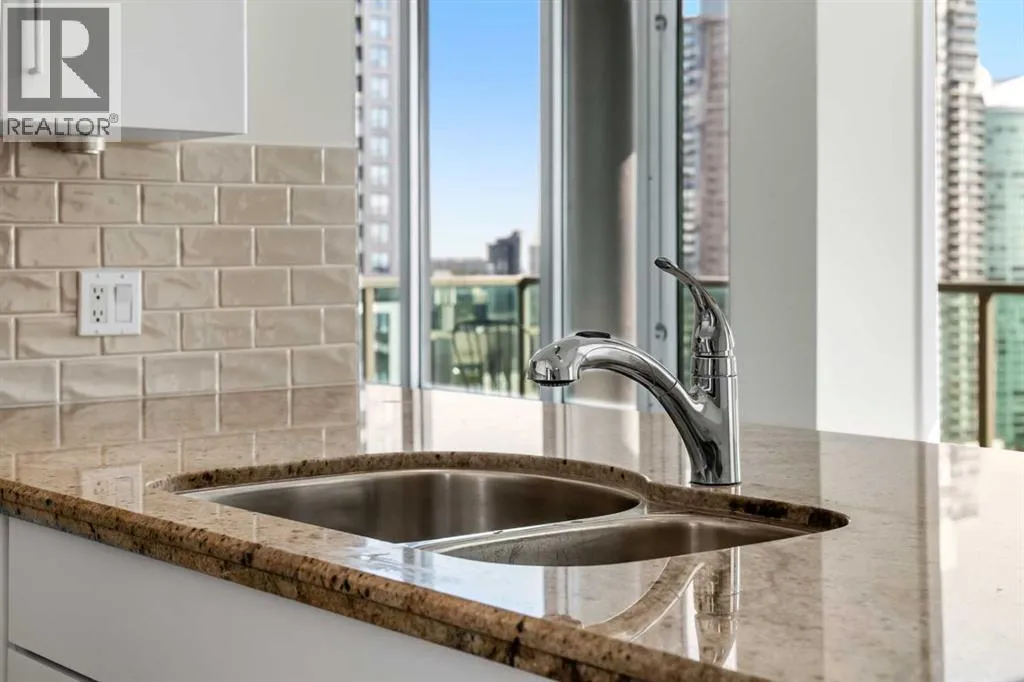 Your Sky-High Retreat in the Heart of Calgary's Entertainment District! Imagine waking up to breathtaking city views from the 21st floor and unwinding as the downtown lights twinkle below. Welcome to SASSOâan exceptional opportunity to experience the vibrant energy of Victoria Park. This concrete building, situated in the heart of the Beltline, is conveniently close to numerous amenities and just a short walk from downtown.This unit features a fantastic floor plan with floor-to-ceiling windows that fill the space with natural light, making it one of the most desirable locations in the building. This stylish two-bedroom condo, located in an 18+ adult complex, offers the ultimate urban lifestyle. Step inside this renovated unit and enjoy the spaciousness created by nine-foot ceilings, luxury vinyl plank flooring throughout, and an open-concept layout.The modern kitchen, equipped with granite countertops and sleek white cabinets, is perfect for preparing dinner before heading out for the night. Enjoy warm evenings on your private covered balcony, complete with a gas BBQ. For cozy nights in, relax on your couch, perfectly positioned to take in the stunning view. The main floor features beautiful new luxury vinyl plank flooring for easy maintenance.The open layout provides ample space for entertaining, with the kitchen boasting granite countertops, stainless steel appliances, an eating bar, a double sink, and plenty of cabinet space. Both bedrooms are spacious and include walkthrough closets and their own full bathrooms, ensuring privacy as they are separated across the condo.World-class amenities await you, including a concierge, fitness center, theater, hot tub, and more. With the city at your doorstep, you are just steps away from the LRT, Stampede Grounds, Sunterra Market, and a variety of dining and shopping options on 17th Avenue. This isn't just a condo; it's your gateway to a sophisticated and convenient urban lifestyle. Be sure to view the full 3D virtua l tour! (id:27476)