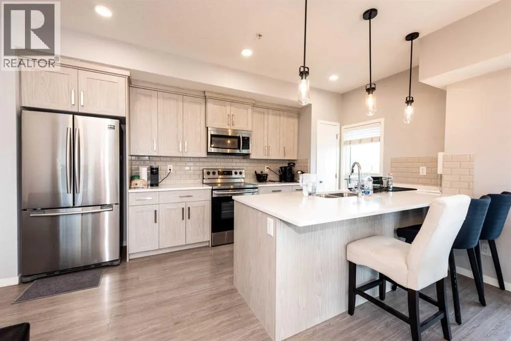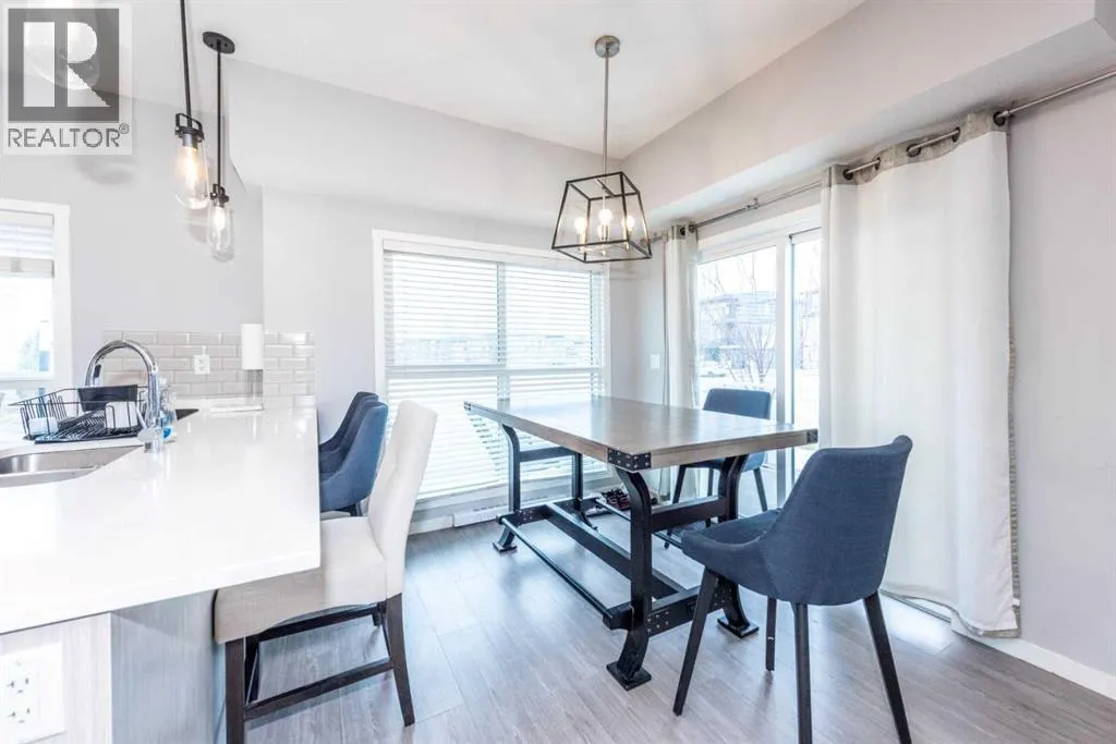 Welcome to this beautifully appointed main-floor unit in the heart of Seton! This 2-bedroom, 2-bathroom condo offers an open-concept layout with over 965 sq. ft. of functional living space. The spacious wraparound balcony offers fantastic southeast viewsâperfect for morning sun and evening relaxation. The upgraded kitchen features premium two-tone cabinetry, quartz countertops, a stylish tile backsplash, stainless steel appliances, and an oversized undermount sink. The dining area opens directly onto the balcony through large patio doors, and the living room offers plenty of space for entertaining or relaxing. The primary bedroom includes a generous walk-in closet and a modern ensuite with double sinks and a large glass shower. The second bedroom is ideally positioned on the opposite side of the unit for privacy and is adjacent to the second full bathroom. Additional highlights include in-suite laundry, and an underground parking, Located just steps from South Health Campus, YMCA, Brookfield Residential Community Centre, restaurants, and retail. Quick access to transit, parks, and major roadways. Donât miss this opportunity to own a main-floor unit in one of Calgaryâs fastest-growing communities! (id:27476)